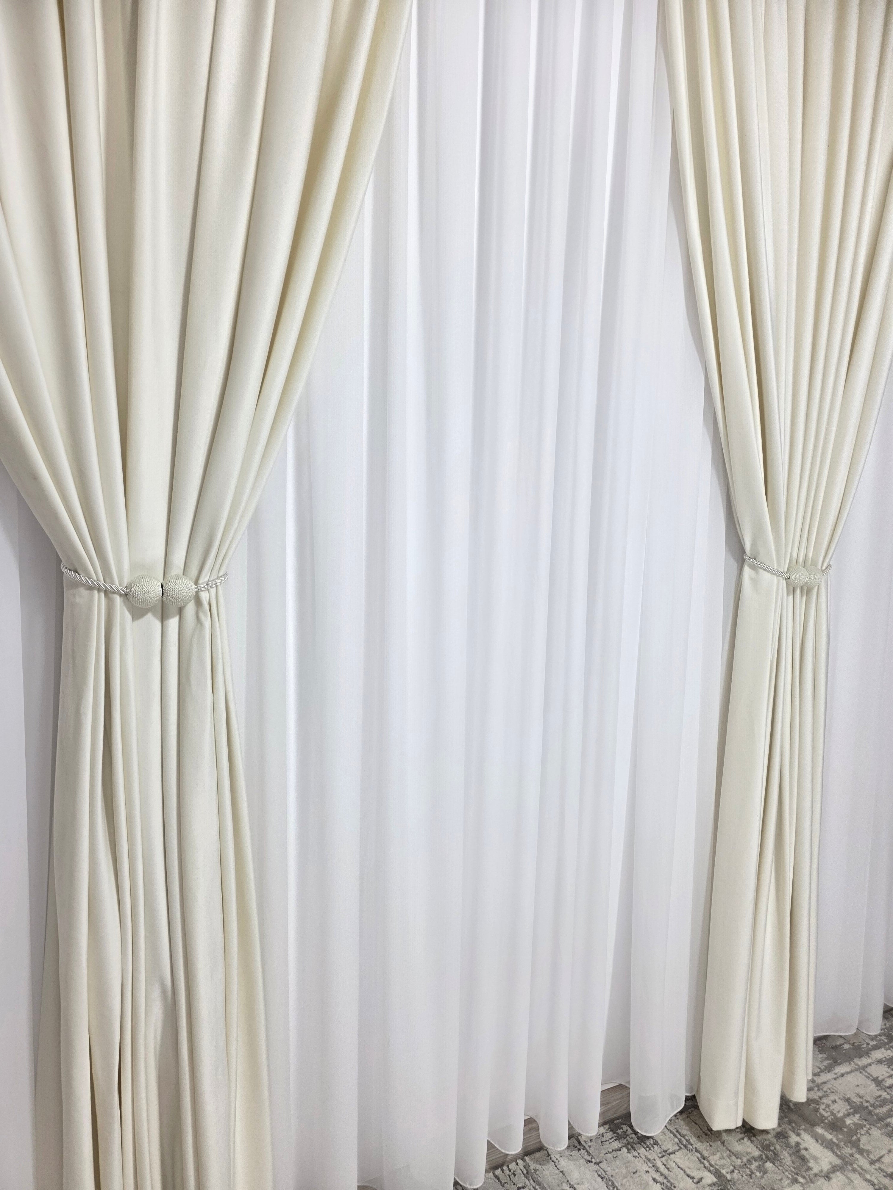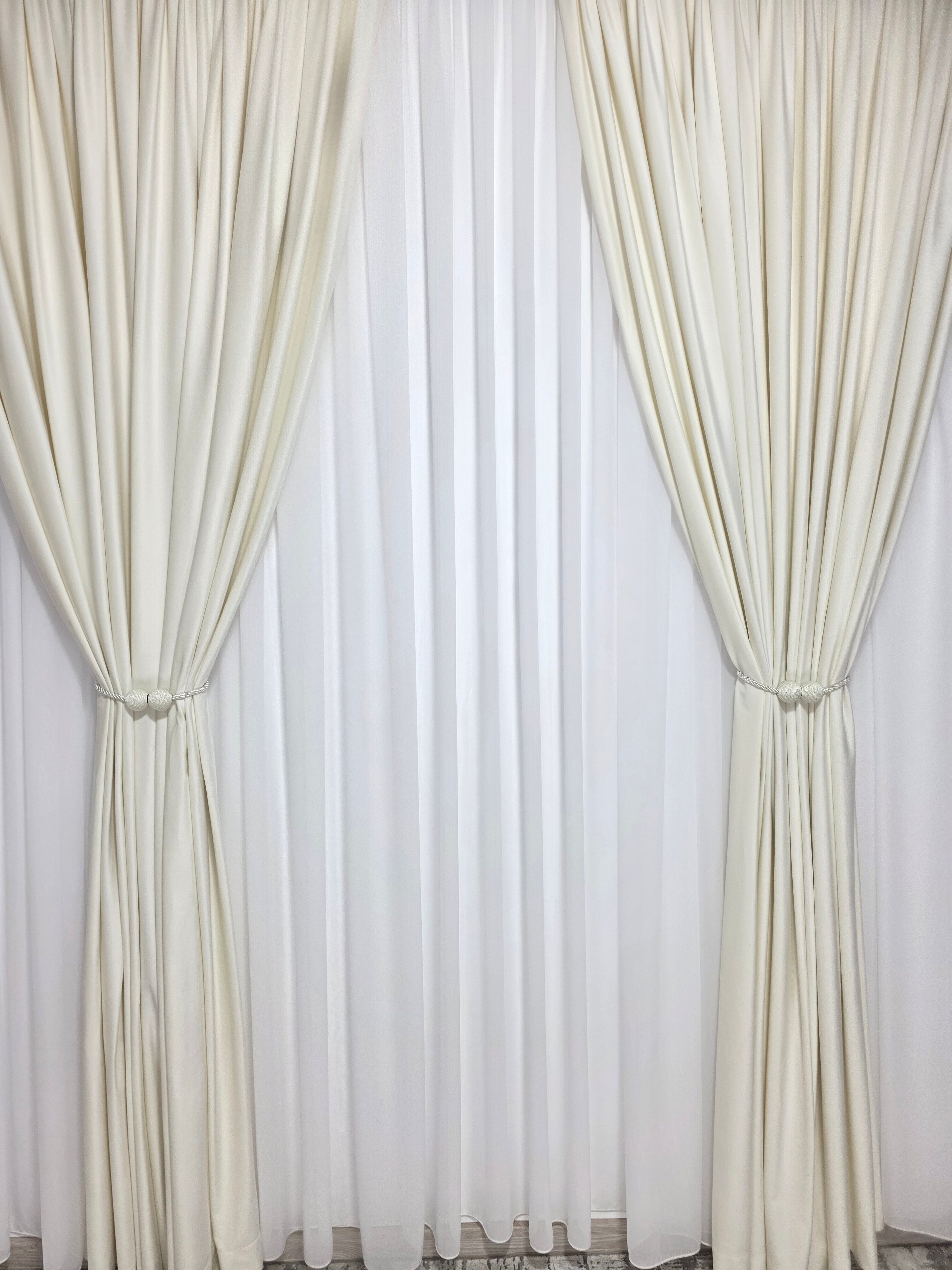 Draperie din catifea ivoire textură moale și densă, cu aspect premium