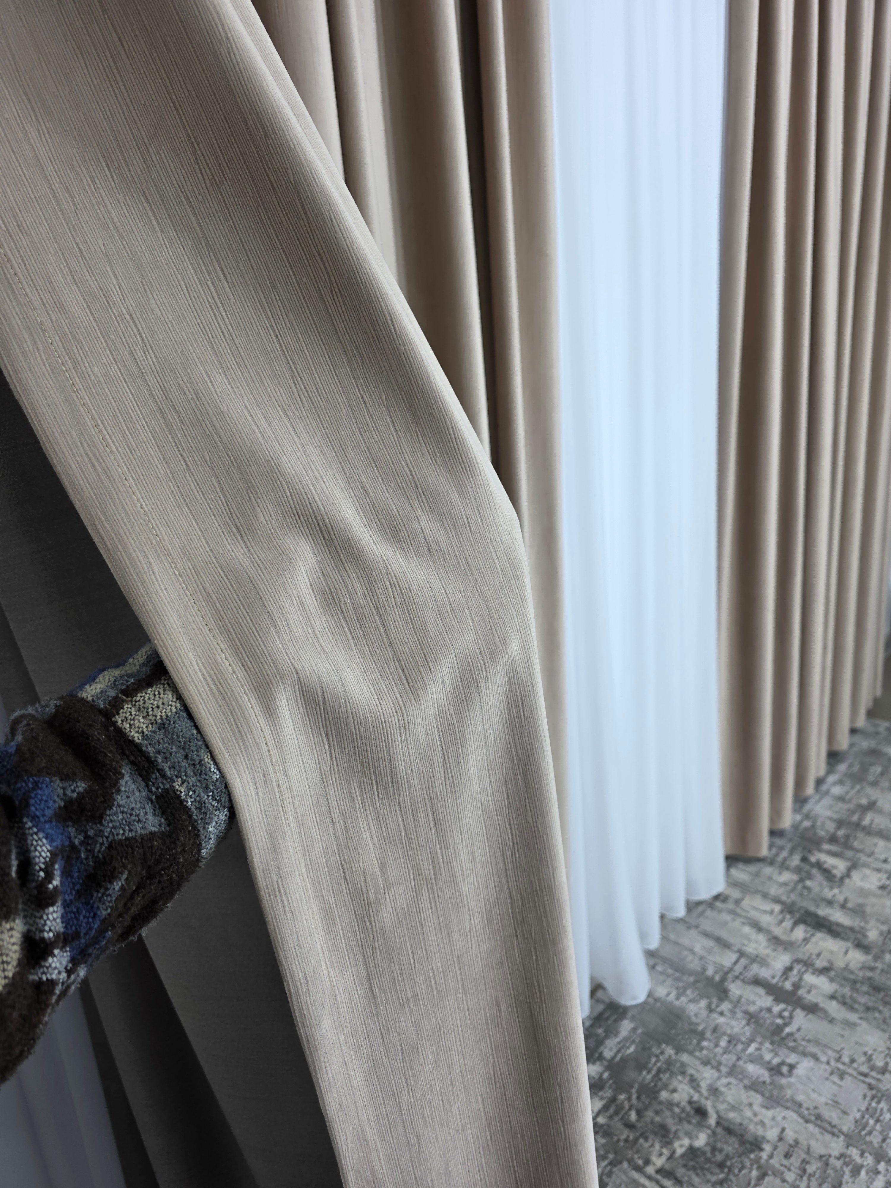 Set Perdea Voal Premium & Draperie Catifea Crem Tip Velura – Eleganță Discretă și Texturi Fine pentru un Ambient Liniștitor