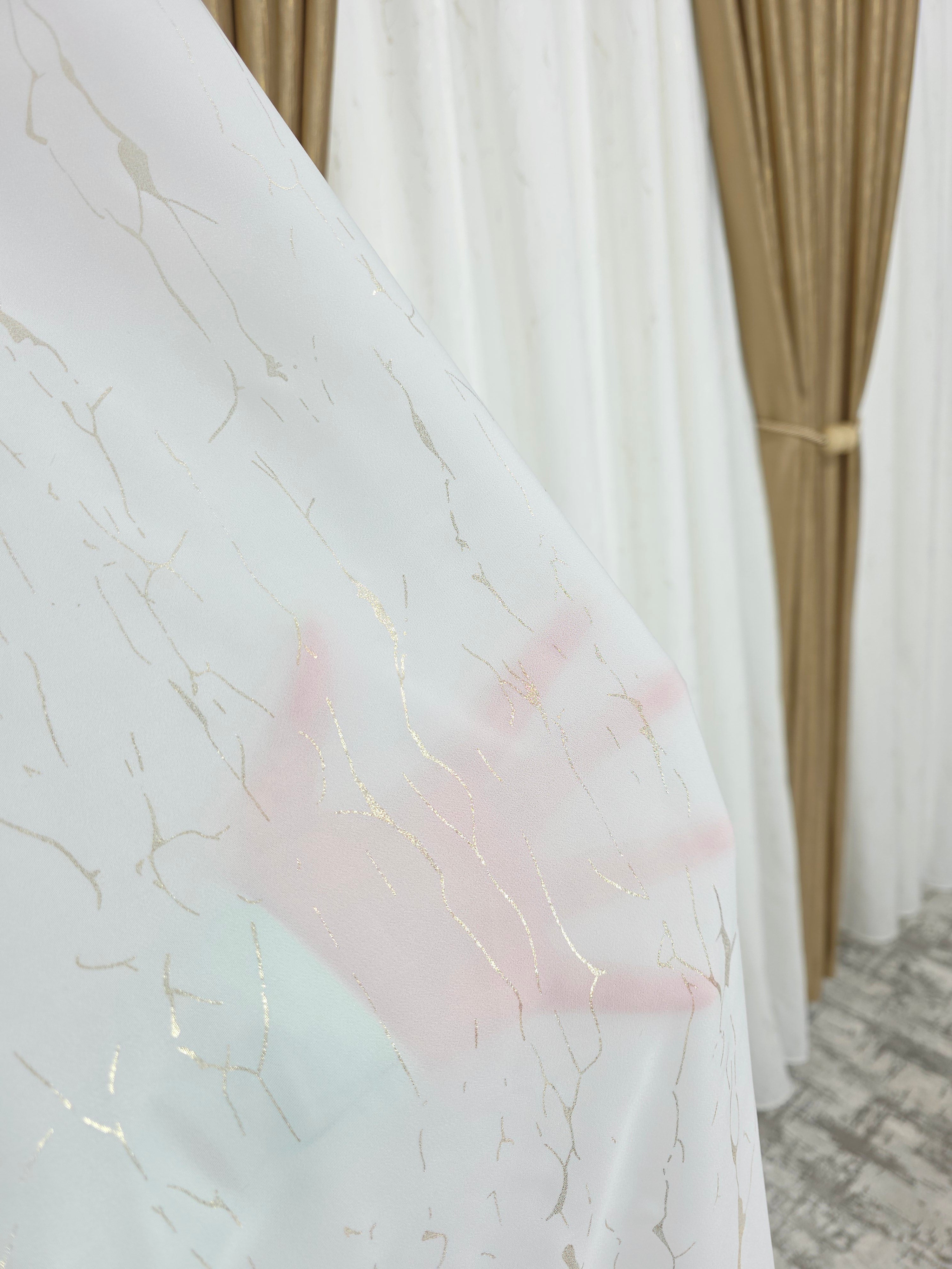 Perdea din mătase albă premium, moale și plină, cu inserții aurii (V1)