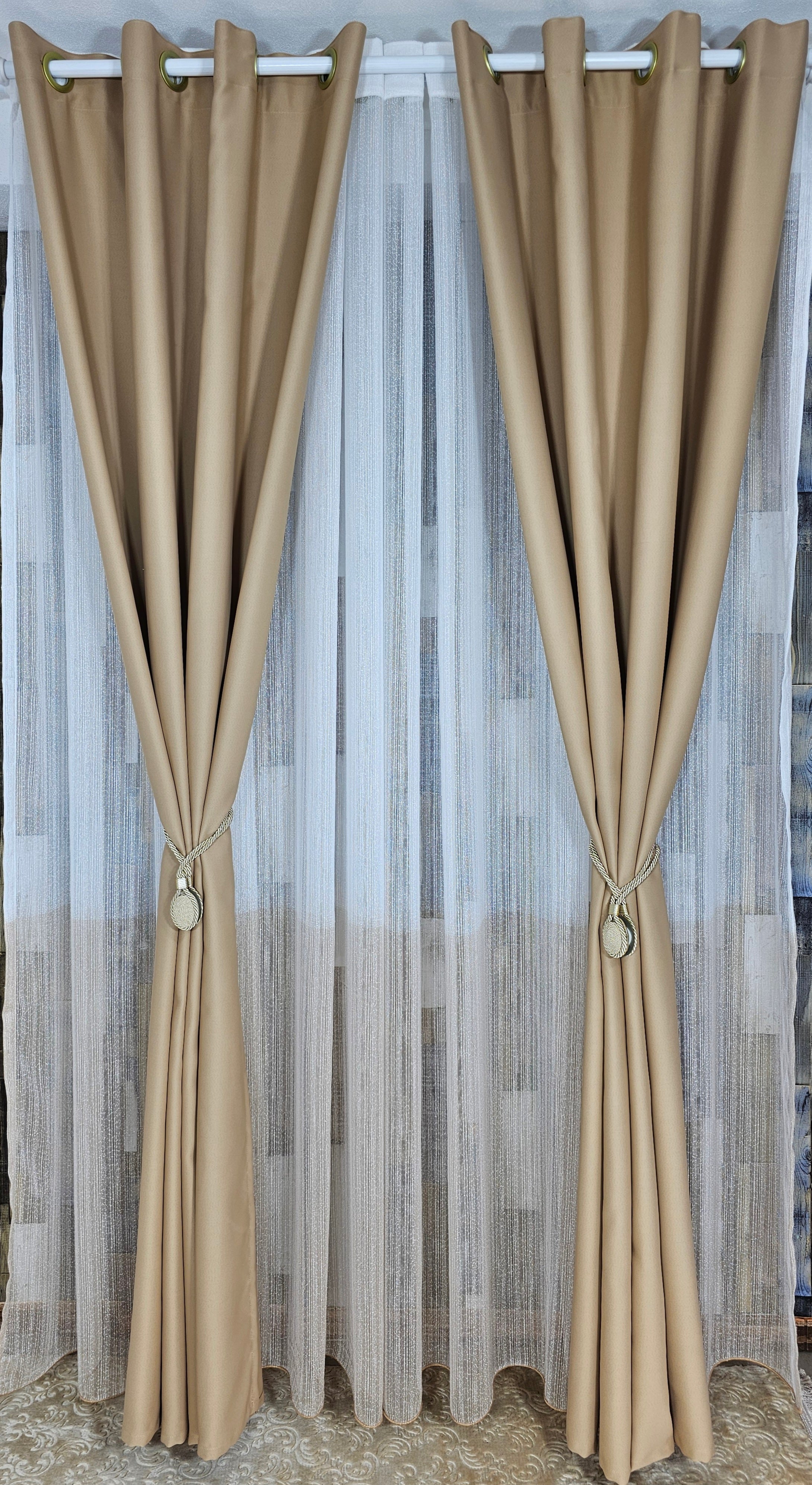 Prin combinația de alb-crem delicat și capucino sofisticat, acest set de perdea și draperie creează o atmosferă luminoasă, caldă și elegantă, fiind alegerea perfectă pentru un ambient relaxant și modern.