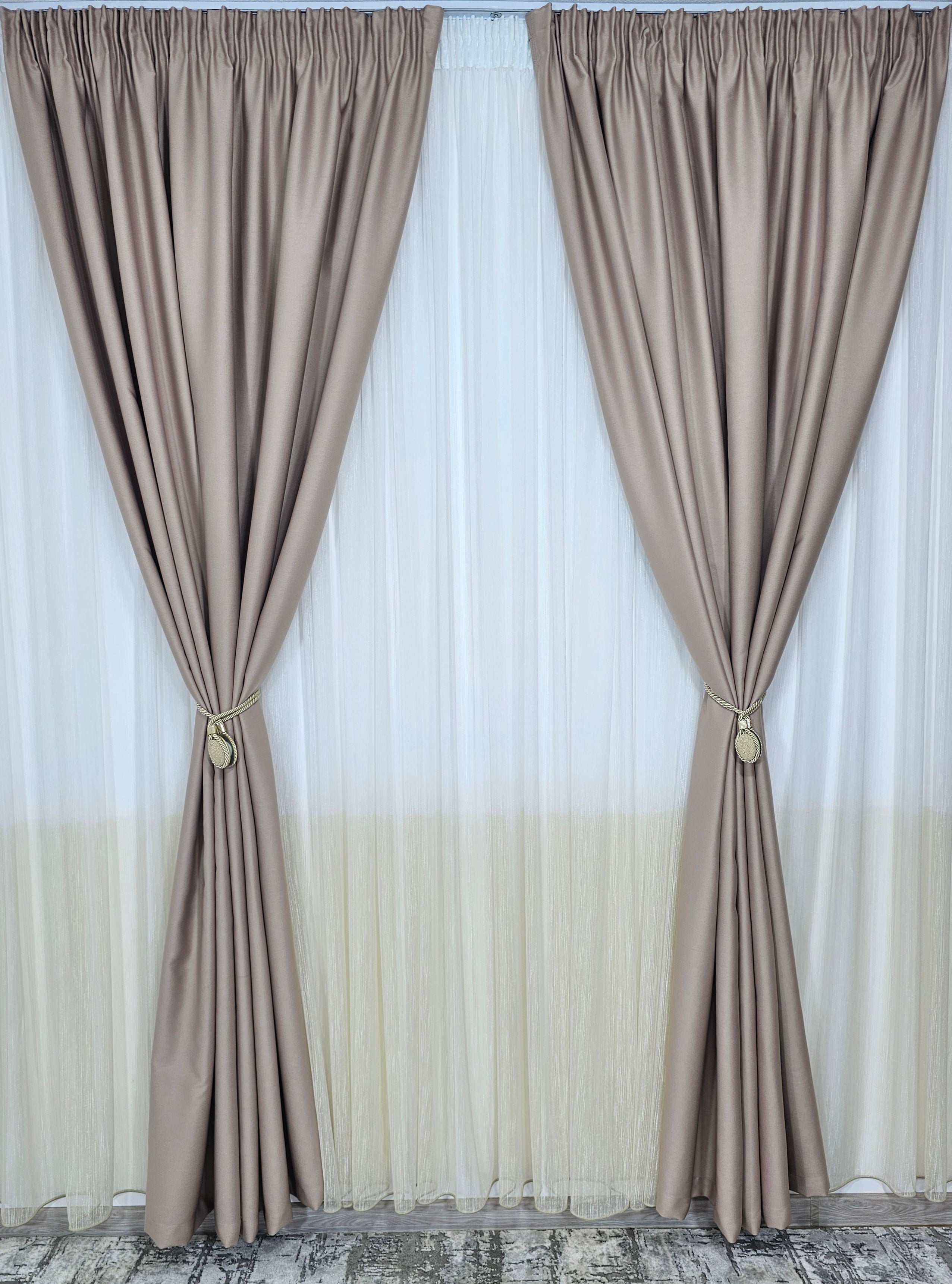 Set Perdea Bicolor și Draperie Blackout Bej Roze – Eleganță și Funcționalitate de Hotel