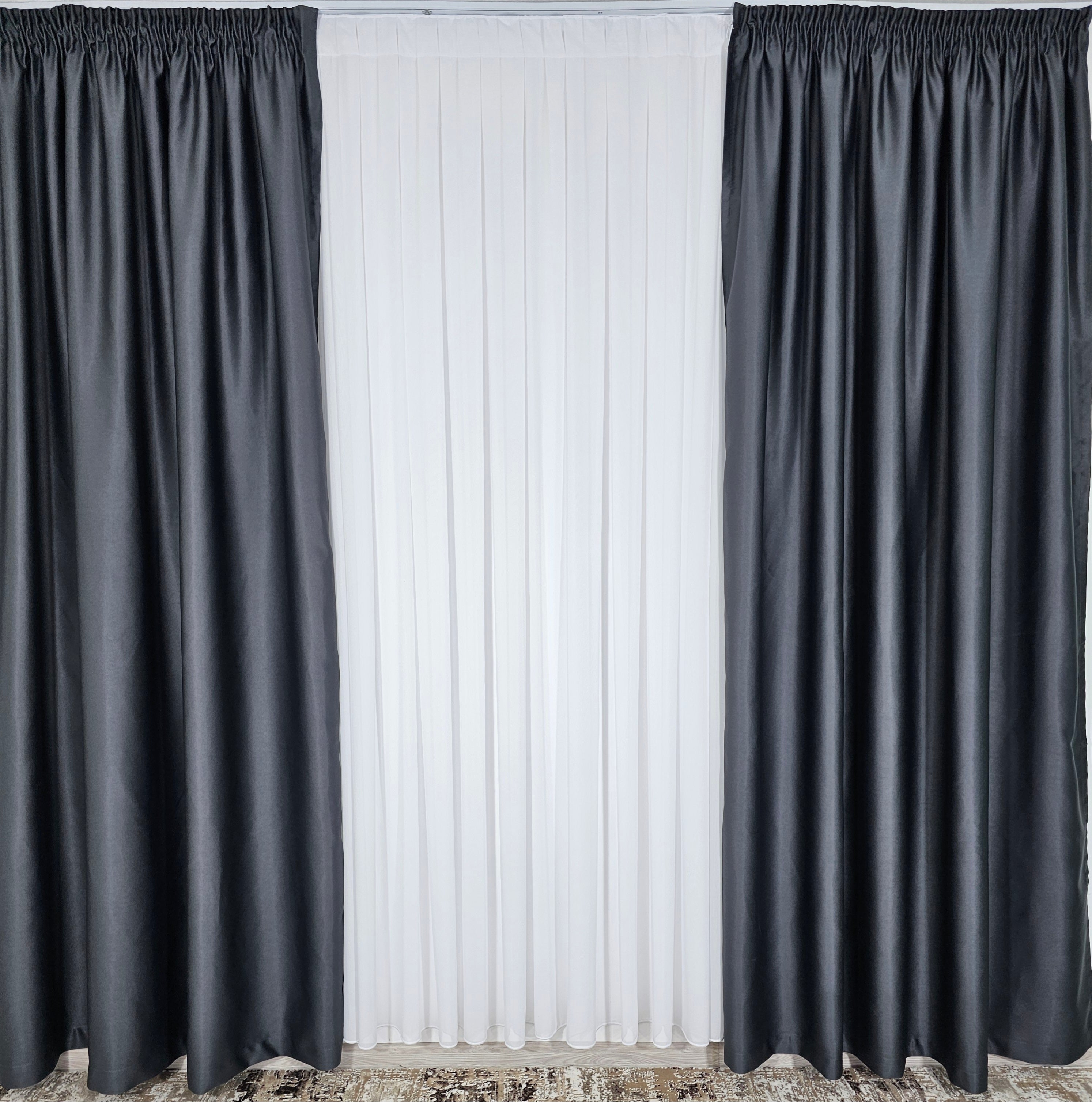 Draperie simplă, din material gros de poliester premium, cu efect blackout complet și nuanță de gri închis – perfectă pentru camere care au nevoie de întuneric total și rafinament sobru.