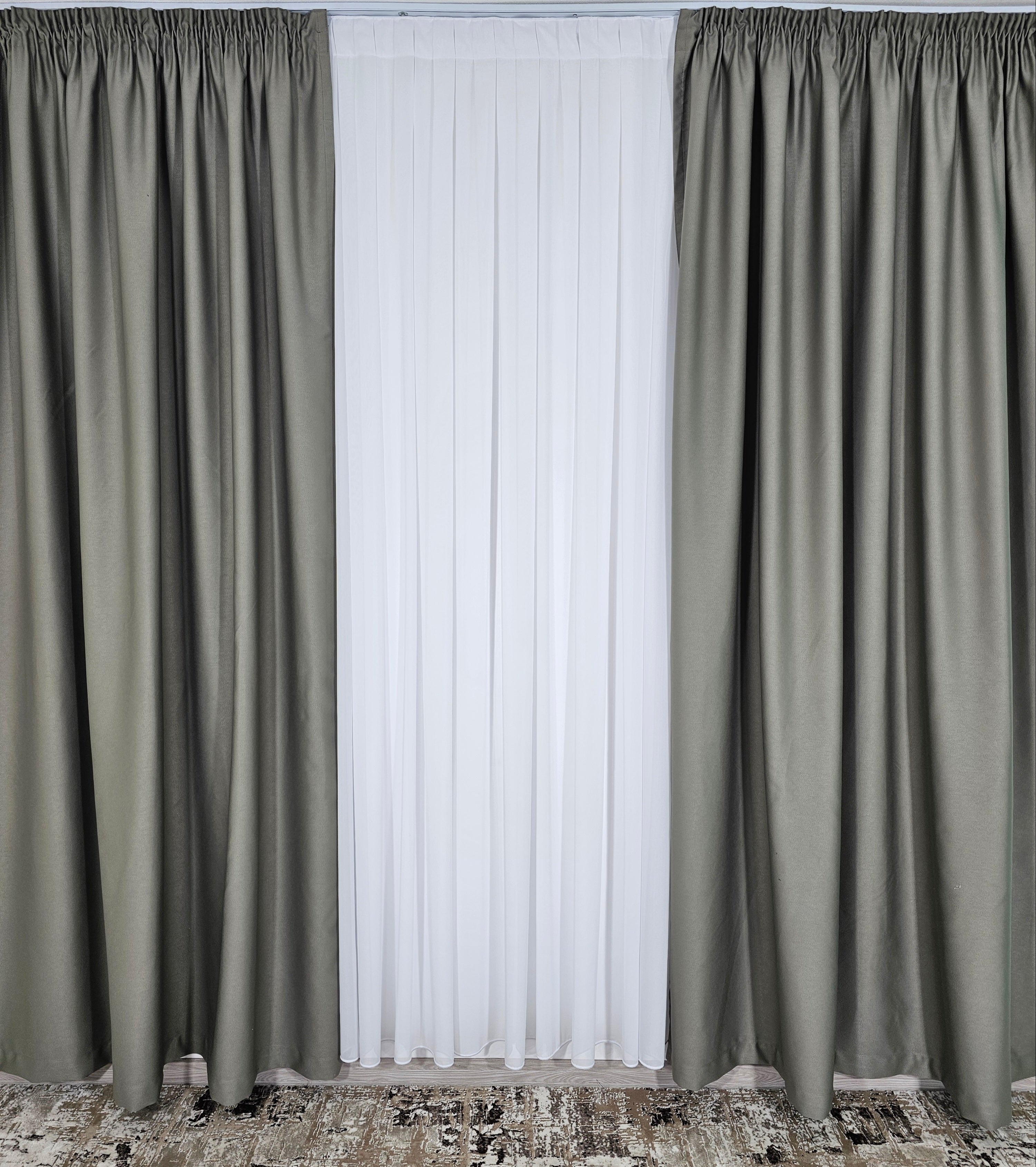 Draperii concepute special pentru spații unde controlul total al luminii este esențial. Culoarea gri-verzui adaugă un accent sofisticat și versatil, ideal pentru interioare moderne, minimaliste sau hoteliere.