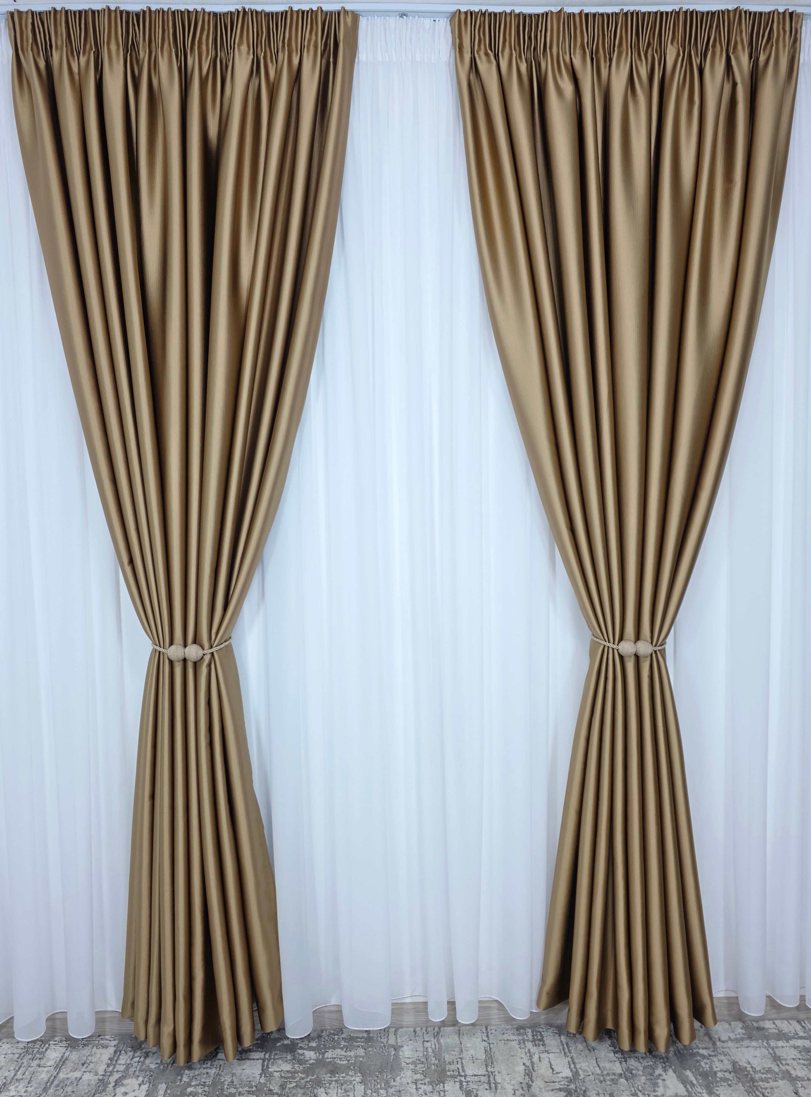 Perdea Voal Alb Premium și Draperie Paris Blackout 100% Opacă Caramel – Eleganță și Confort Total
