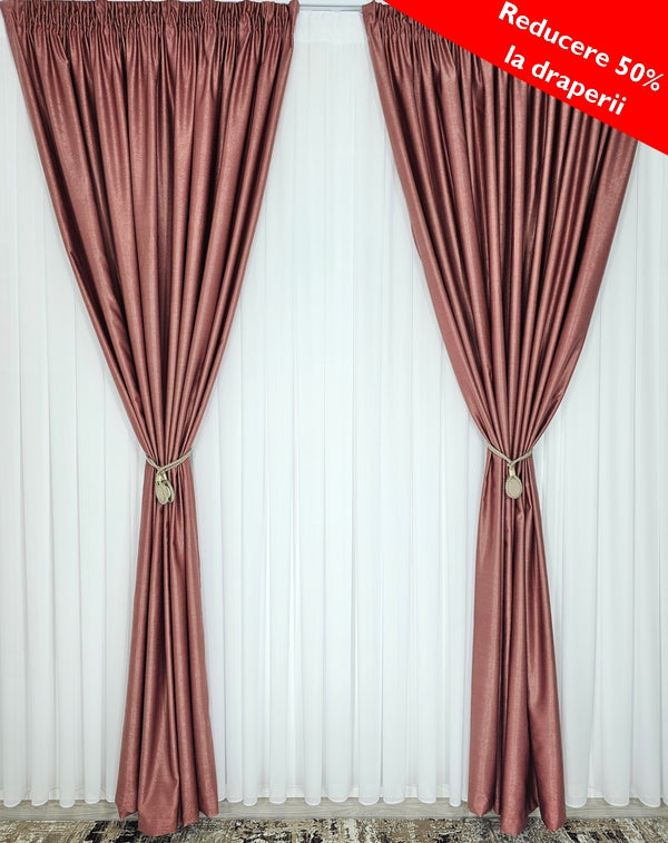 Colectia Soft: perdea voal alb si draperie uni, varianta mai ușoară a catifelei-Roz