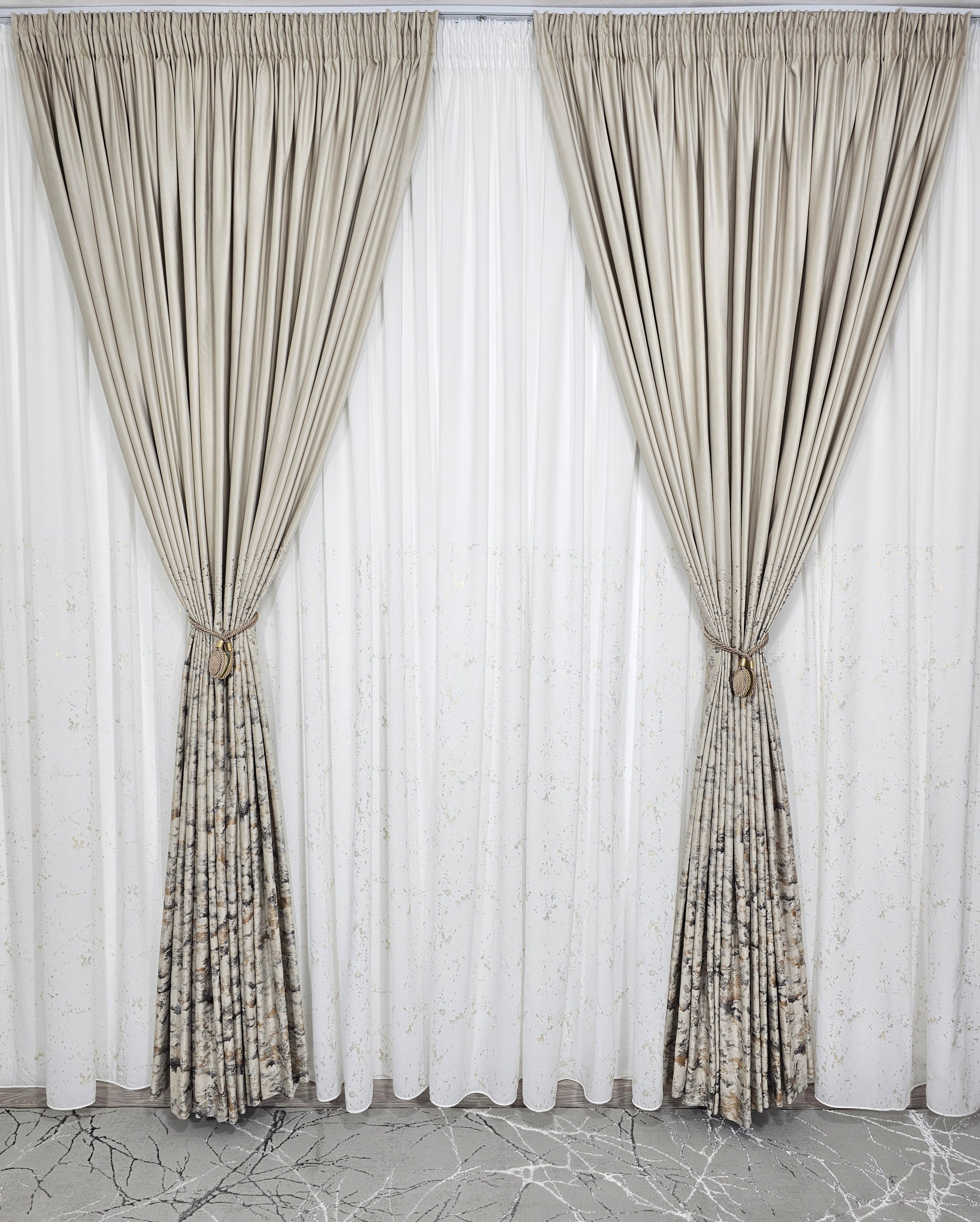 Perdea din Mătase cu Inserții Aurii și Draperie din Catifea cu Inserții – Bej ðŸ¤âœ¨ðŸŒŸ