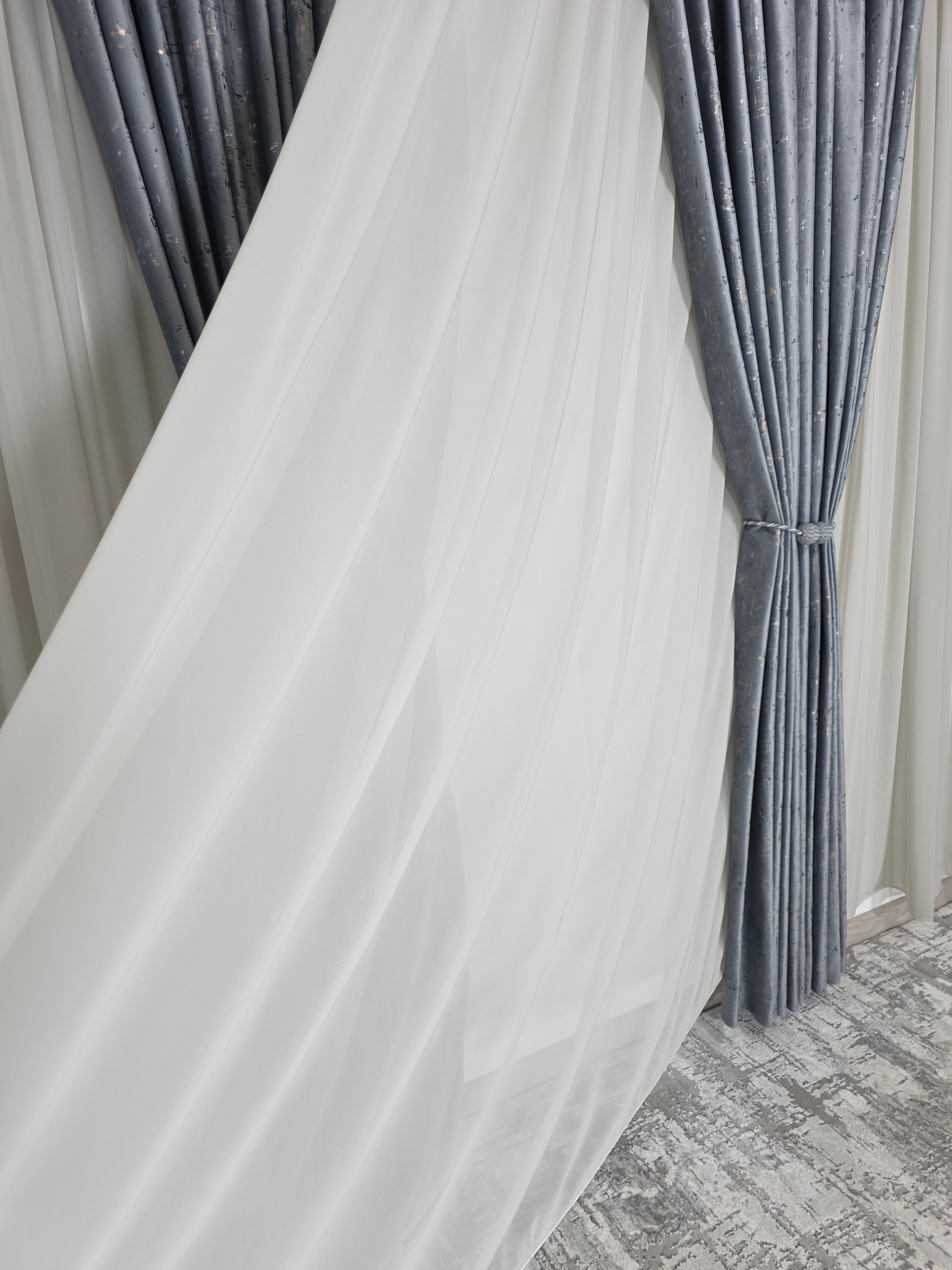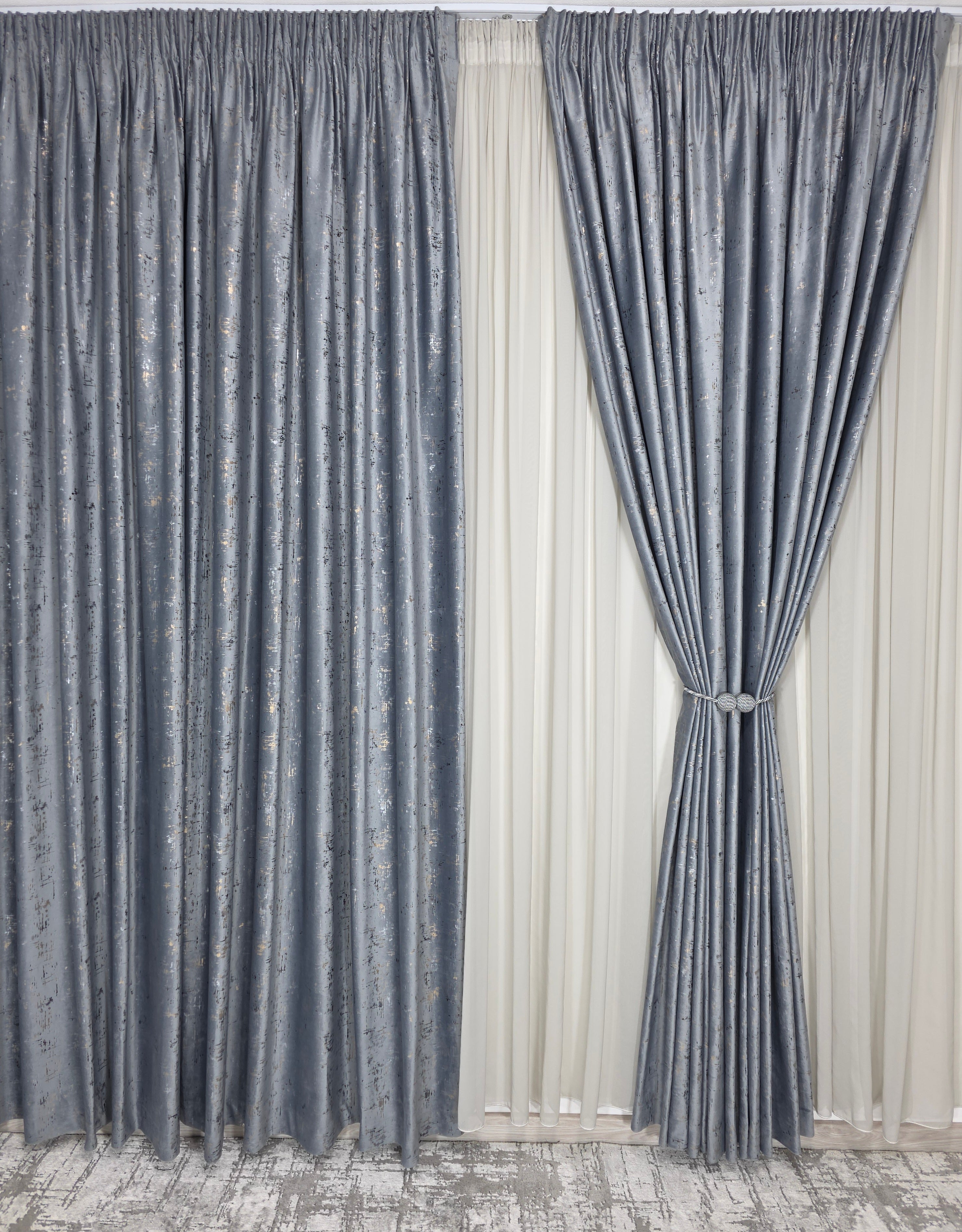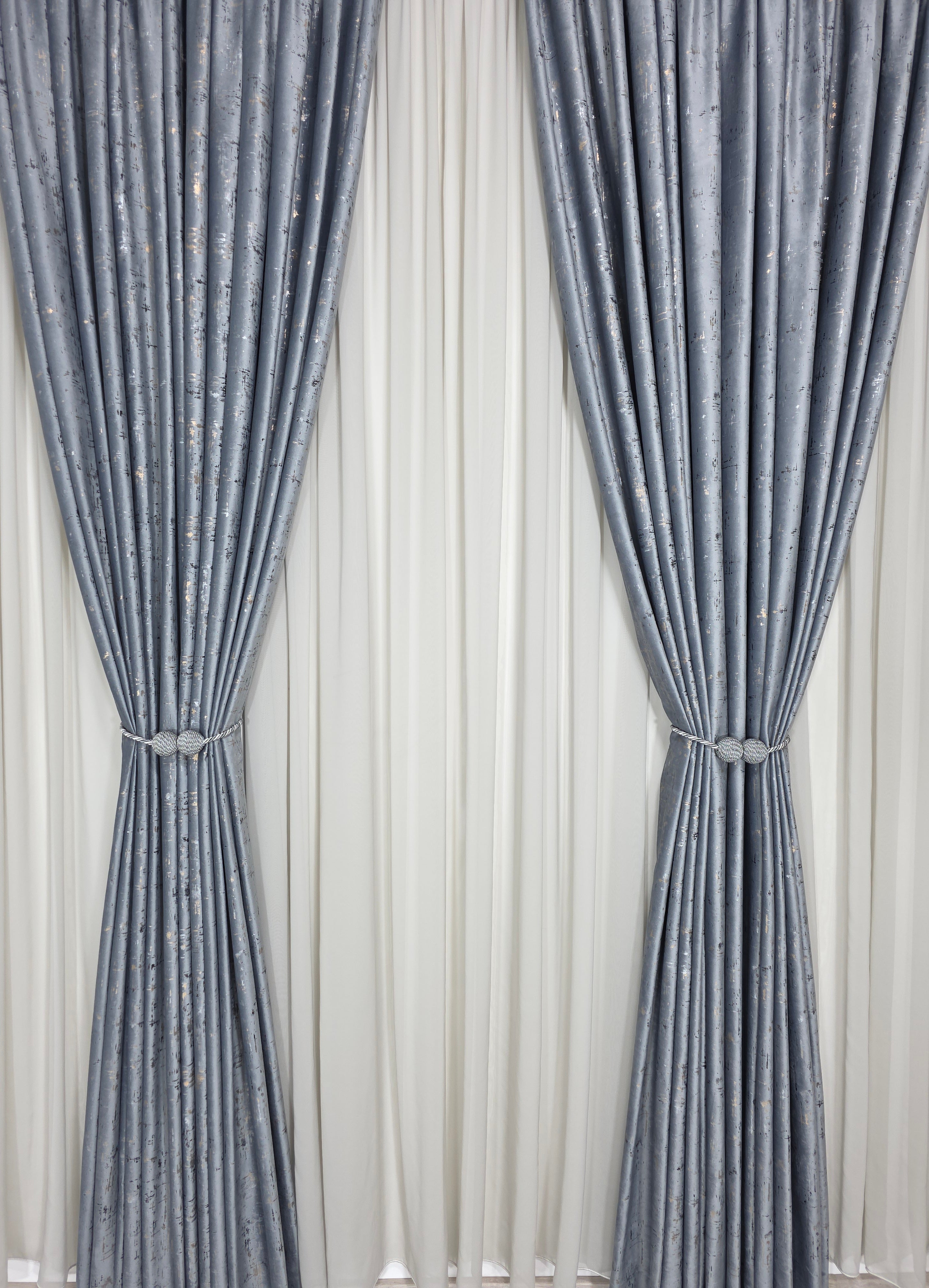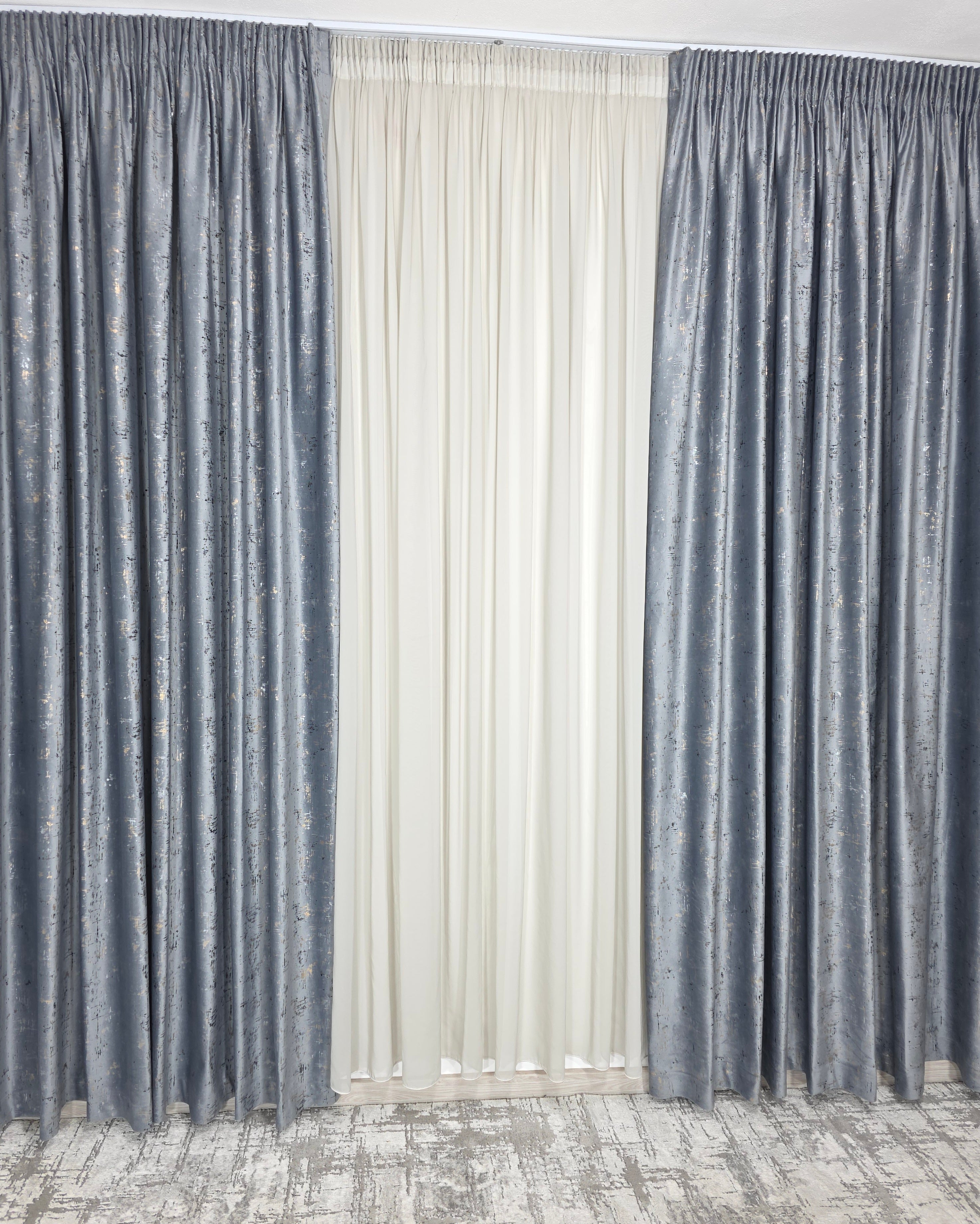 Setul Perdea Jorjet Gri și Draperie Pandantiv din Catifea Gri Închis cu Inserții combină eleganța rafinată cu simplitatea modernă. Perdeaua Jorjet, realizată din material plin și moale, oferă luminozitate echilibrată, iar draperia Pandantiv din catifea gri închis cu inserții adaugă profunzime, textură și o notă sofisticată de design.