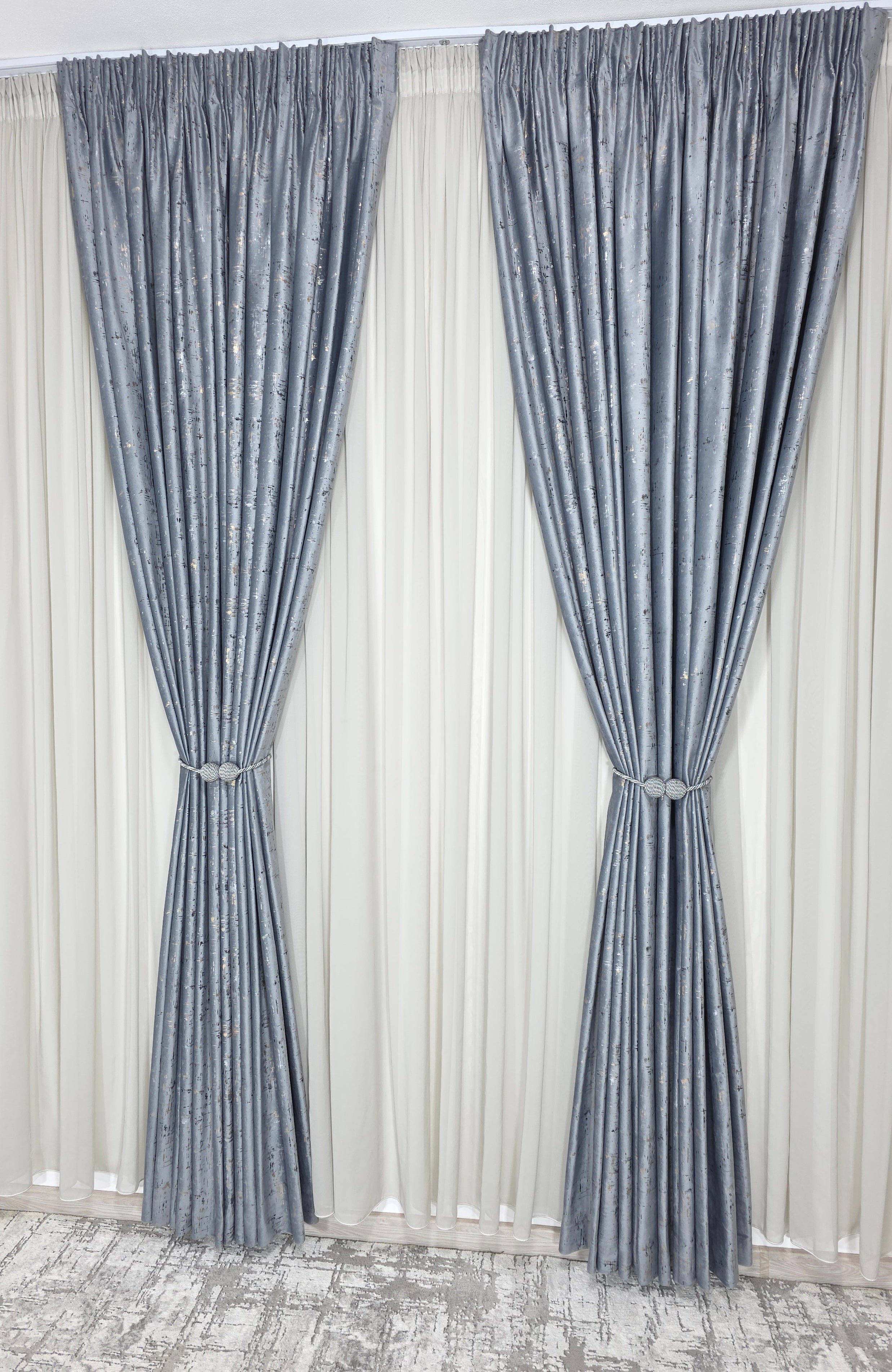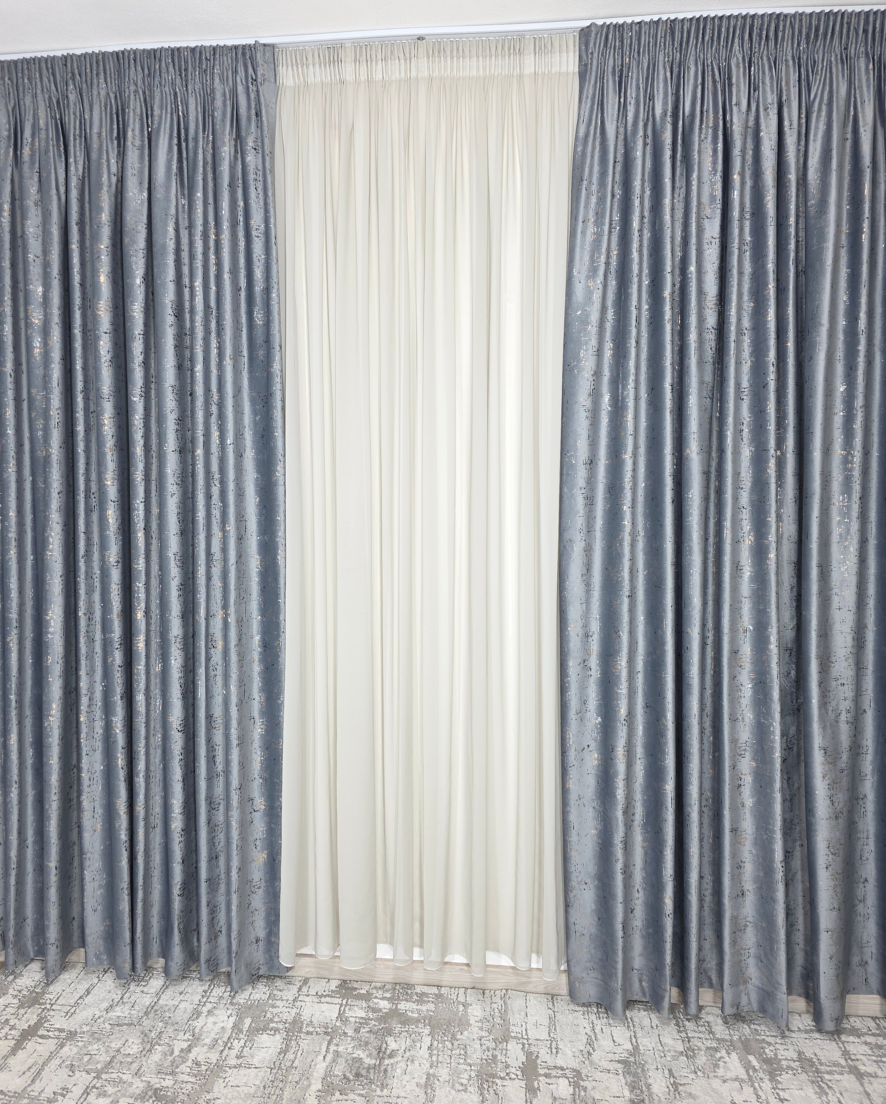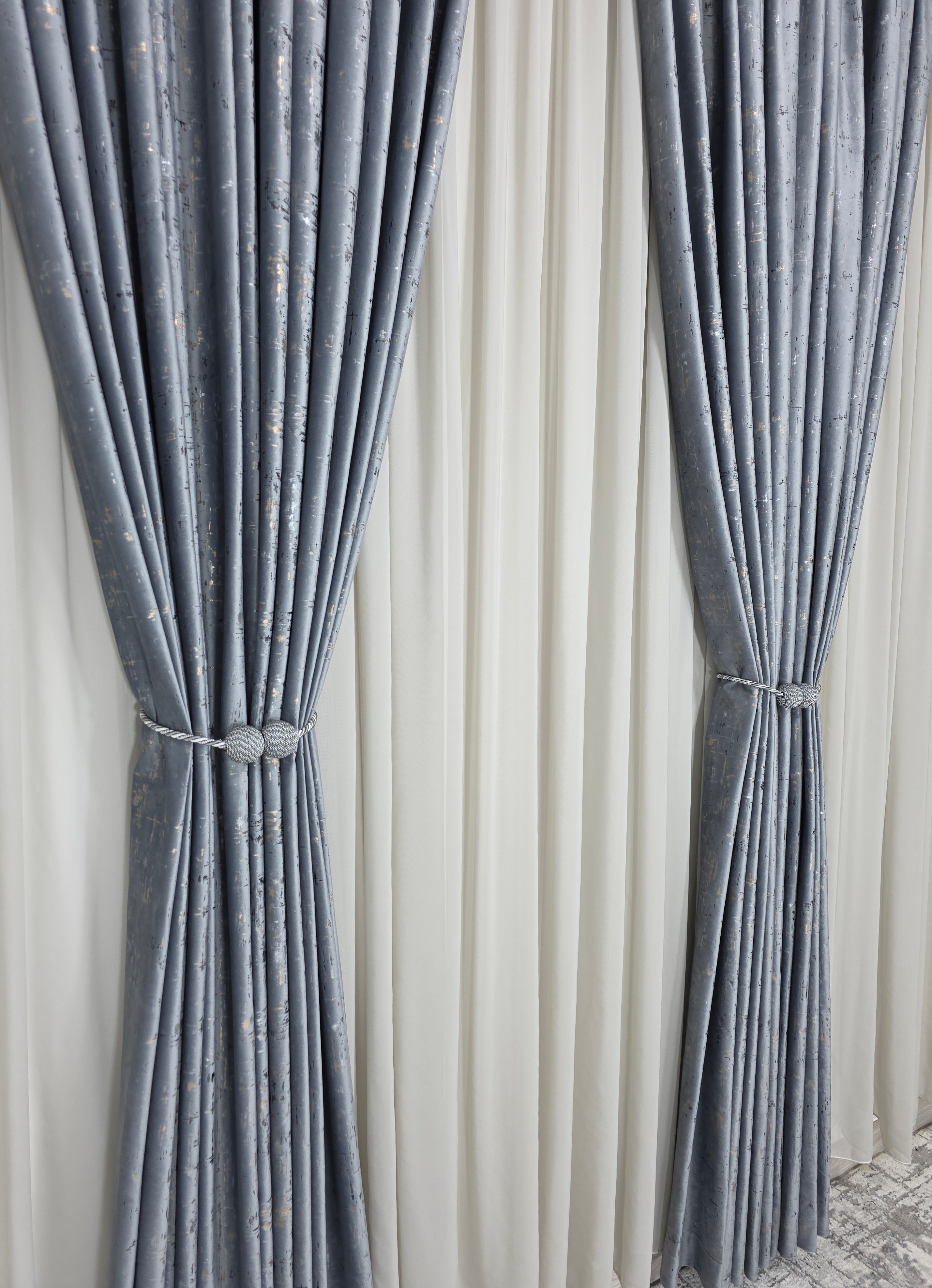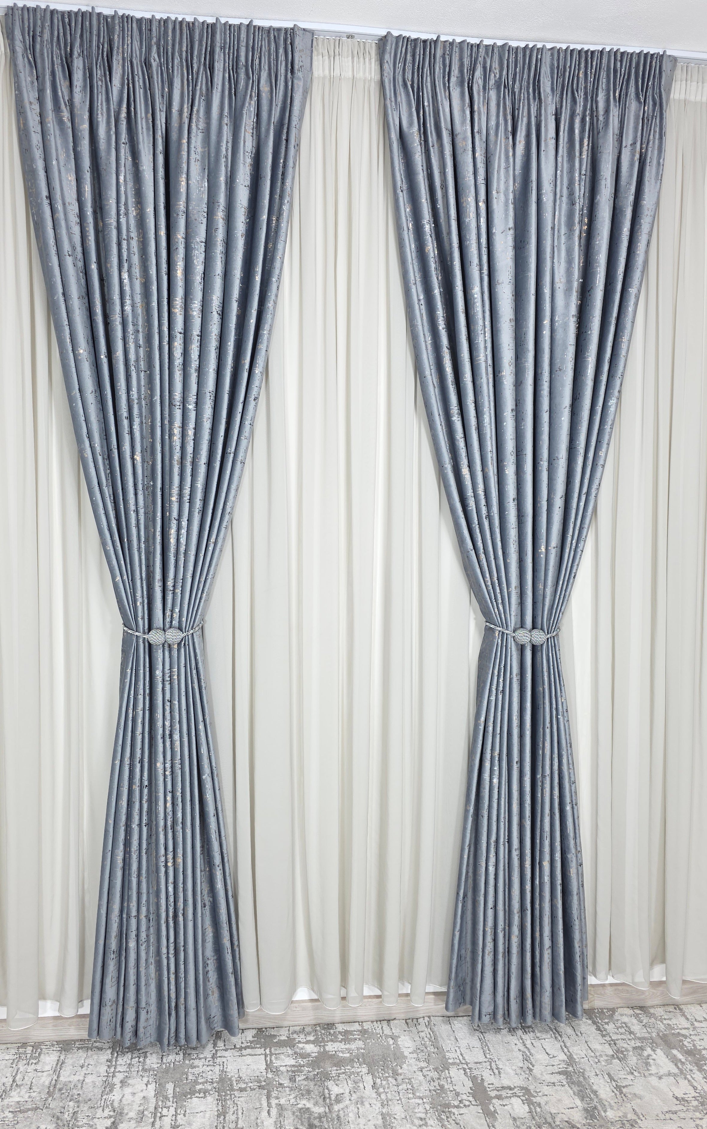 Setul Perdea Jorjet Gri și Draperie Pandantiv din Catifea Gri Închis cu Inserții combină eleganța rafinată cu simplitatea modernă. Perdeaua Jorjet, realizată din material plin și moale, oferă luminozitate echilibrată, iar draperia Pandantiv din catifea gri închis cu inserții adaugă profunzime, textură și o notă sofisticată de design.