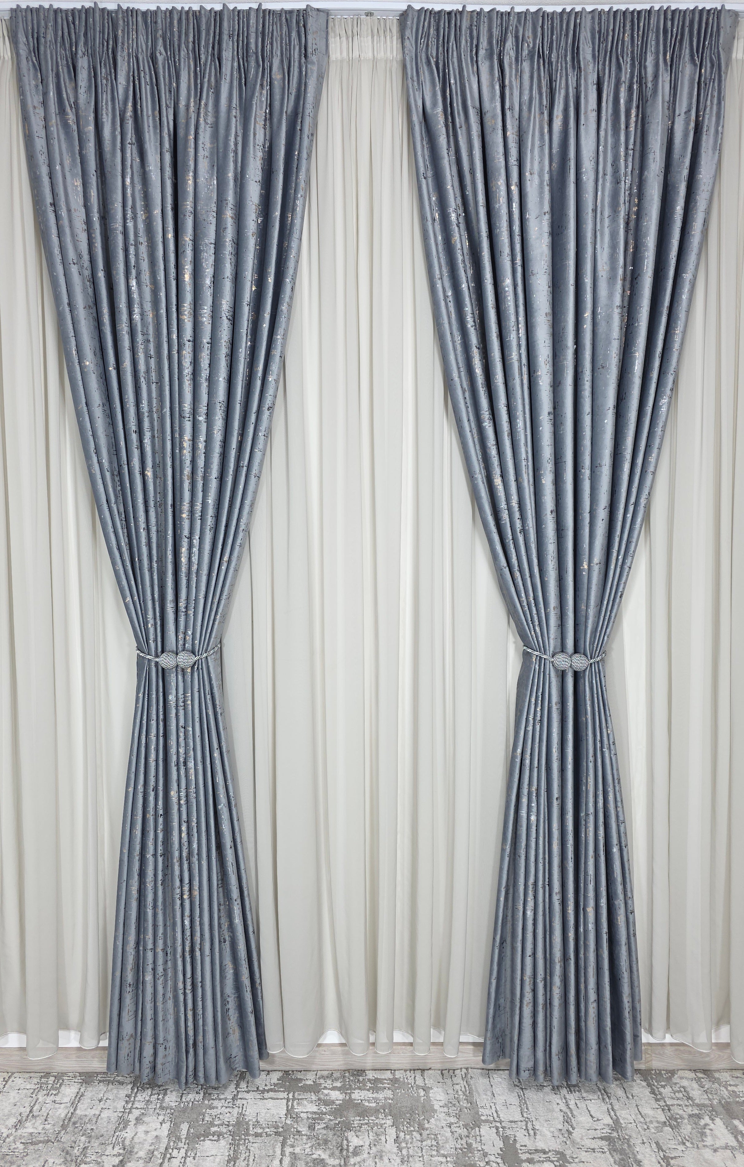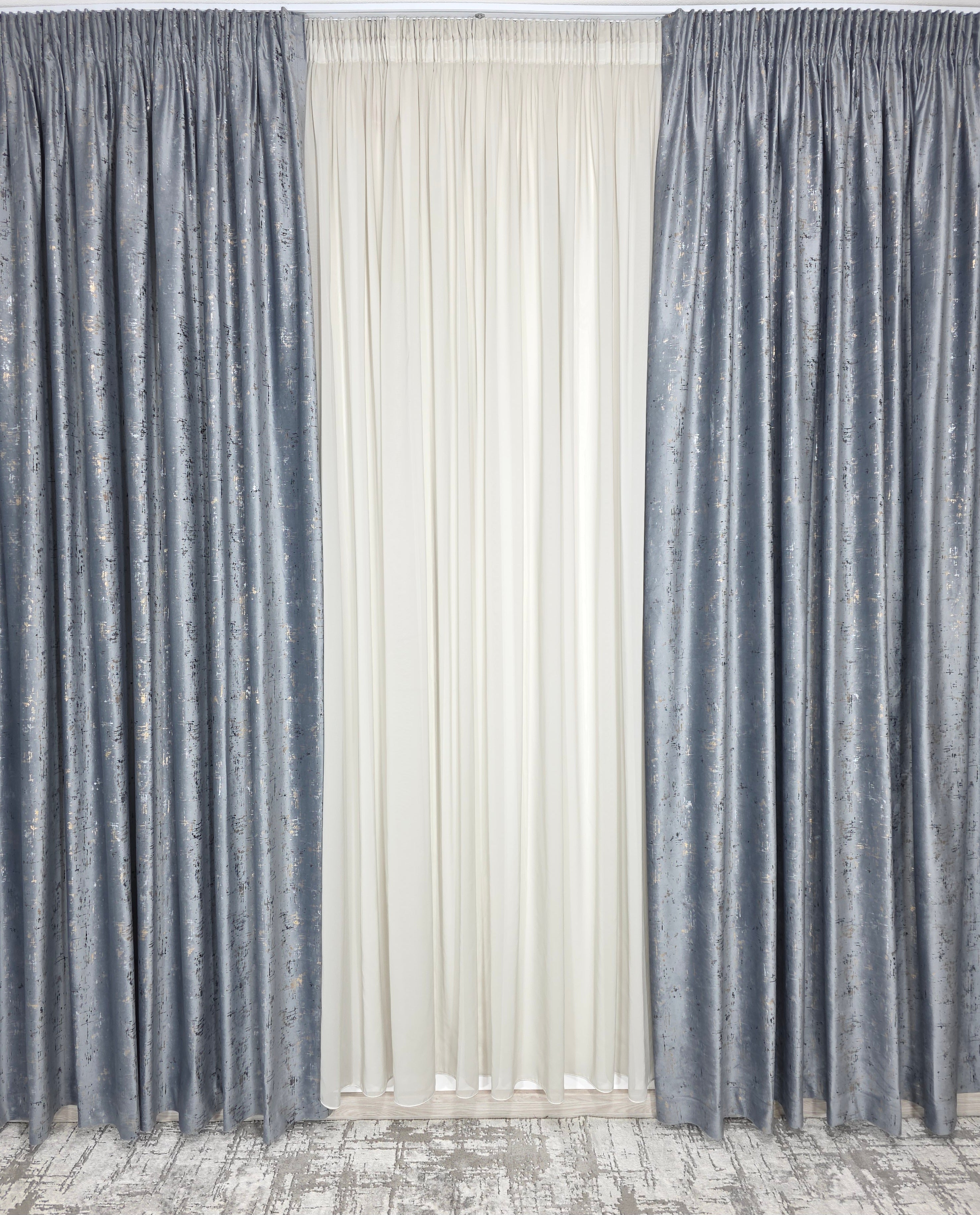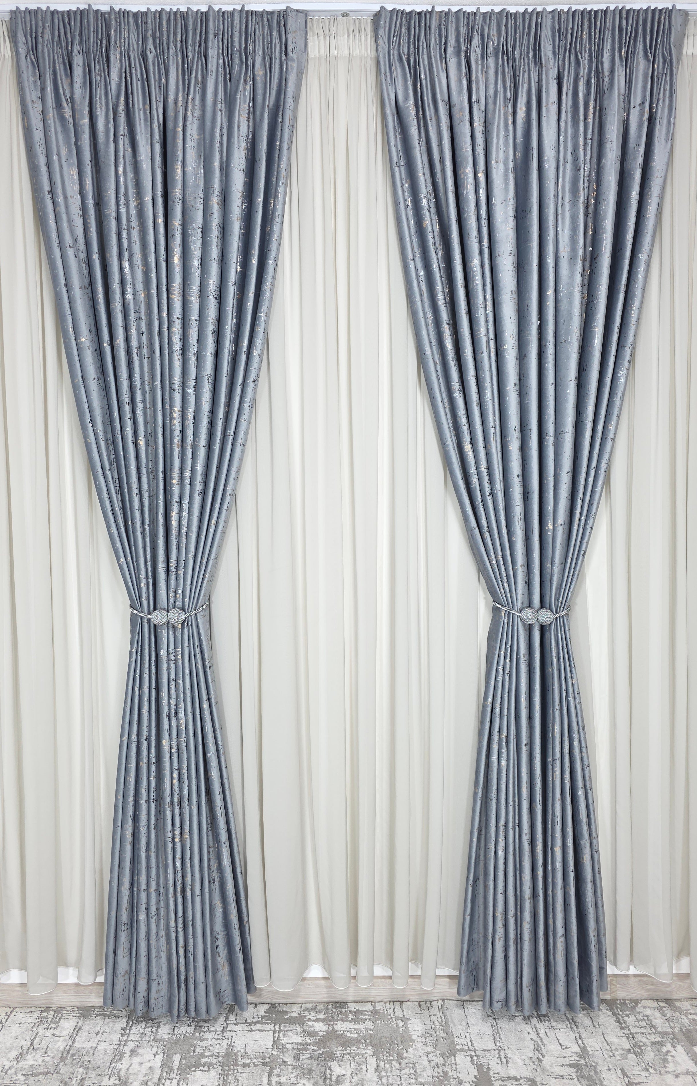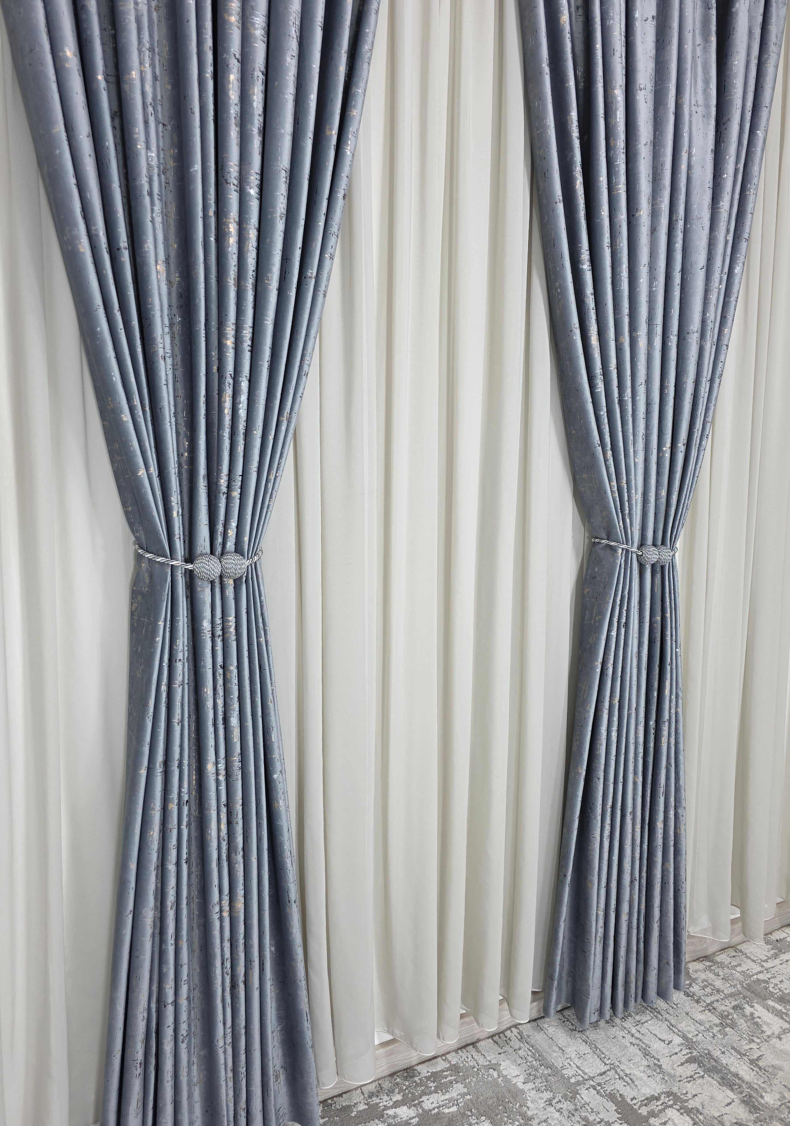 Setul Perdea Jorjet Gri și Draperie Pandantiv din Catifea Gri Închis cu Inserții combină eleganța rafinată cu simplitatea modernă. Perdeaua Jorjet, realizată din material plin și moale, oferă luminozitate echilibrată, iar draperia Pandantiv din catifea gri închis cu inserții adaugă profunzime, textură și o notă sofisticată de design.