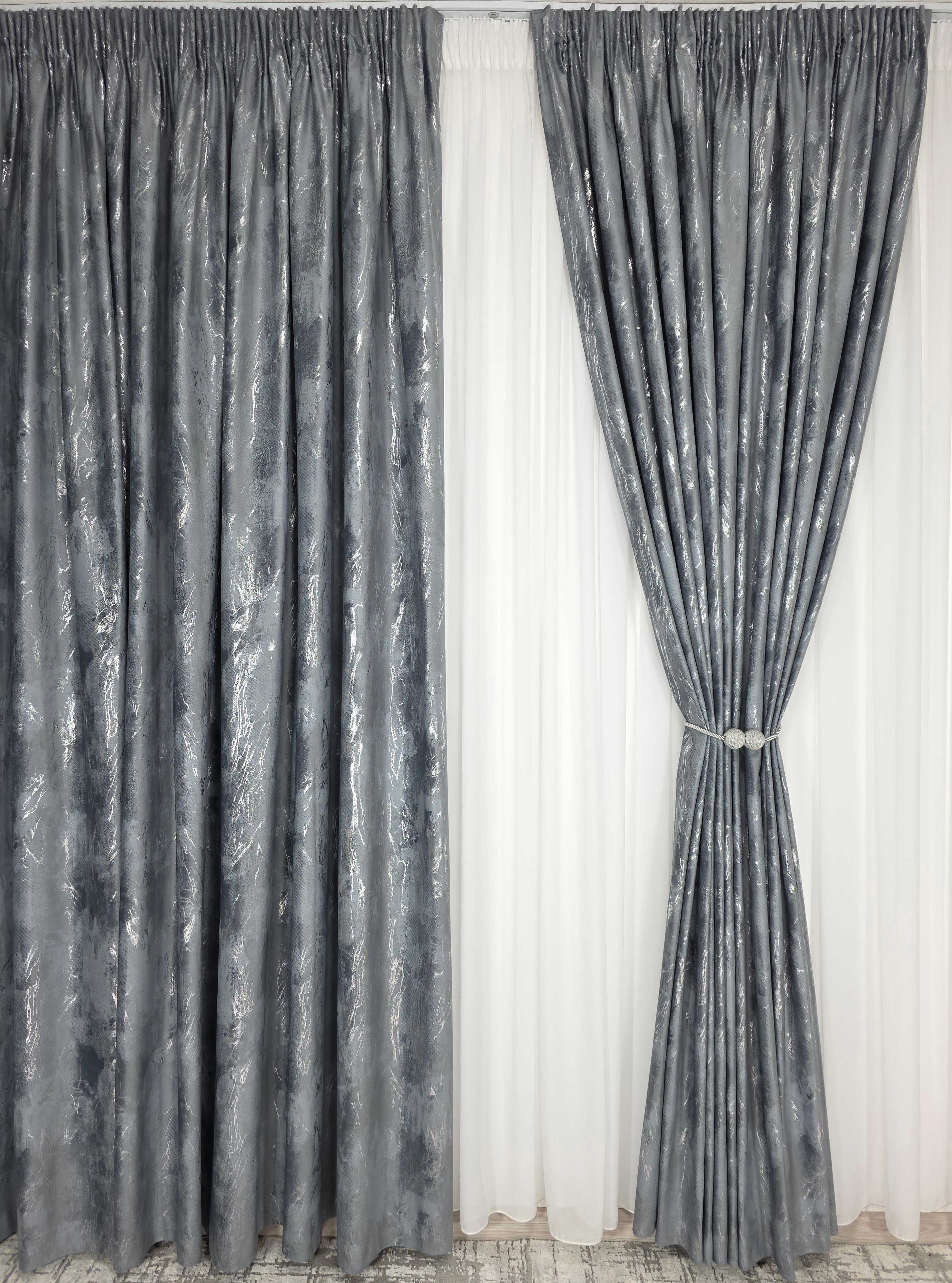 Draperie Milano din catifea gri închis cu inserții argintii metalizate