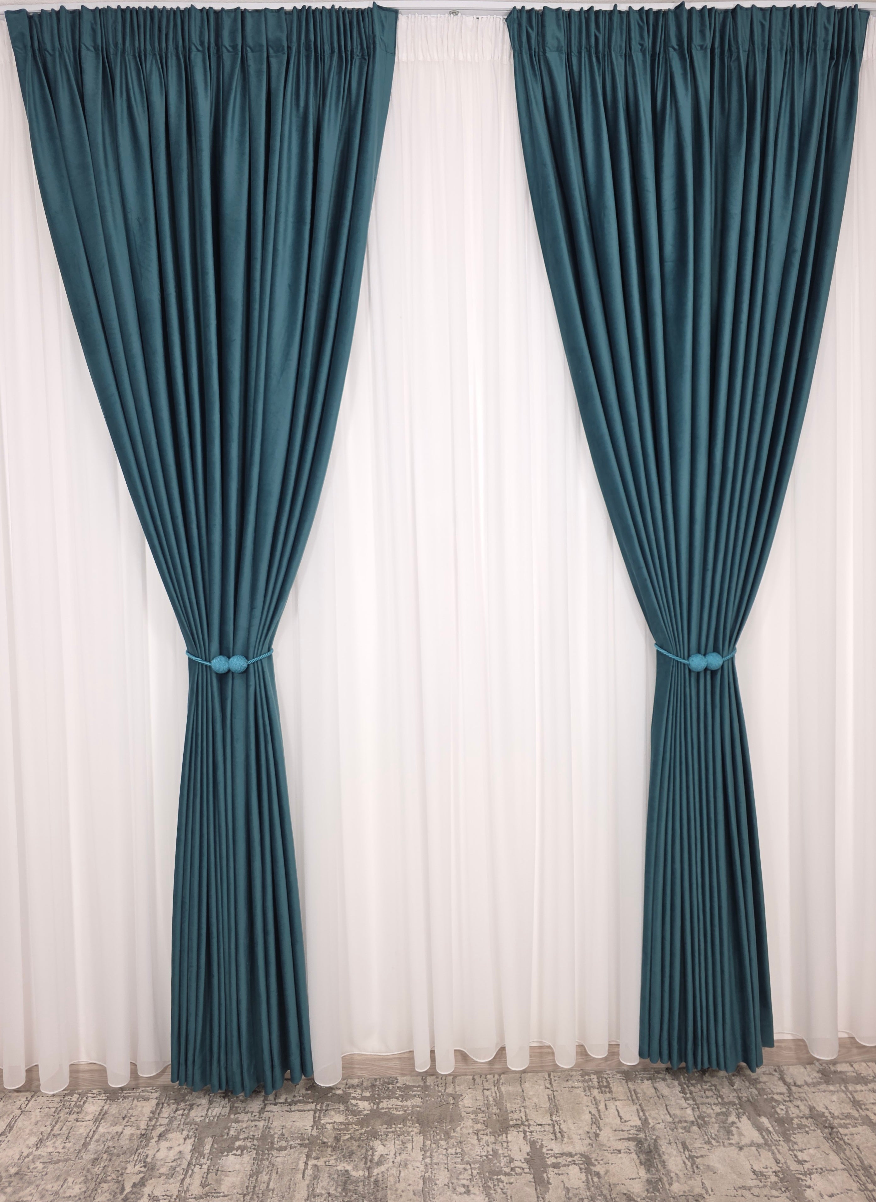 Set Perdea Voal Premium & Draperie Catifea Verde-Turcoaz – Prospețime Vizuală și Rafinament Textil într-un Duo Elegant și Luminos