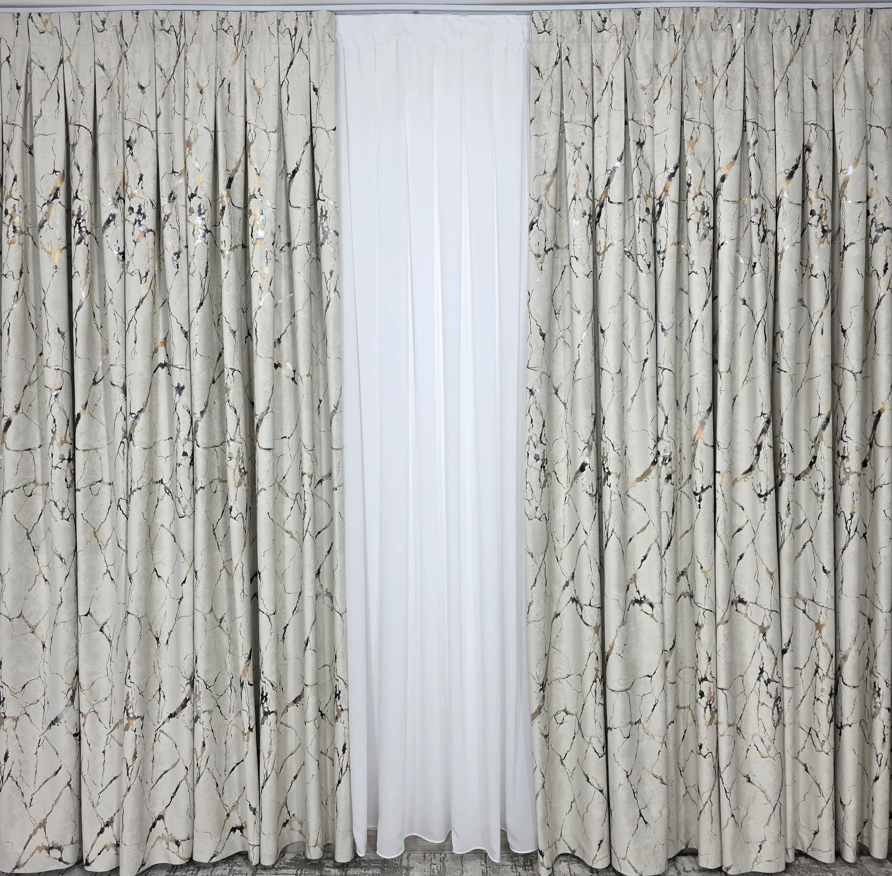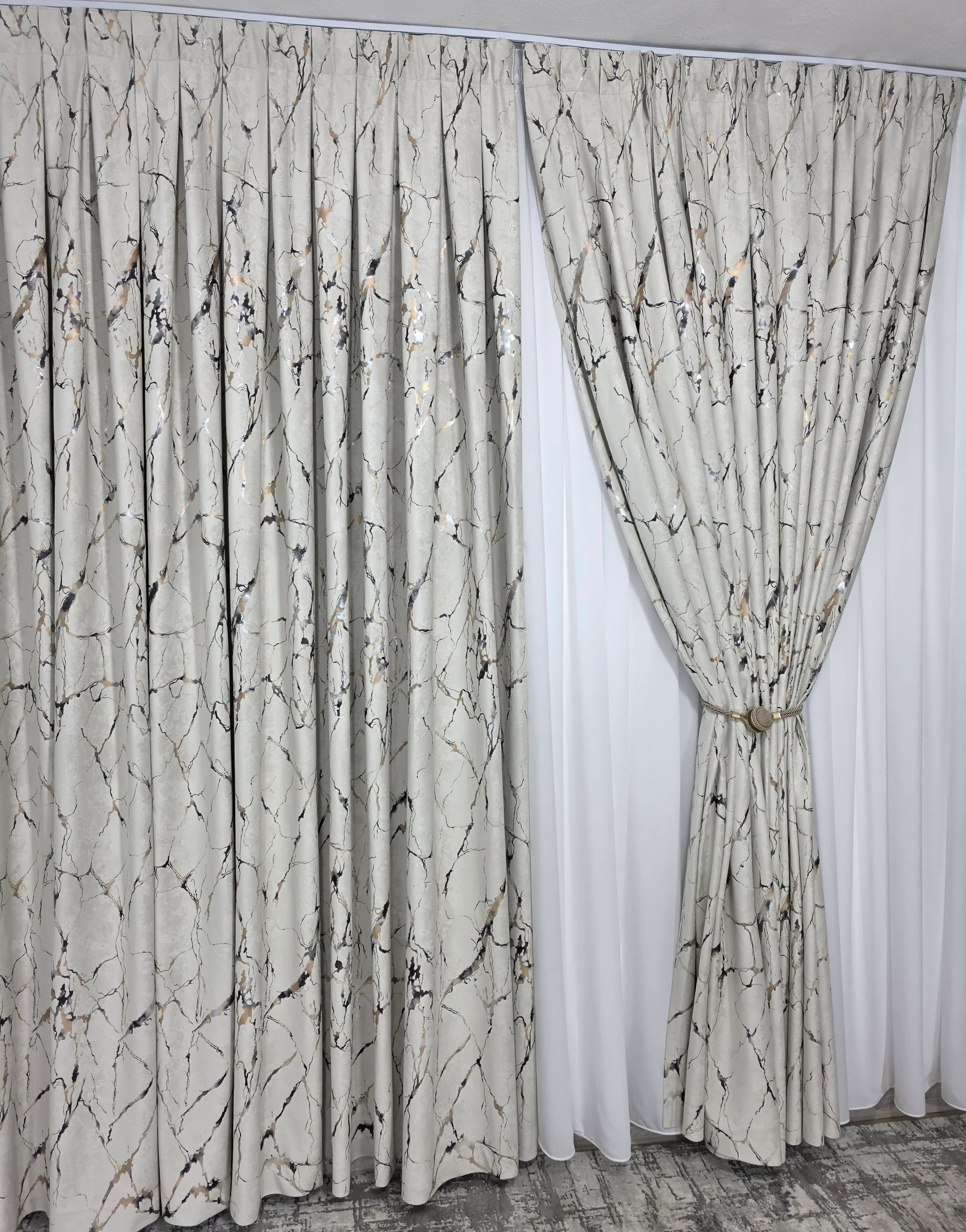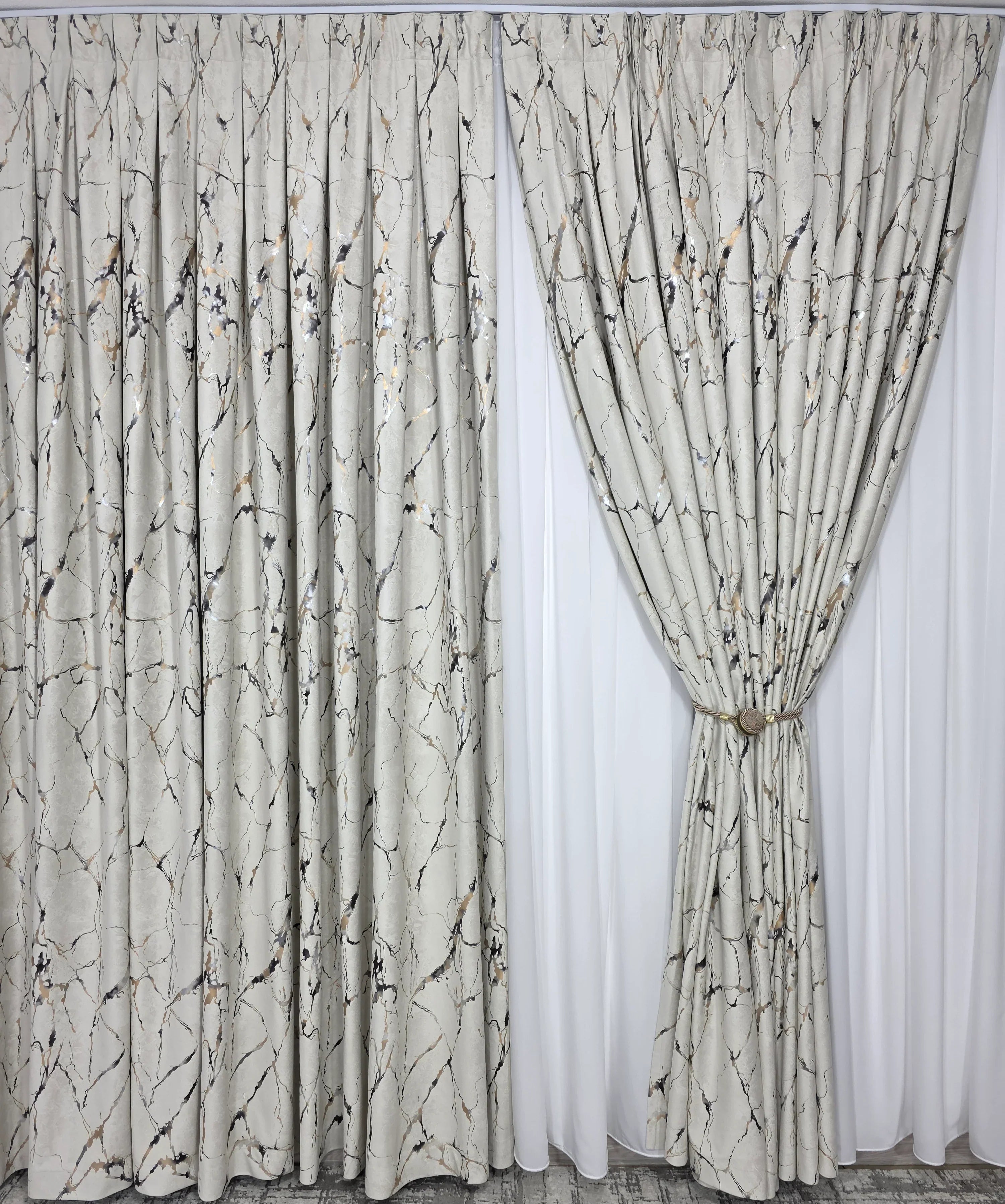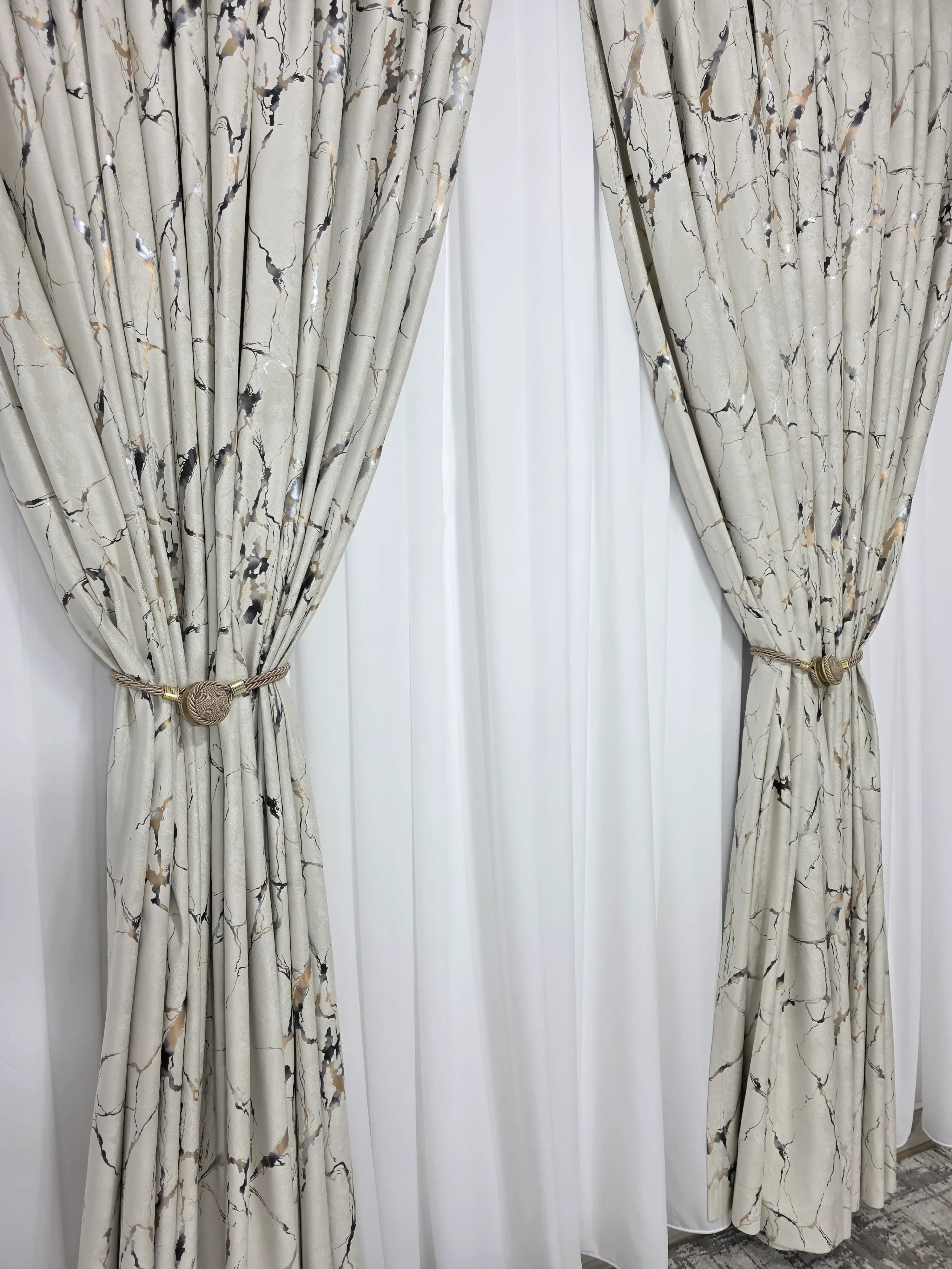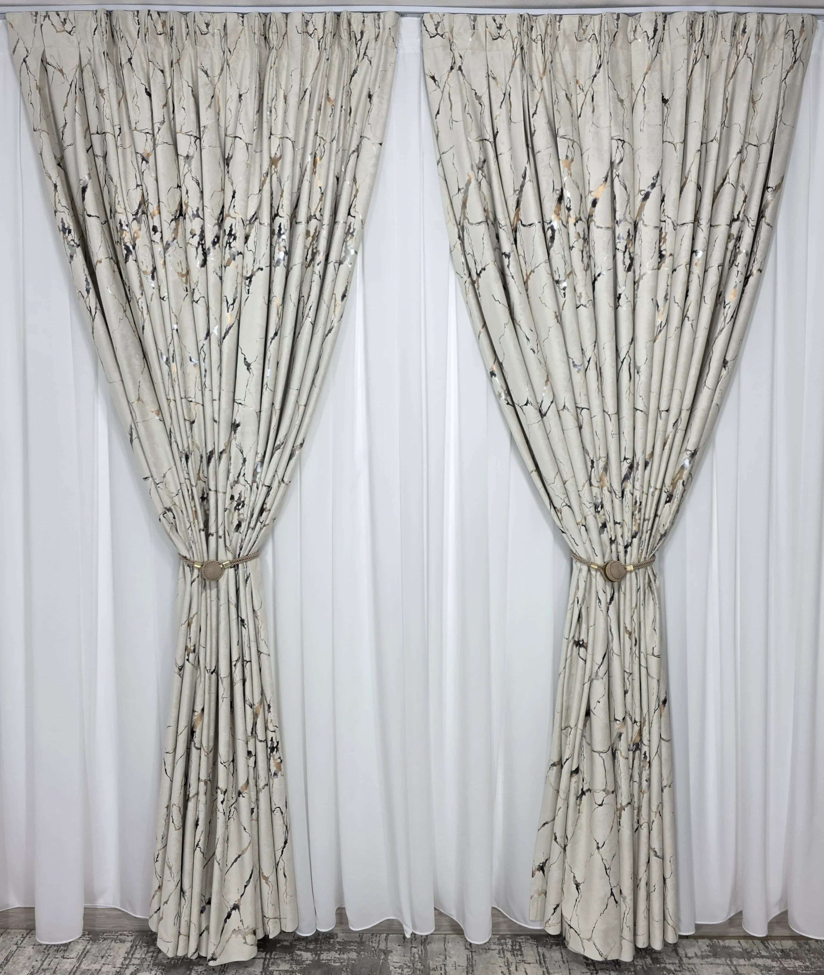 Draperie din Catifea Crem Deschis cu Inserții Aurii – Căldură Neutră și Strălucire Elegantă pentru Ferestrele Tale