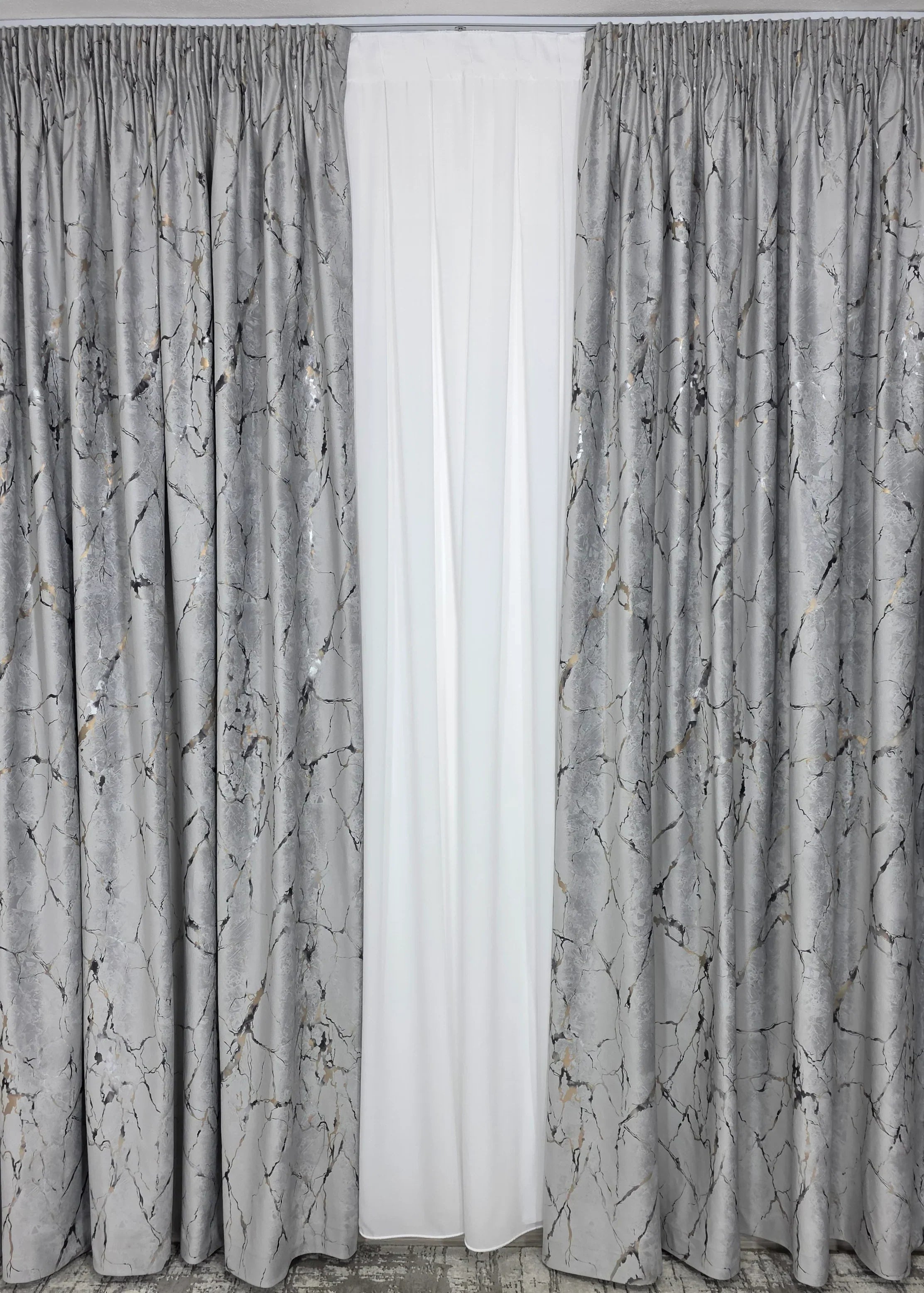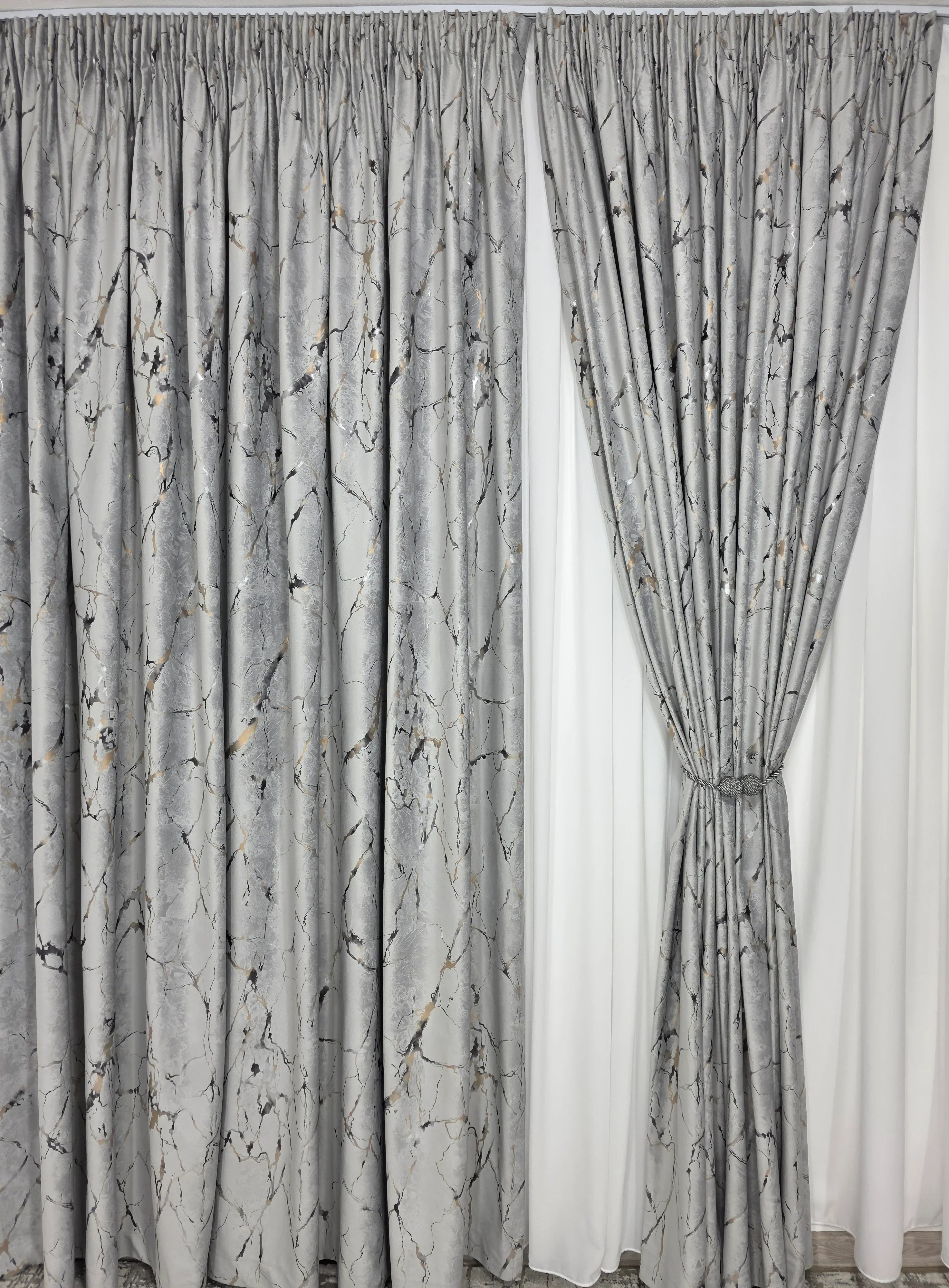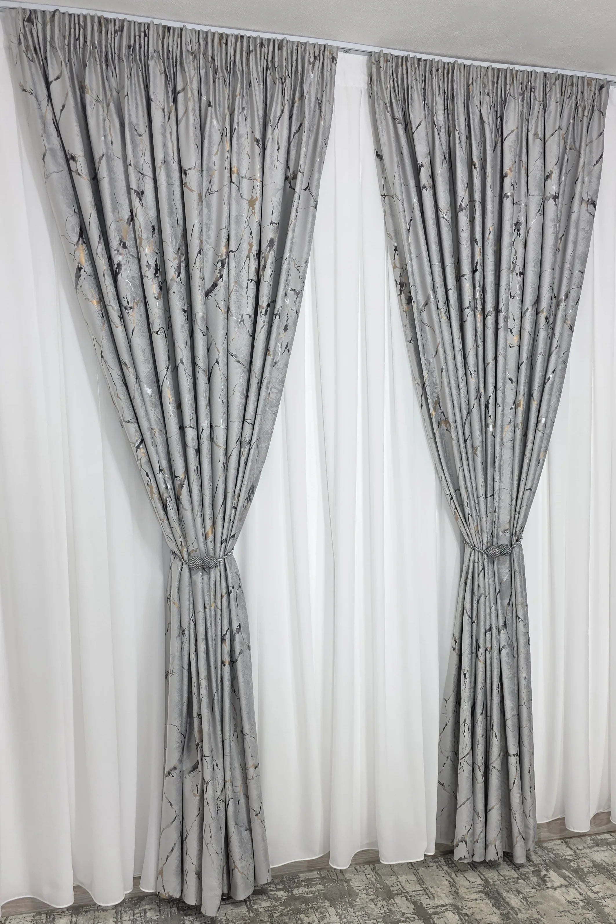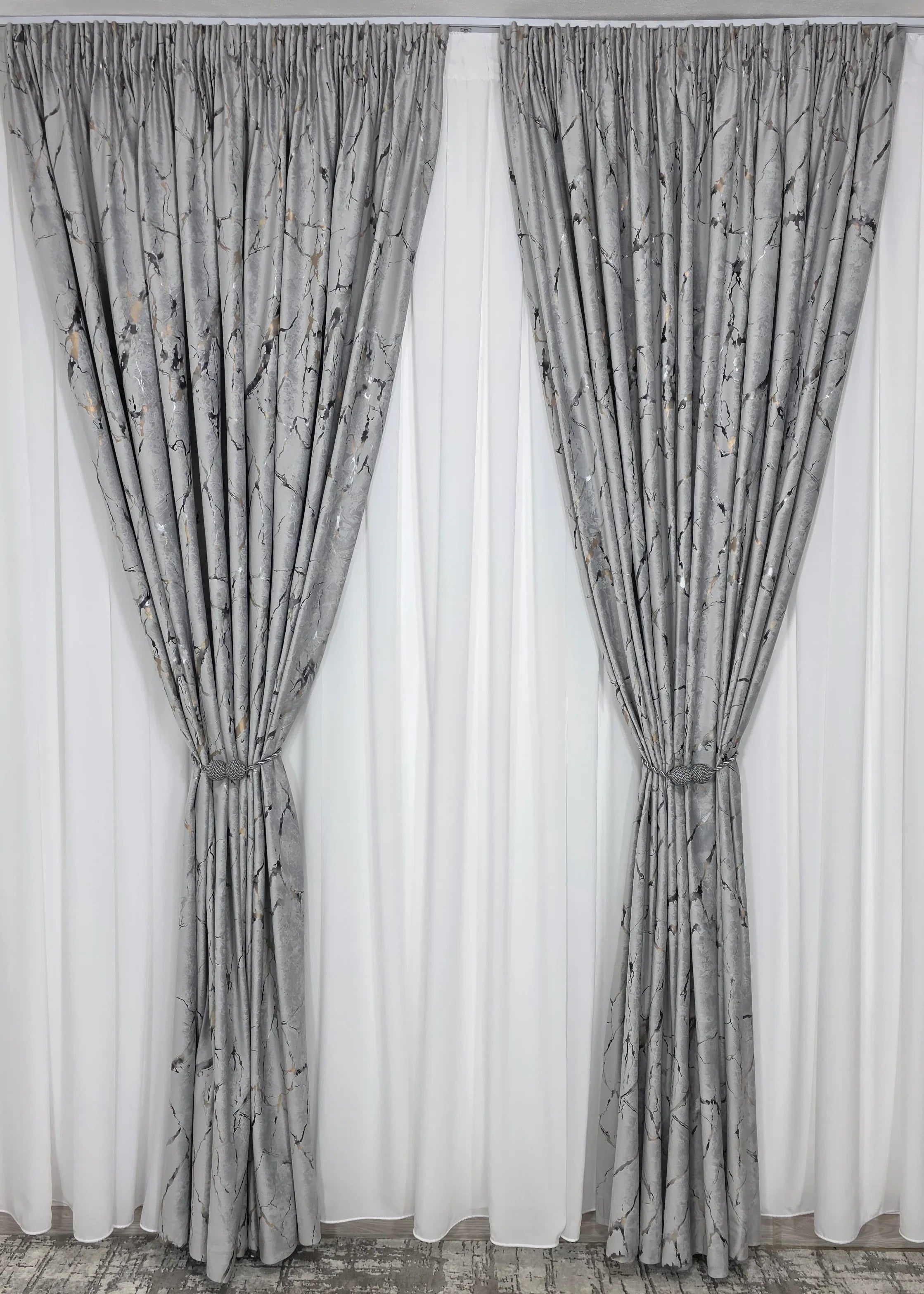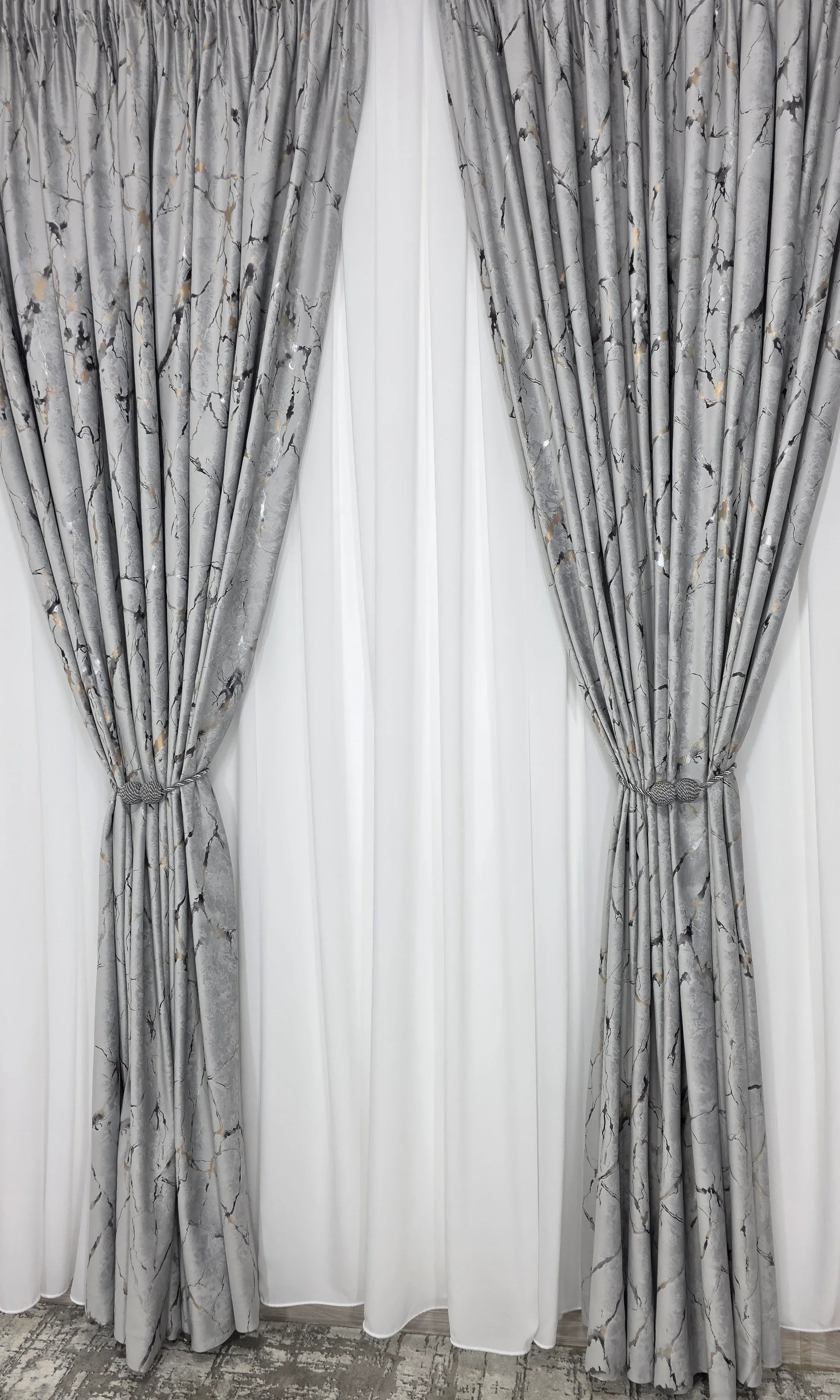 Draperie din catifea premium gri deschis cu inserții aurii elegante
