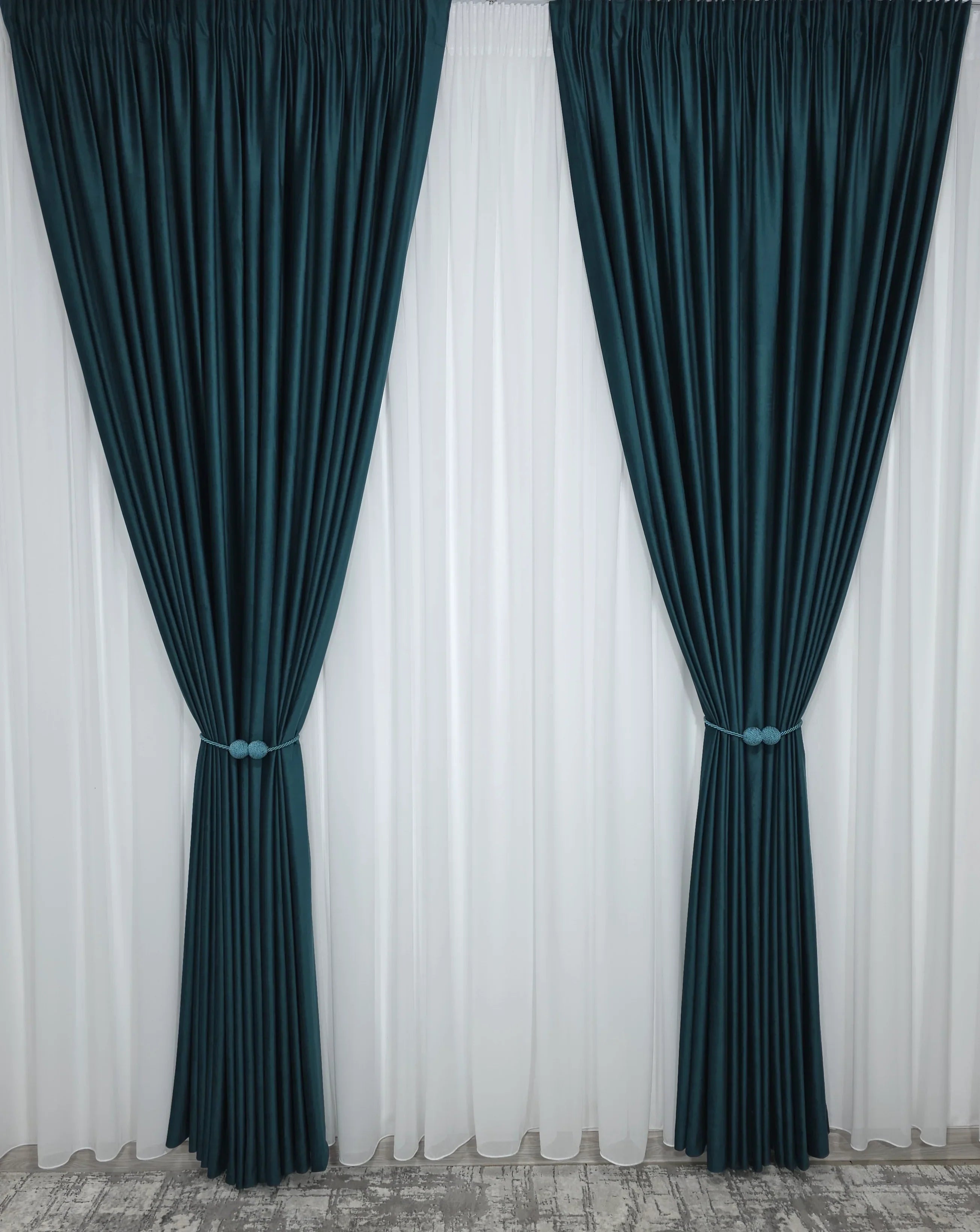 Alege Draperia din Catifea Verde-Turcoaz Tip Velură pentru a adăuga ferestrelor tale un plus de strălucire rafinată și textură sofisticată, transformând fiecare cameră într-un spațiu primitor și plin de bun-gust.