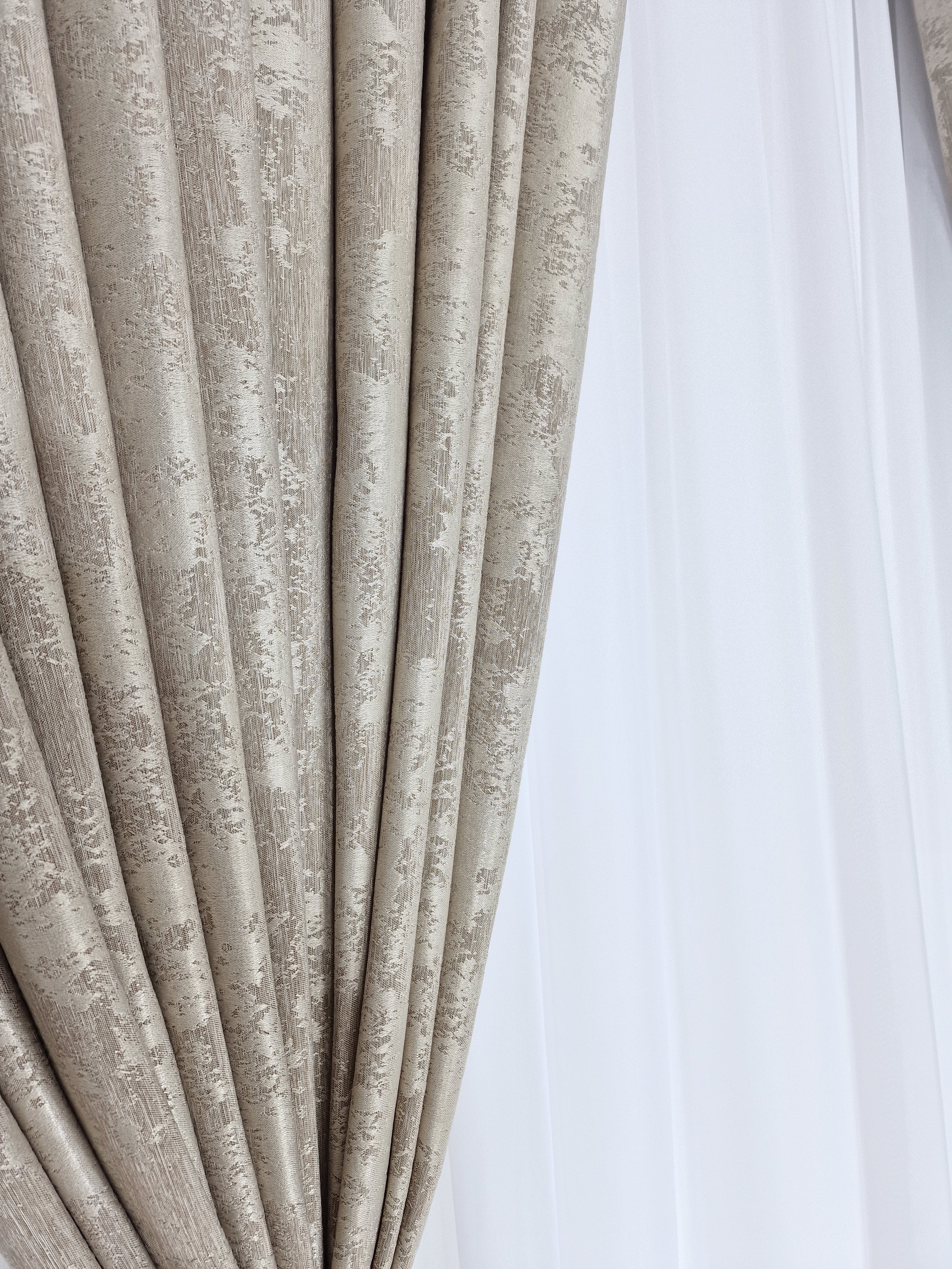 Draperia cu model de vopsea decorativă în nuanța crem completează perfect ansamblul, aducând un strop de originalitate și rafinament în decorul casei tale. Modelul inspirat de vopsea decorativă oferă un aspect artistic și inedit, aducând un farmec aparte în încăpere.