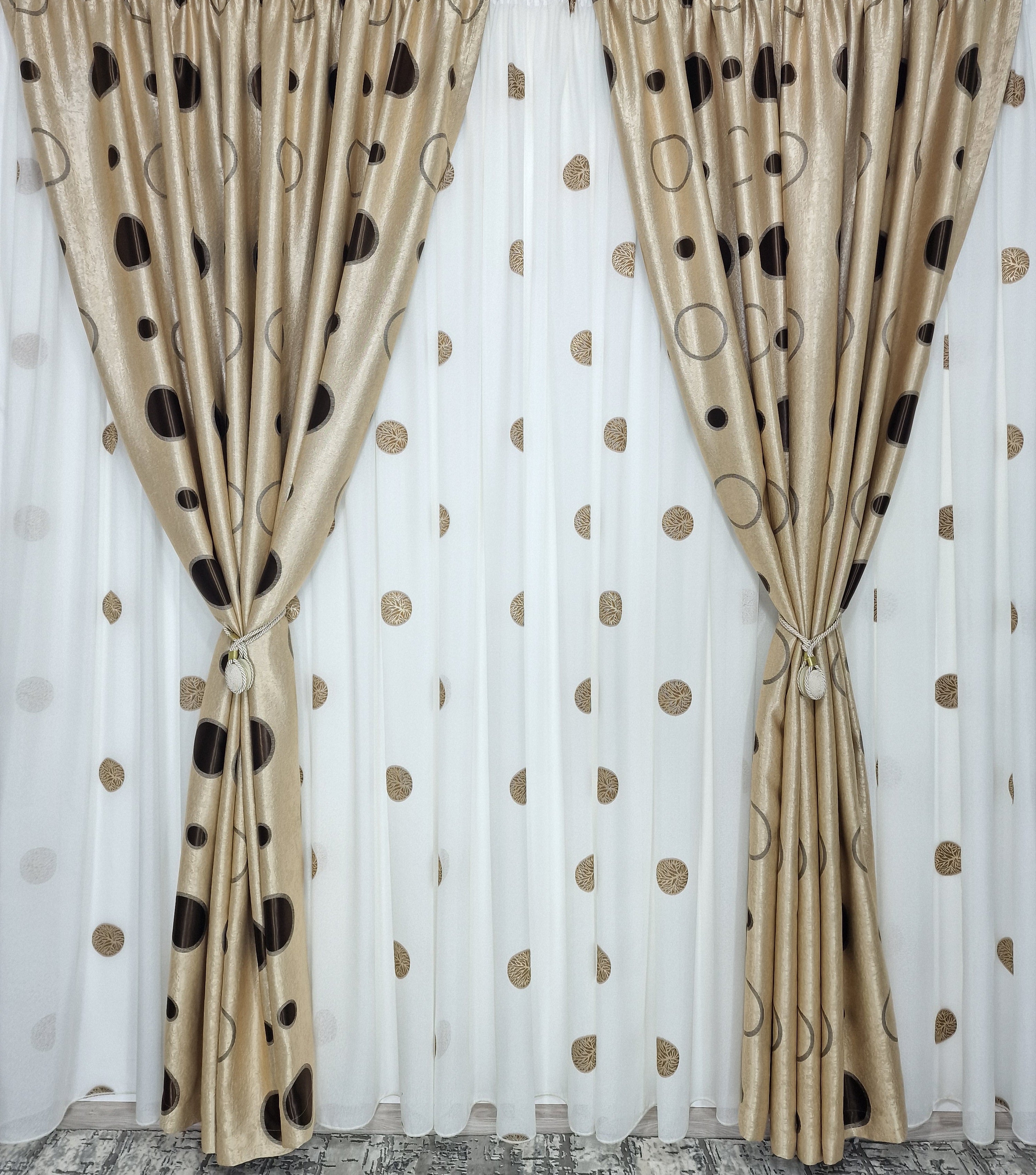 Transformă-ți spațiul într-un loc plin de farmec și bucurie cu această draperie crem cu maro și model cu buline. Adaugă un strop de originalitate și personalitate în decorul tău și creează o atmosferă plăcută și captivantă în fiecare cameră.