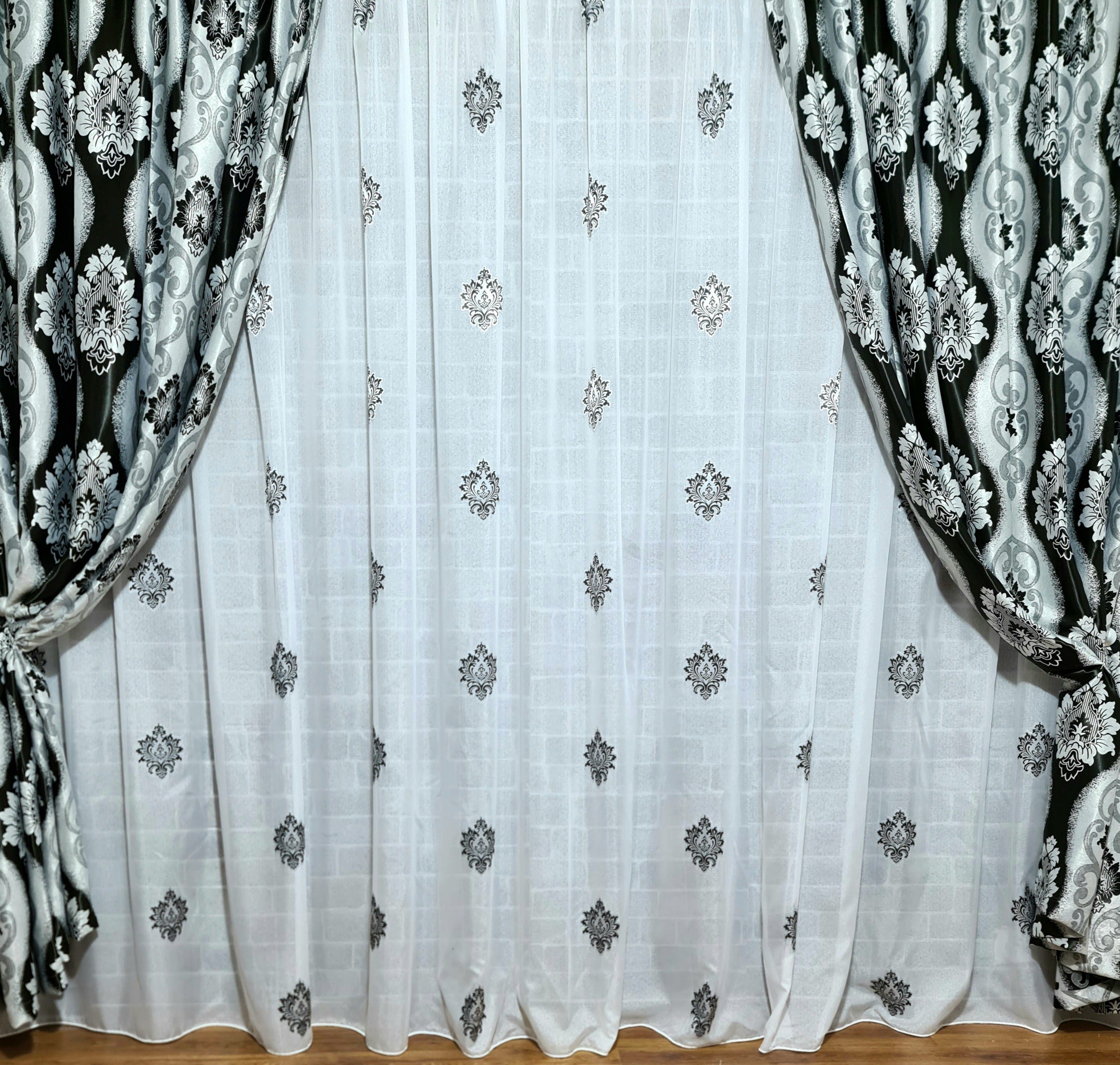 Draperie blackout cu imprimeu baroc impunător, în nuanțe de gri și negru – o alegere rafinată pentru decoruri clasice moderne, camere masculine sau spații cu accente nobile. Textura densă și modelul ornamental oferă profunzime și personalitate, în timp ce opacitatea de ~80% asigură confort și intimitate.