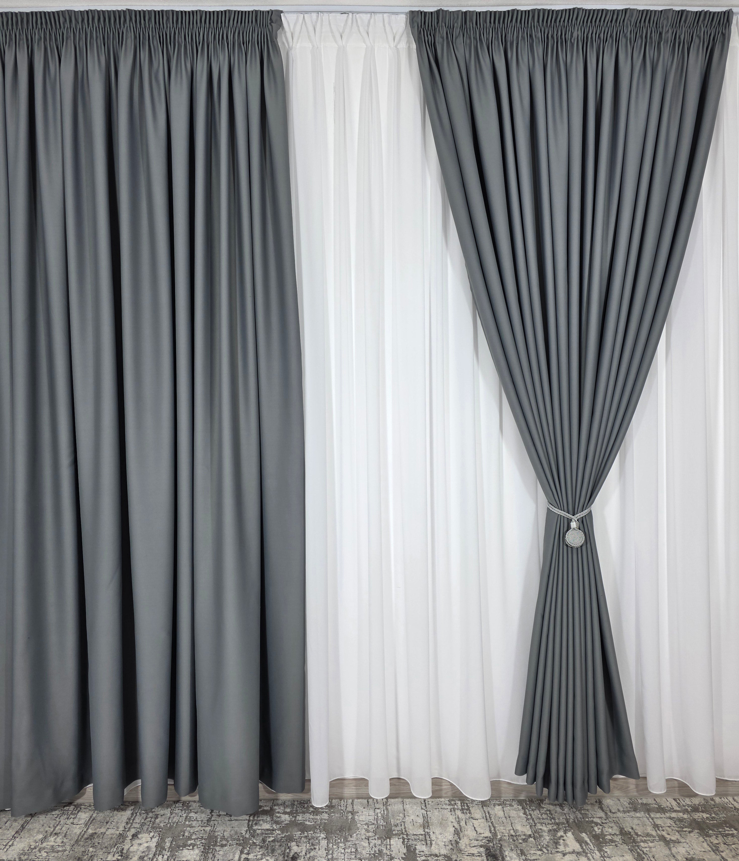 Draperie blackout într-o nuanță de gri mediu, perfectă pentru interioare minimaliste, moderne sau industriale. Oferă opacitate de până la 98%, ideală pentru controlul luminii și crearea unui spațiu confortabil și odihnitor, fără compromisuri estetice.
