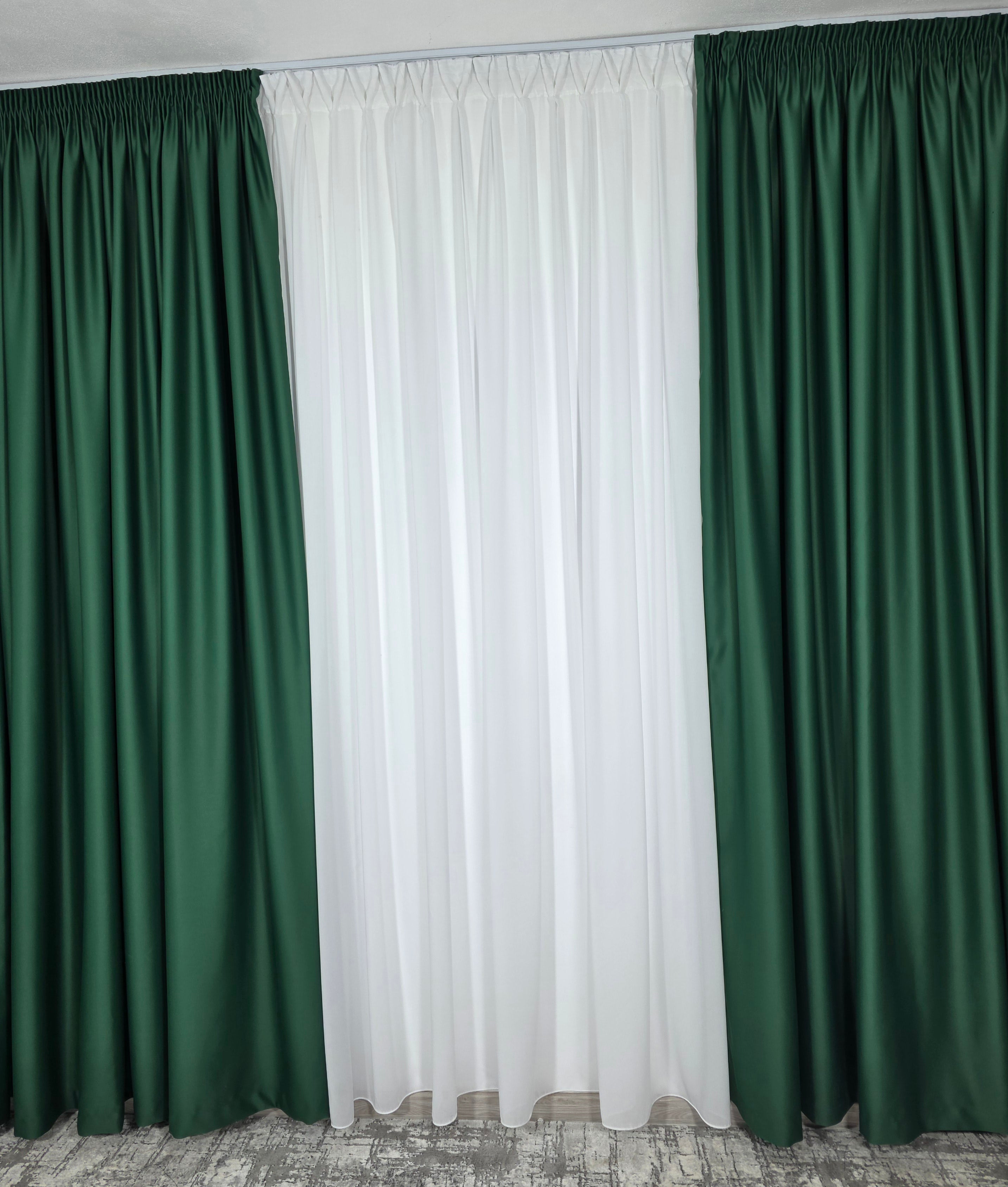 O draperie simplă și elegantă, din poliester dens, ideală pentru cei care își doresc un ambient plăcut, control parțial al luminii și o pată de culoare verde natural în încăpere.