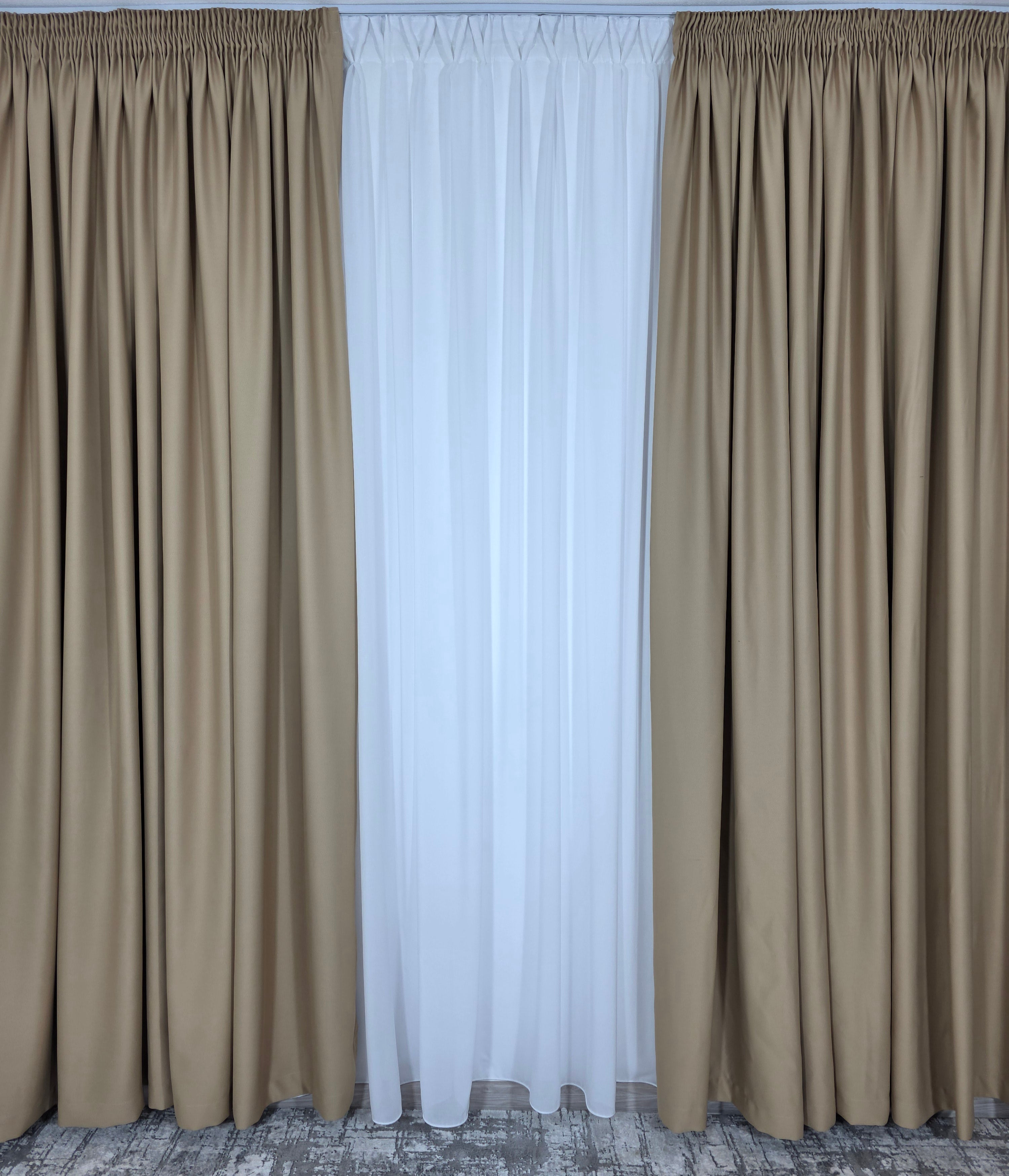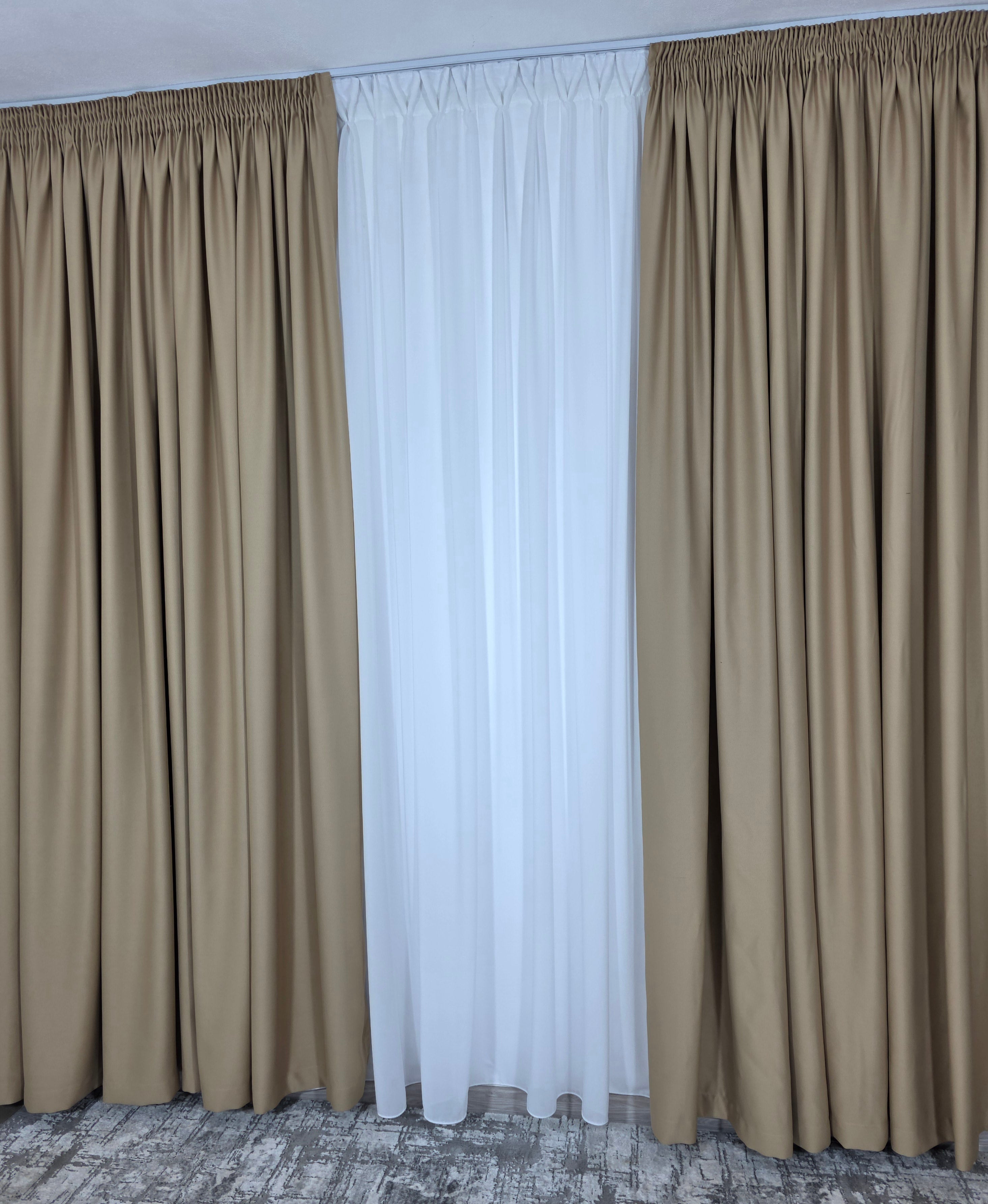 Draperie Simplă Cappuccino – Blackout 80 % pentru Eleganță Neutră și Control Eficient al Luminii