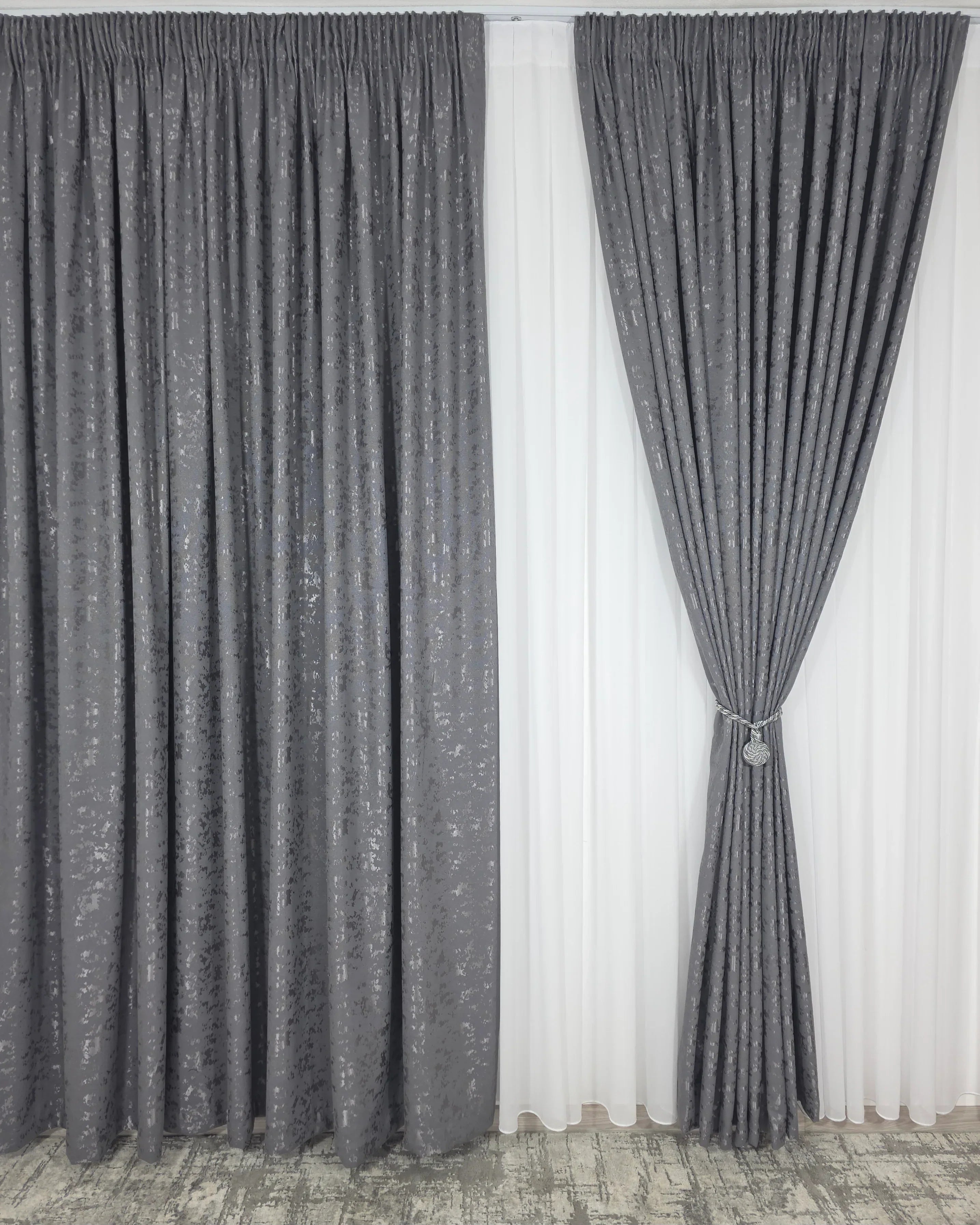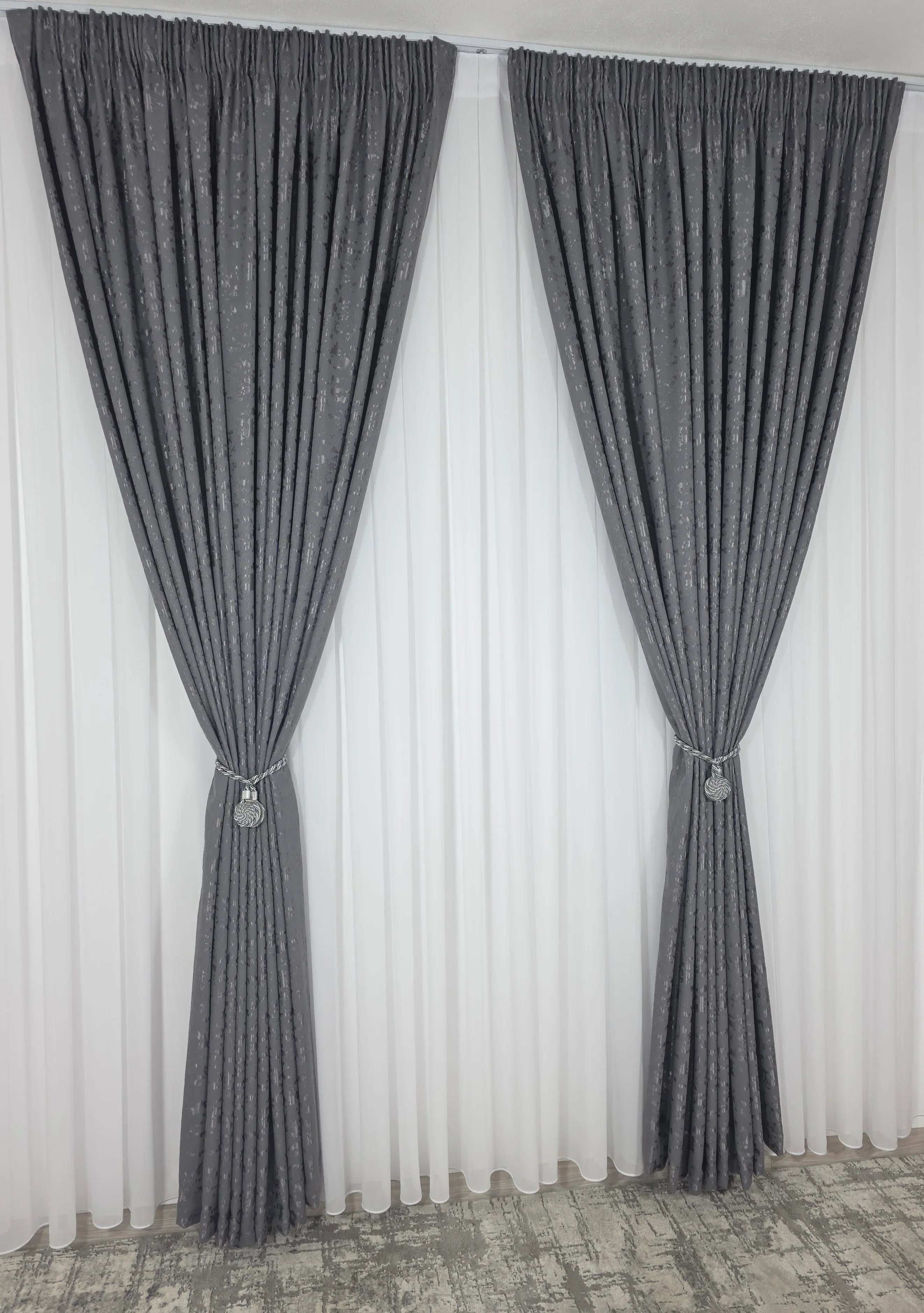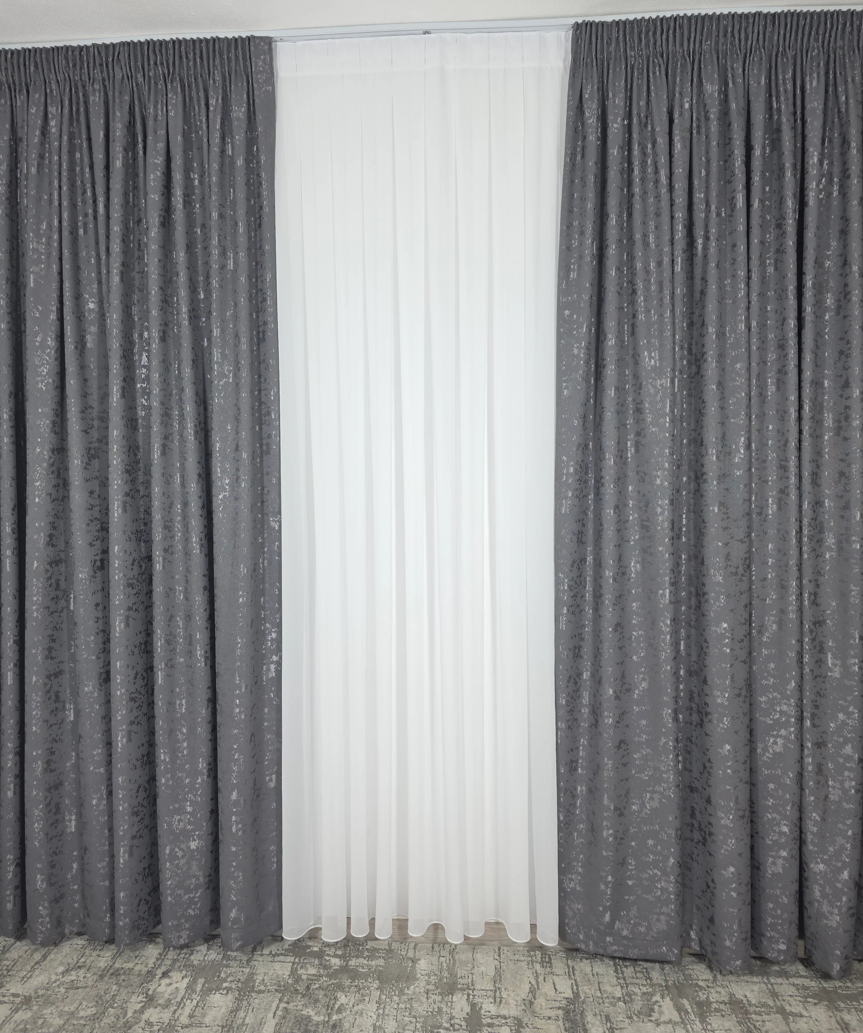 Adaugă o notă sofisticată oricărei încăperi cu draperia decorativă tip nisip gri închis, o alegere elegantă și versatilă pentru cei care își doresc un design interior modern și rafinat.