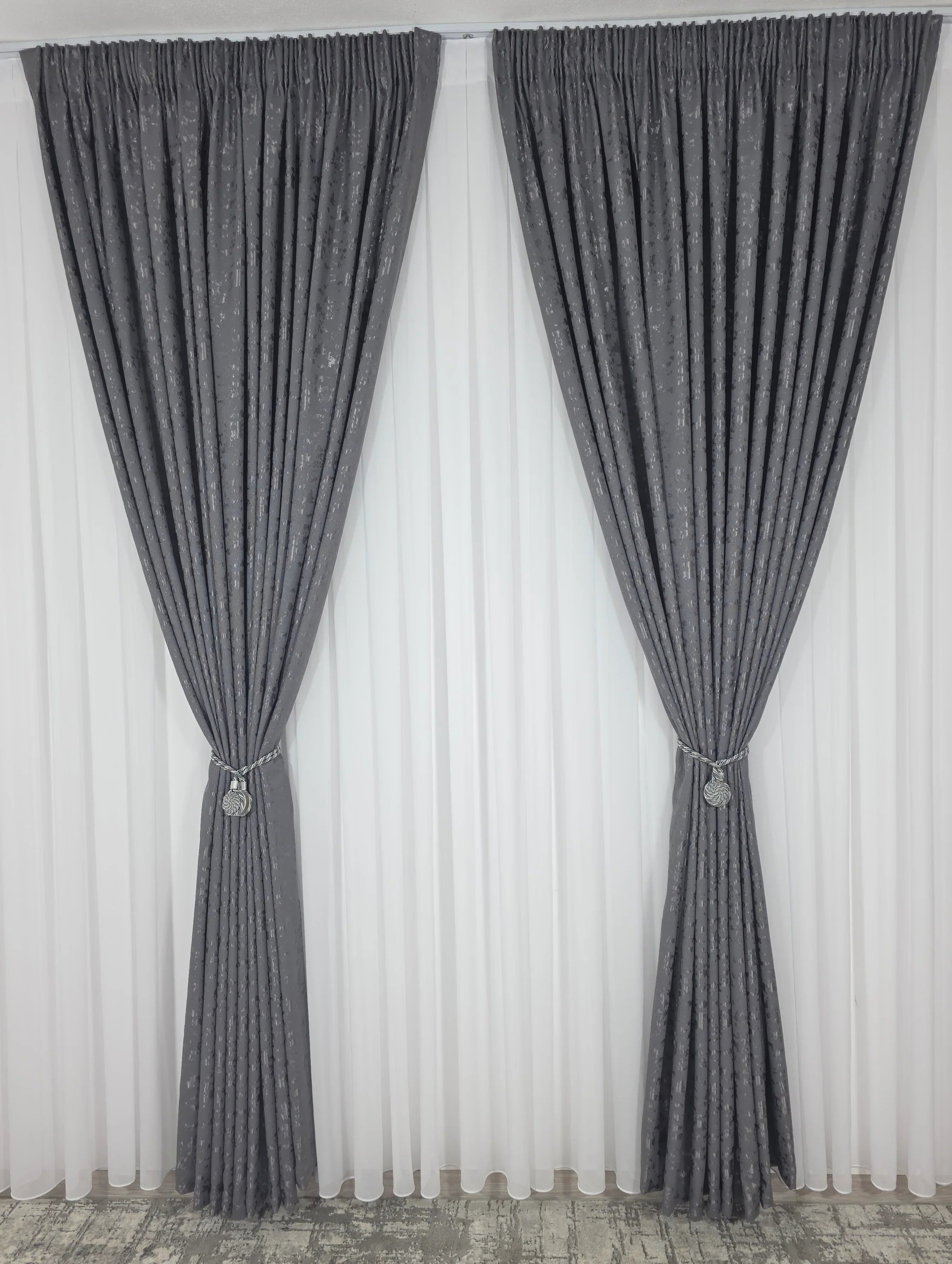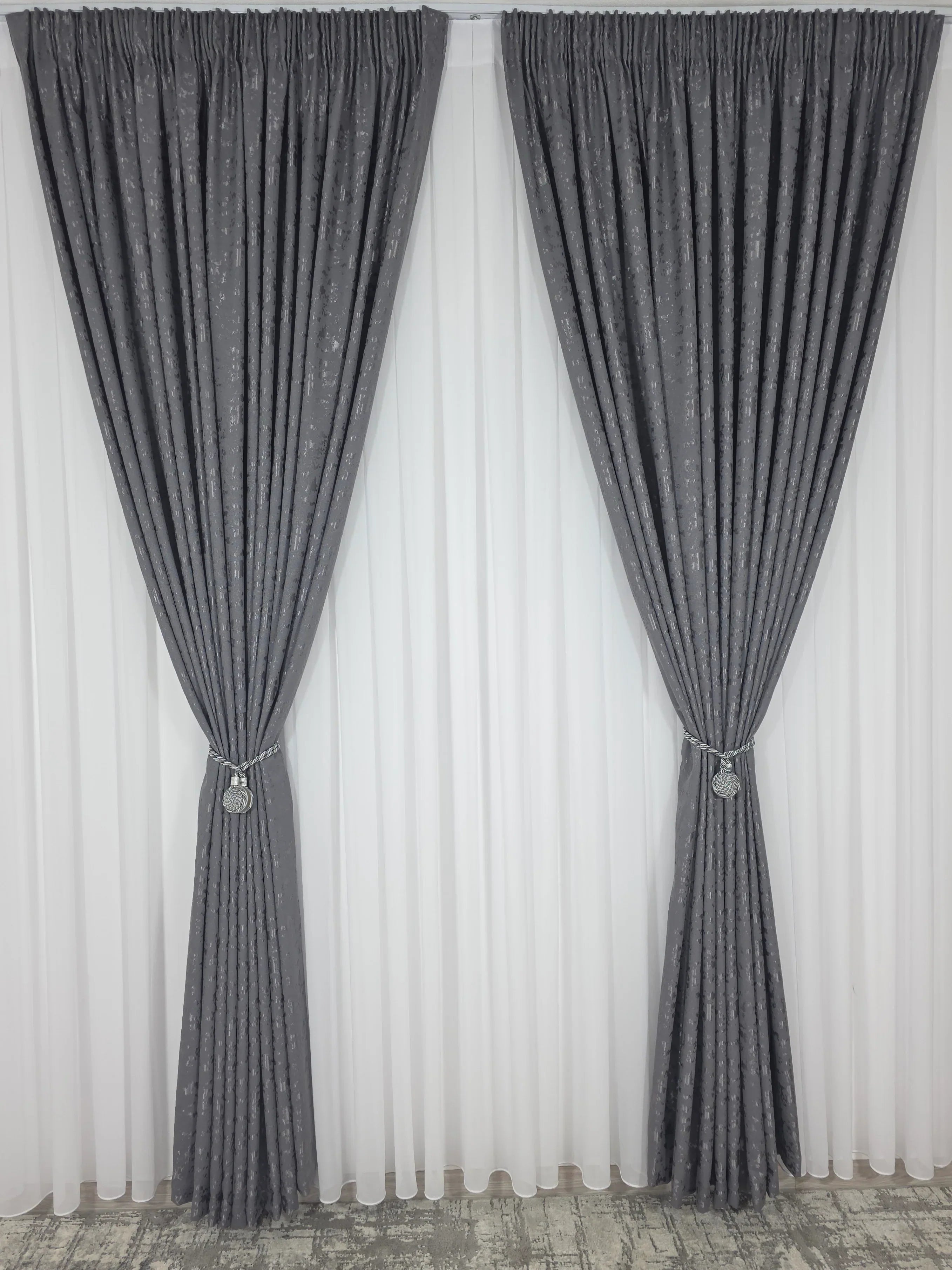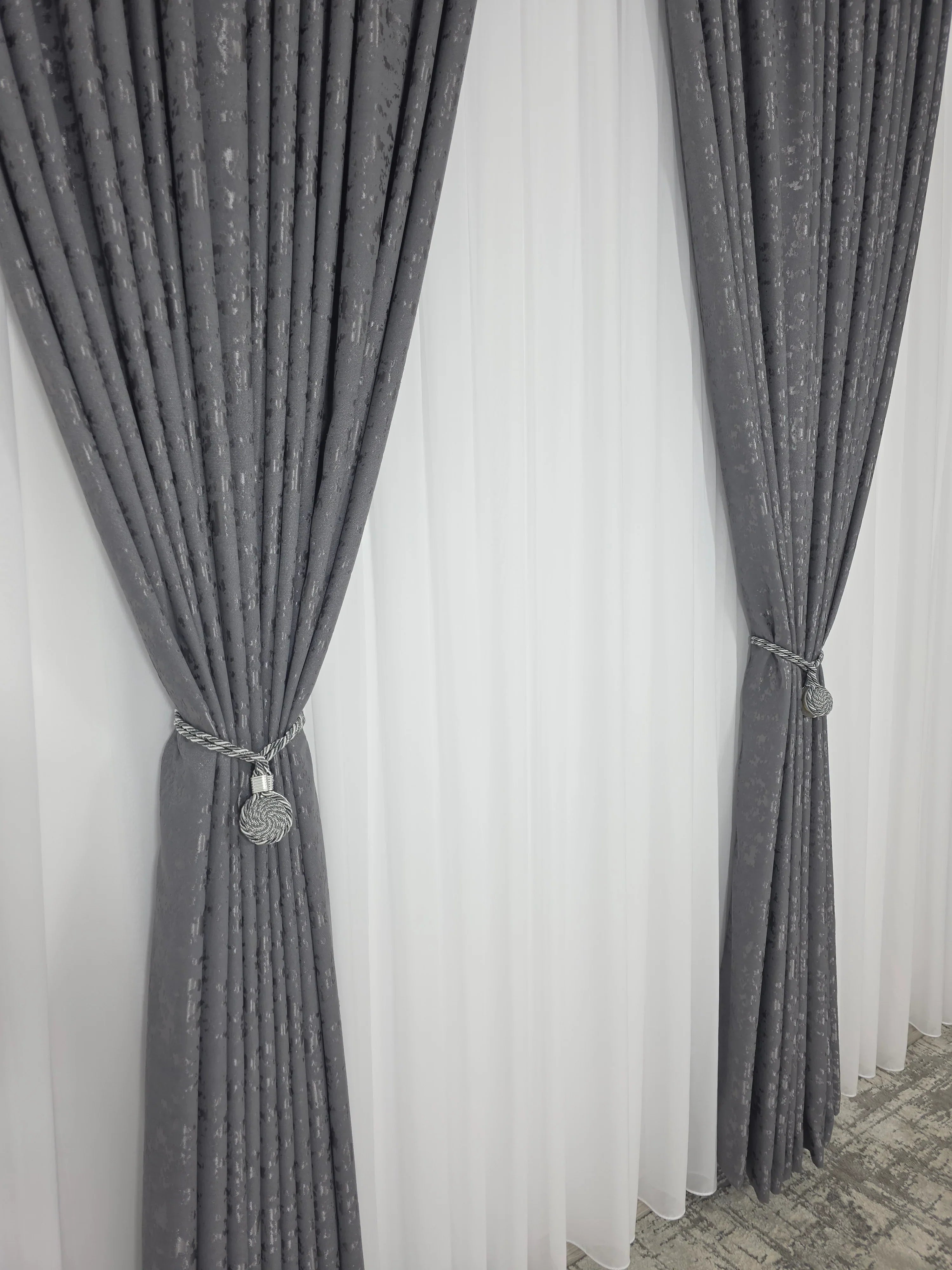 Adaugă o notă sofisticată oricărei încăperi cu draperia decorativă tip nisip gri închis, o alegere elegantă și versatilă pentru cei care își doresc un design interior modern și rafinat.