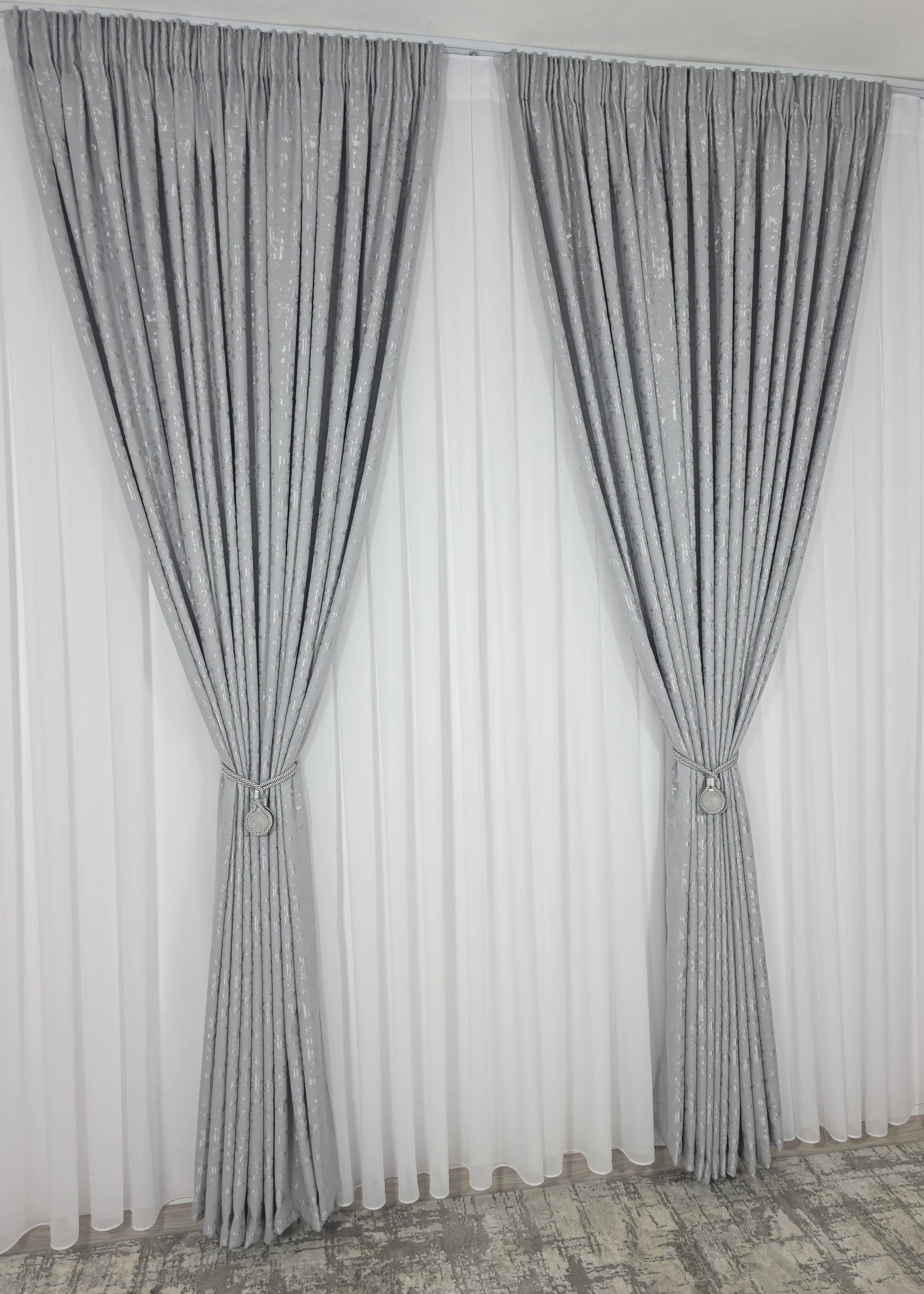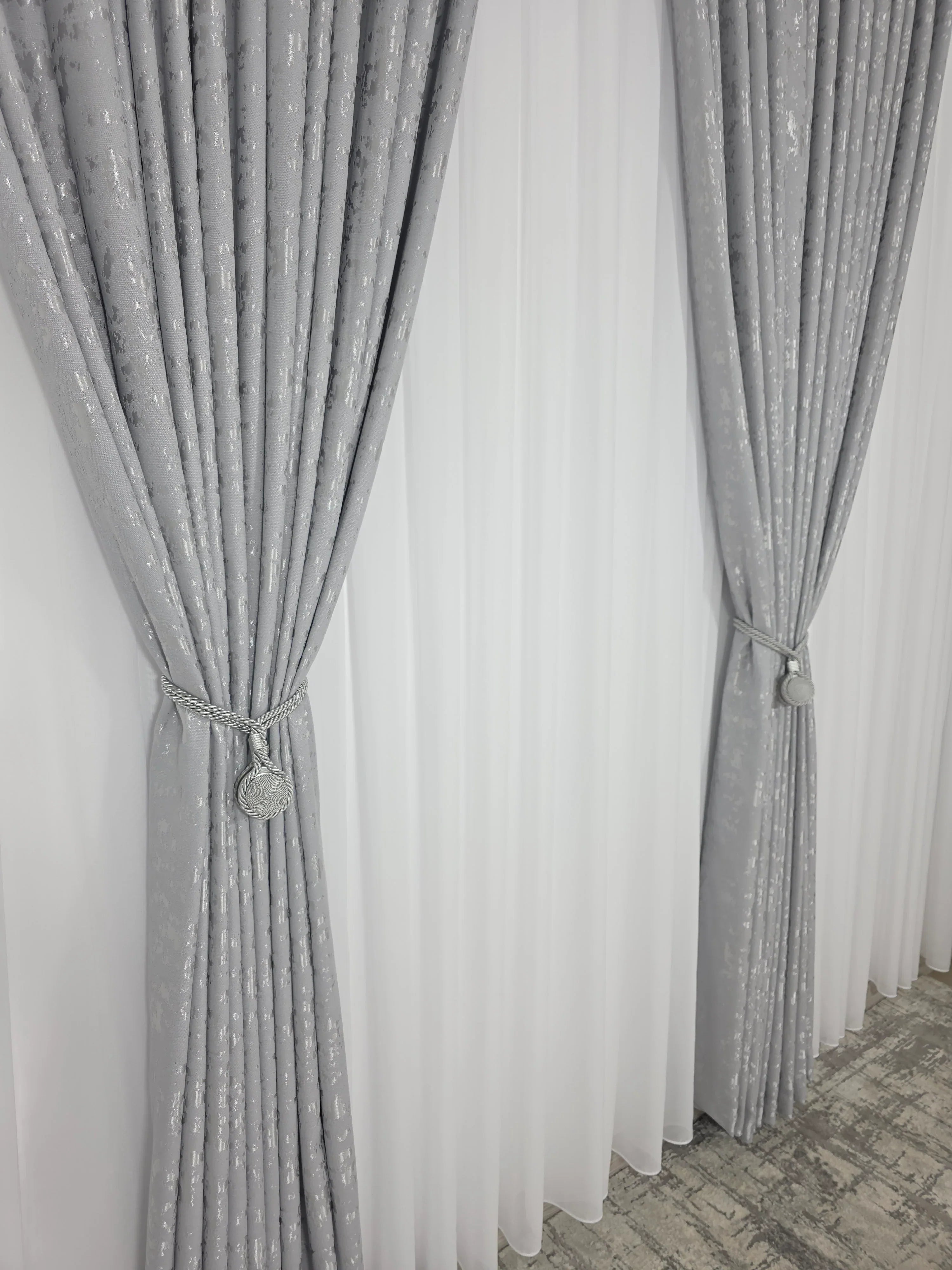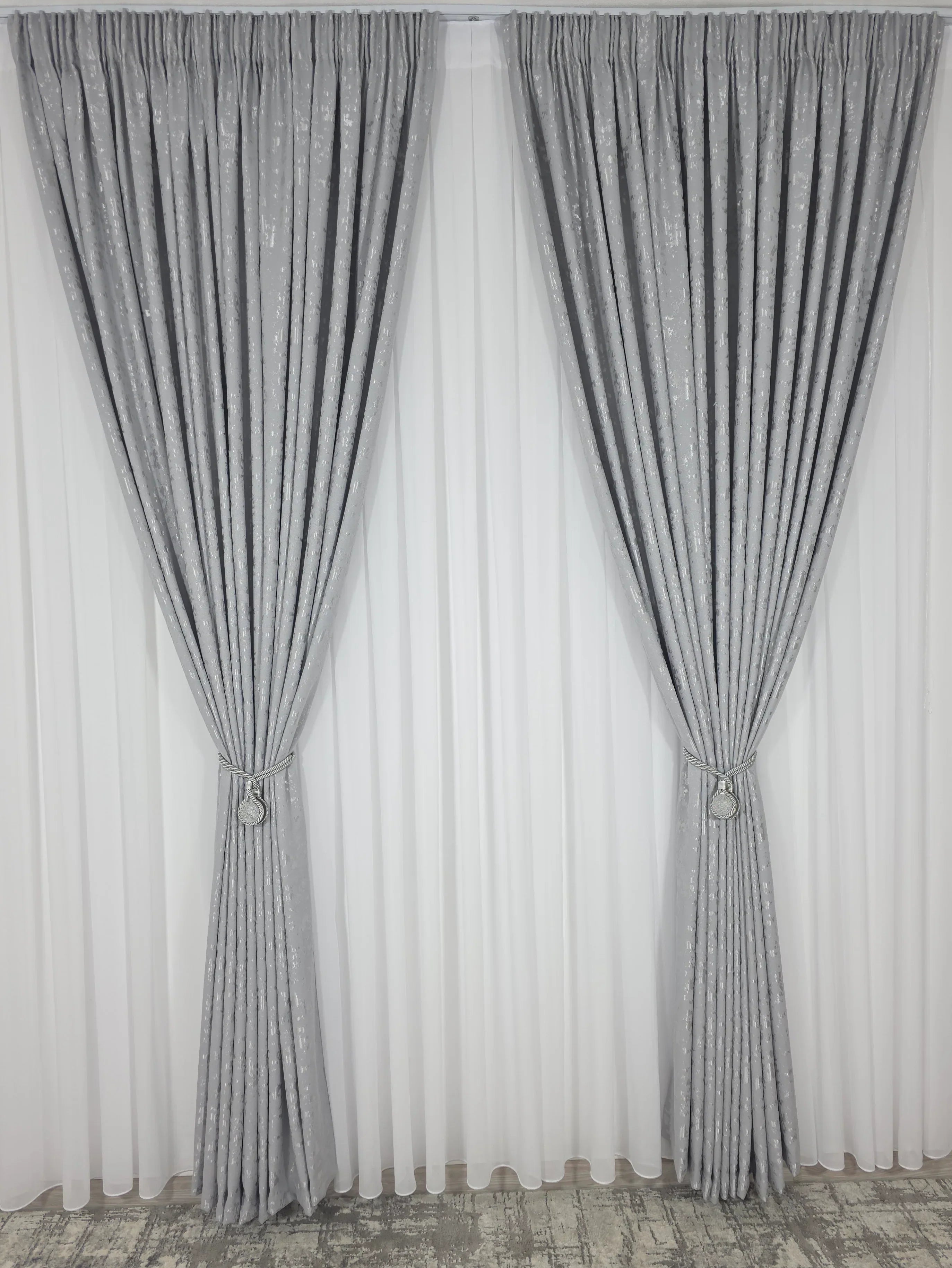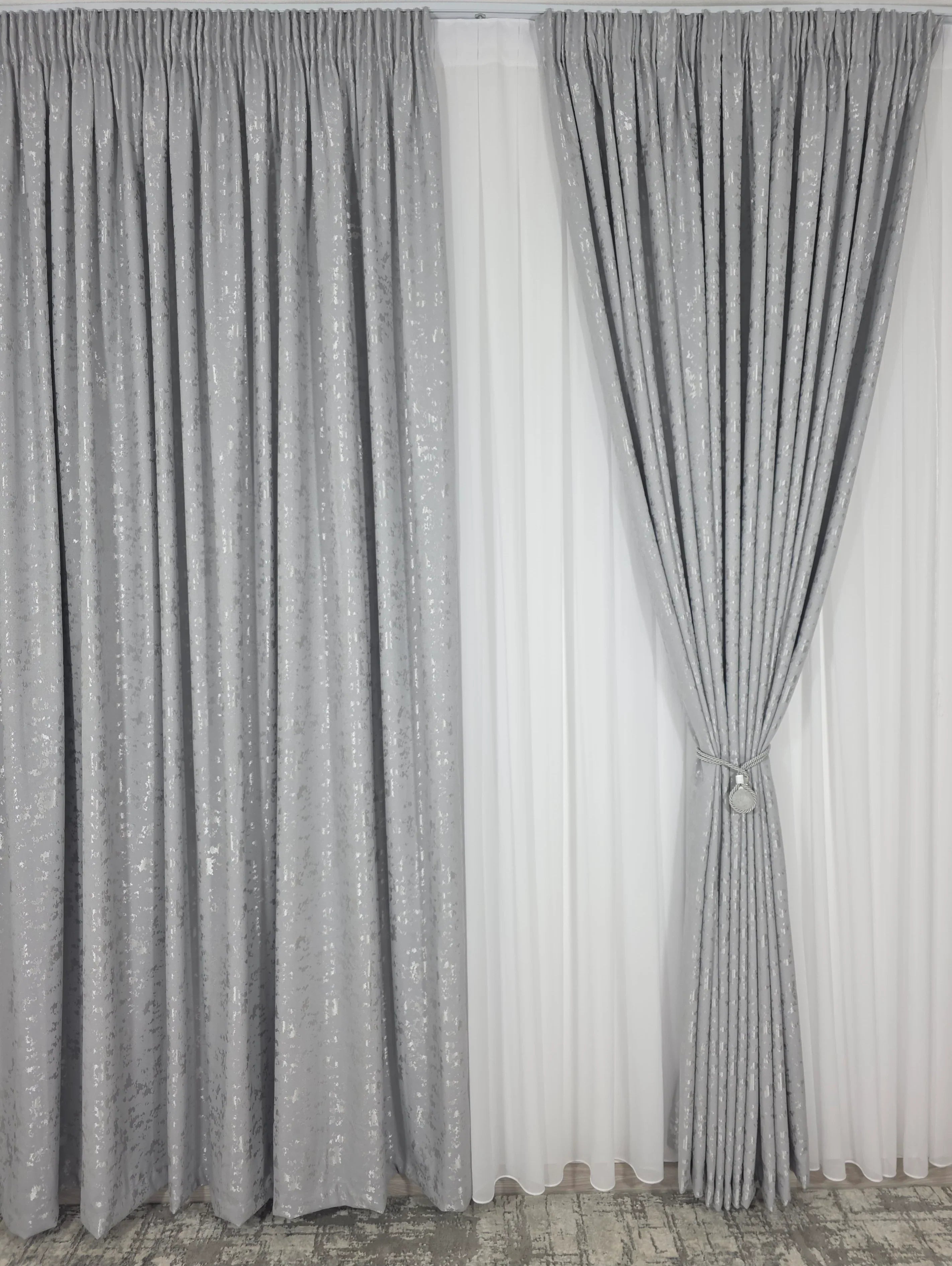 Această draperie decorativă tip nisip gri deschis este alegerea perfectă pentru cei care doresc să aducă un plus de rafinament și eleganță în decorul lor interior. Designul modern și textura unică creează o atmosferă relaxantă și sofisticată, fiind ideală pentru livinguri, dormitoare sau birouri.