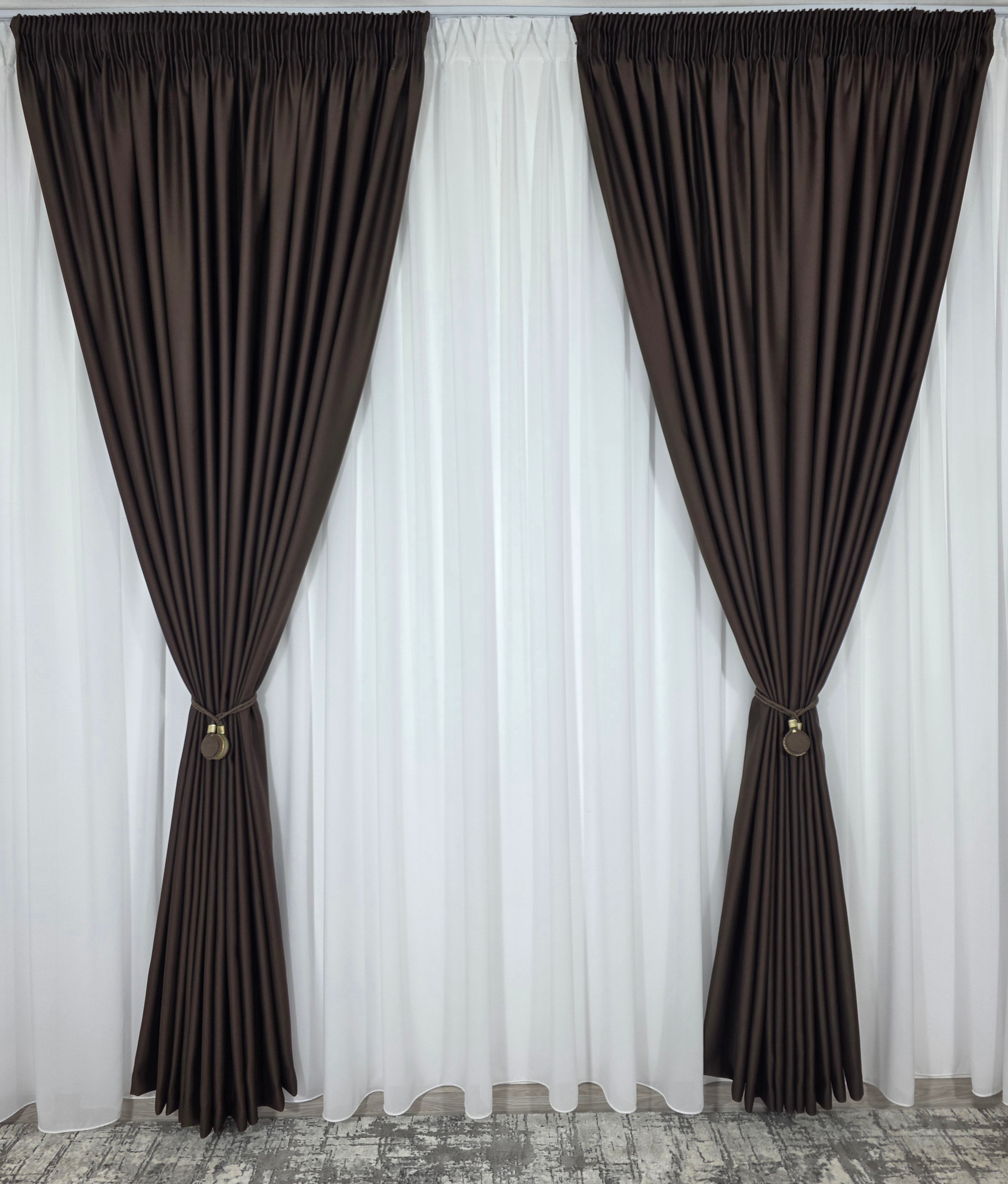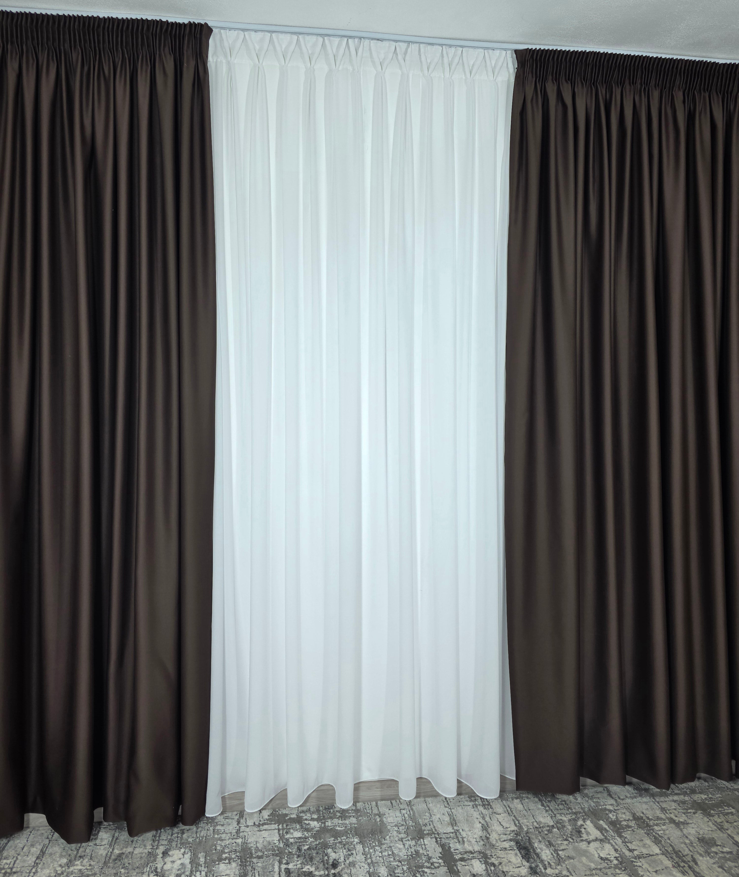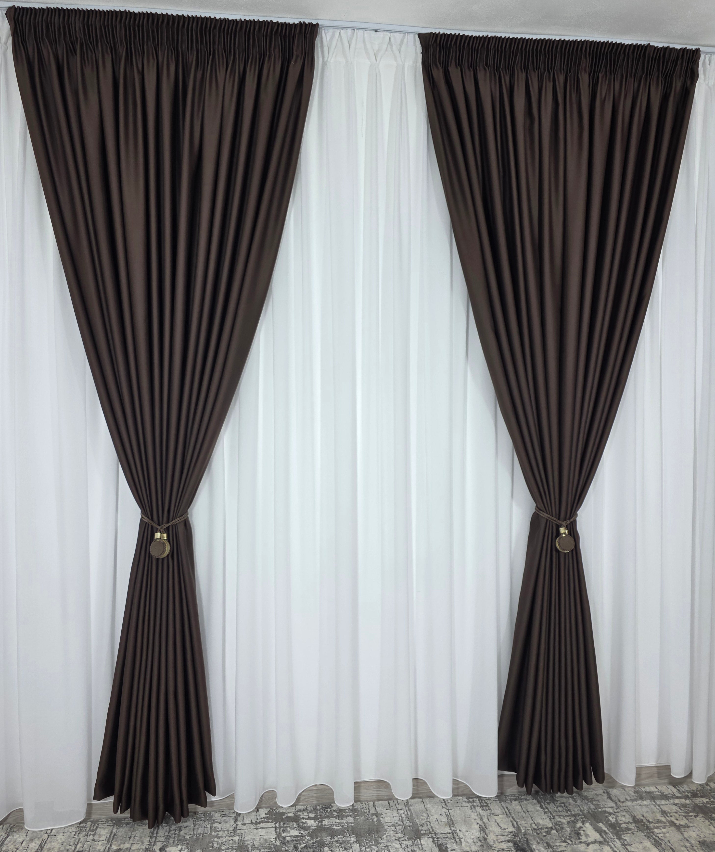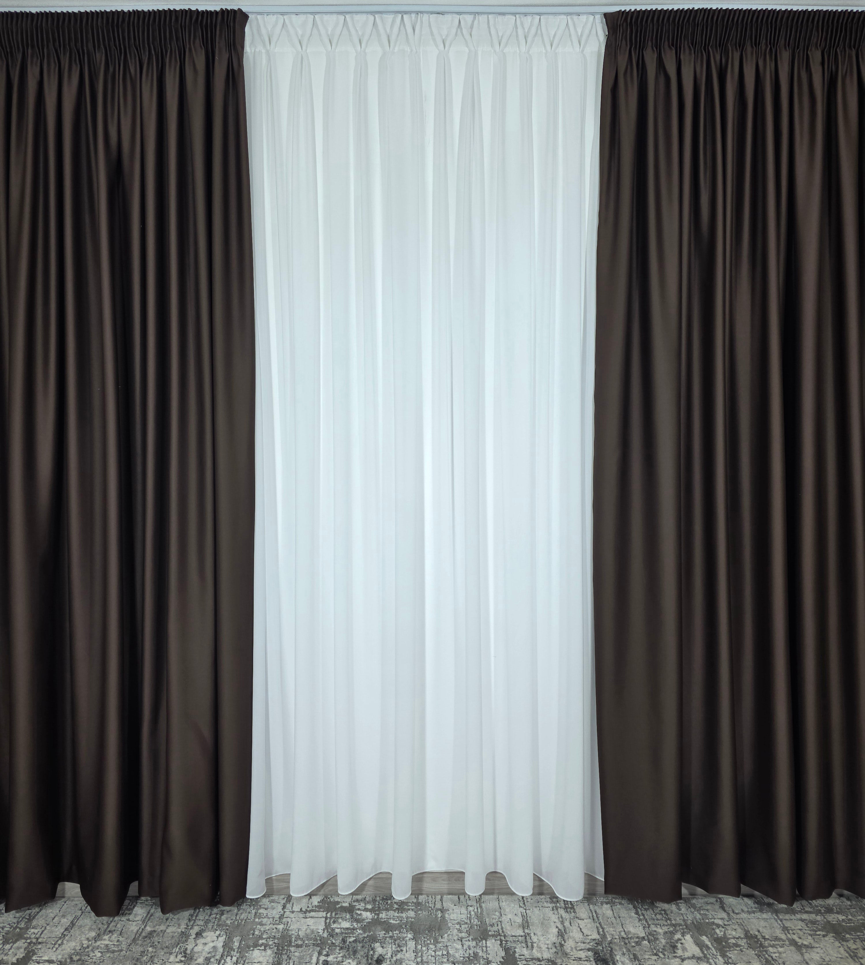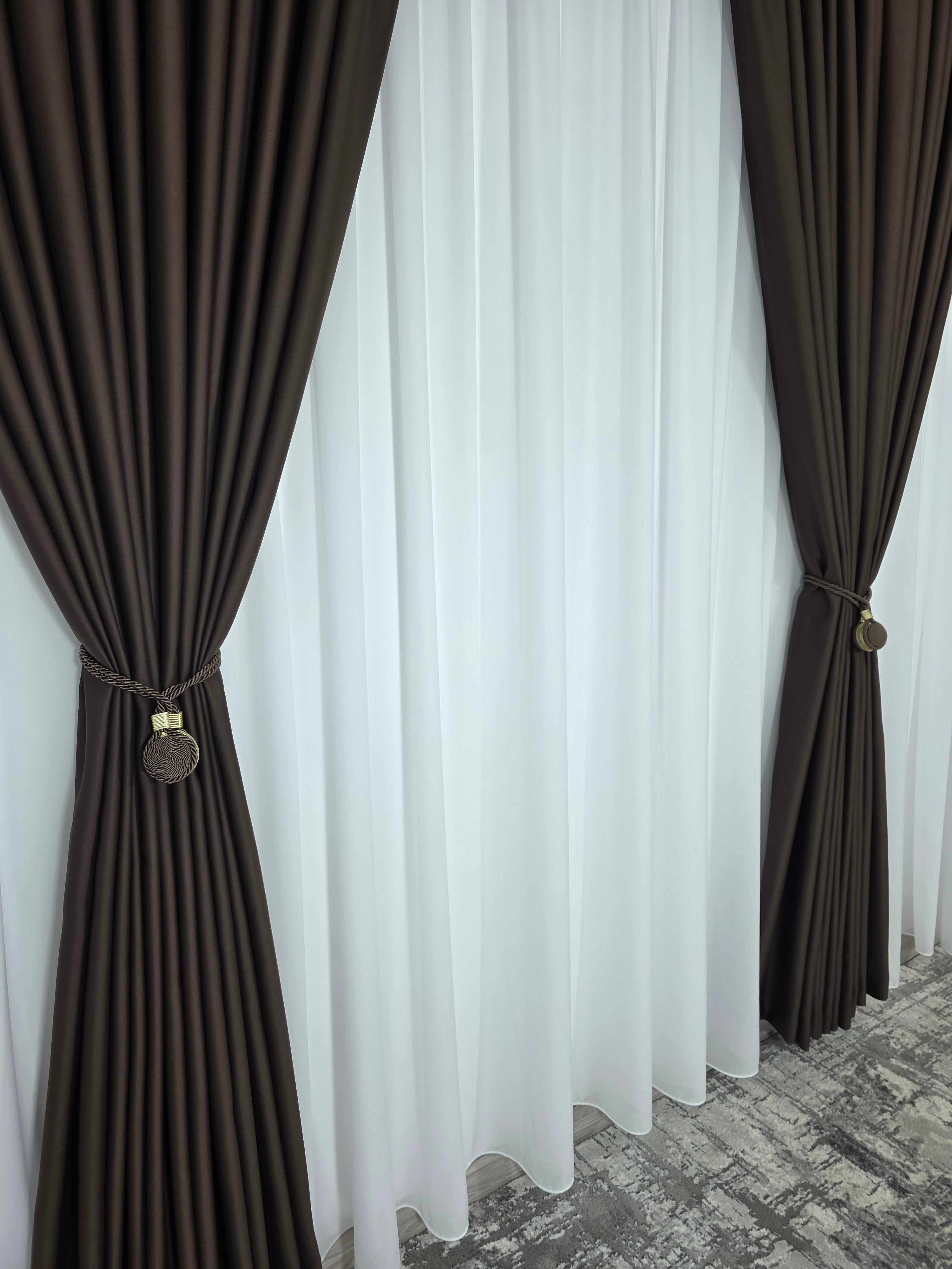 Draperie practică și rafinată, realizată din material blackout cu opacitate de aproximativ 98%, într-o nuanță maro intens. Ideală pentru spații unde controlul luminii și intimitatea sunt esențiale, fără a renunța la un look cald și sofisticat.