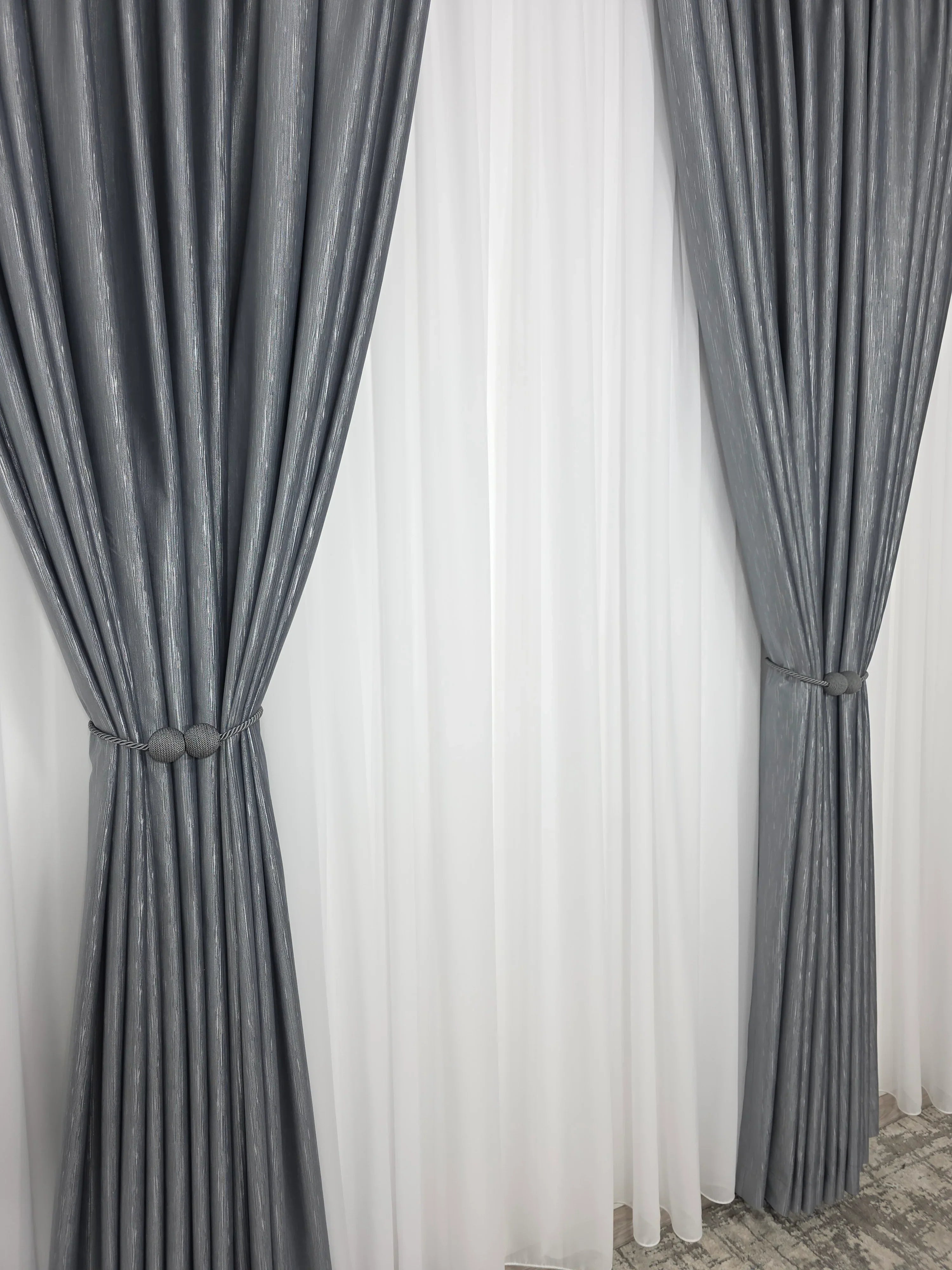 Prin nuanța neutră de gri și strălucirea discretă a inserțiilor argintii, această draperie transformă orice încăpere într-un spațiu sofisticat, modern și primitor. ✨