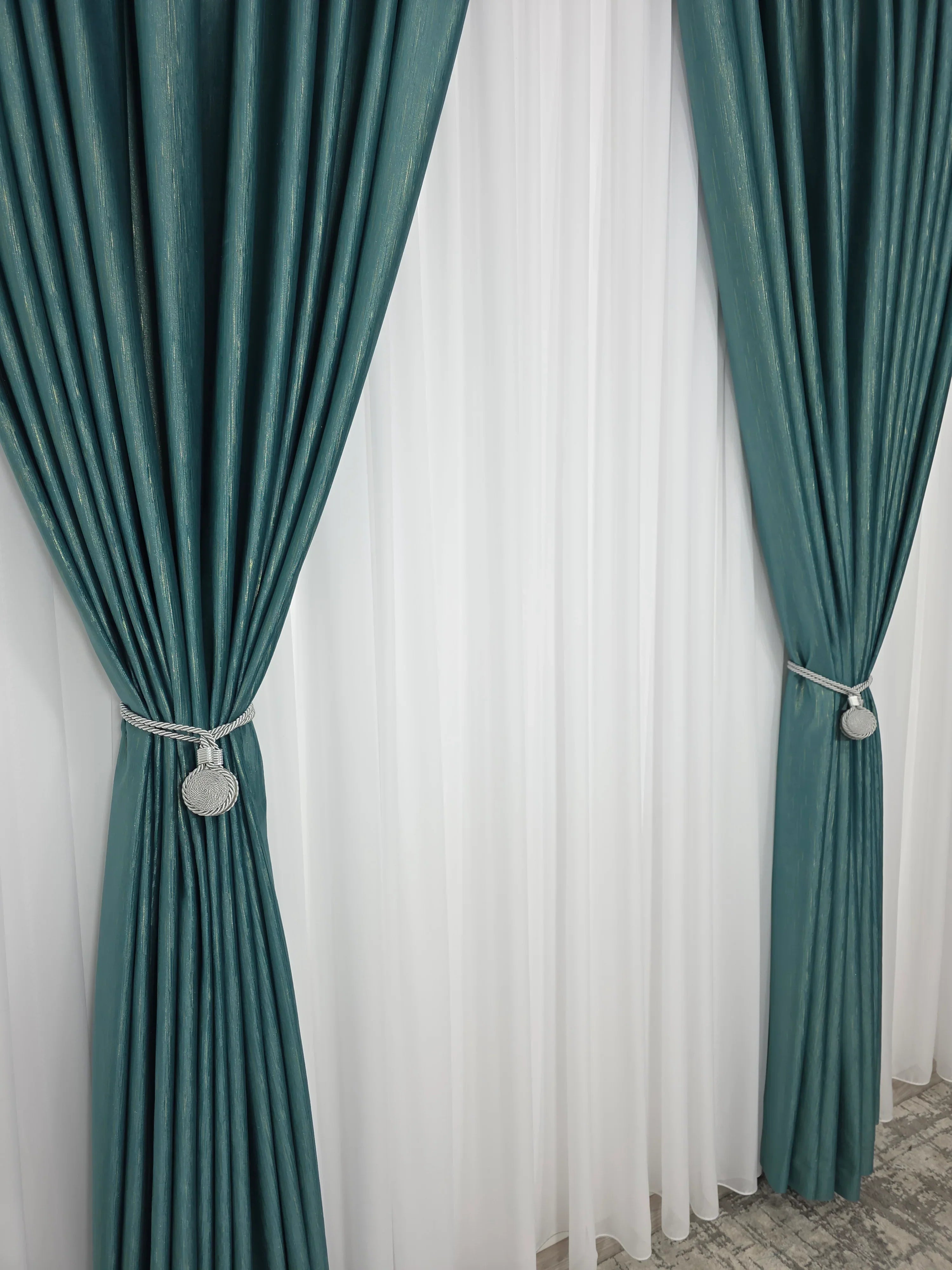 Prin combinația dintre intensitatea verde turcoaz și strălucirea aurie subtilă, această draperie devine un element decorativ central, aducând rafinament și modernitate spațiului tău. ✨