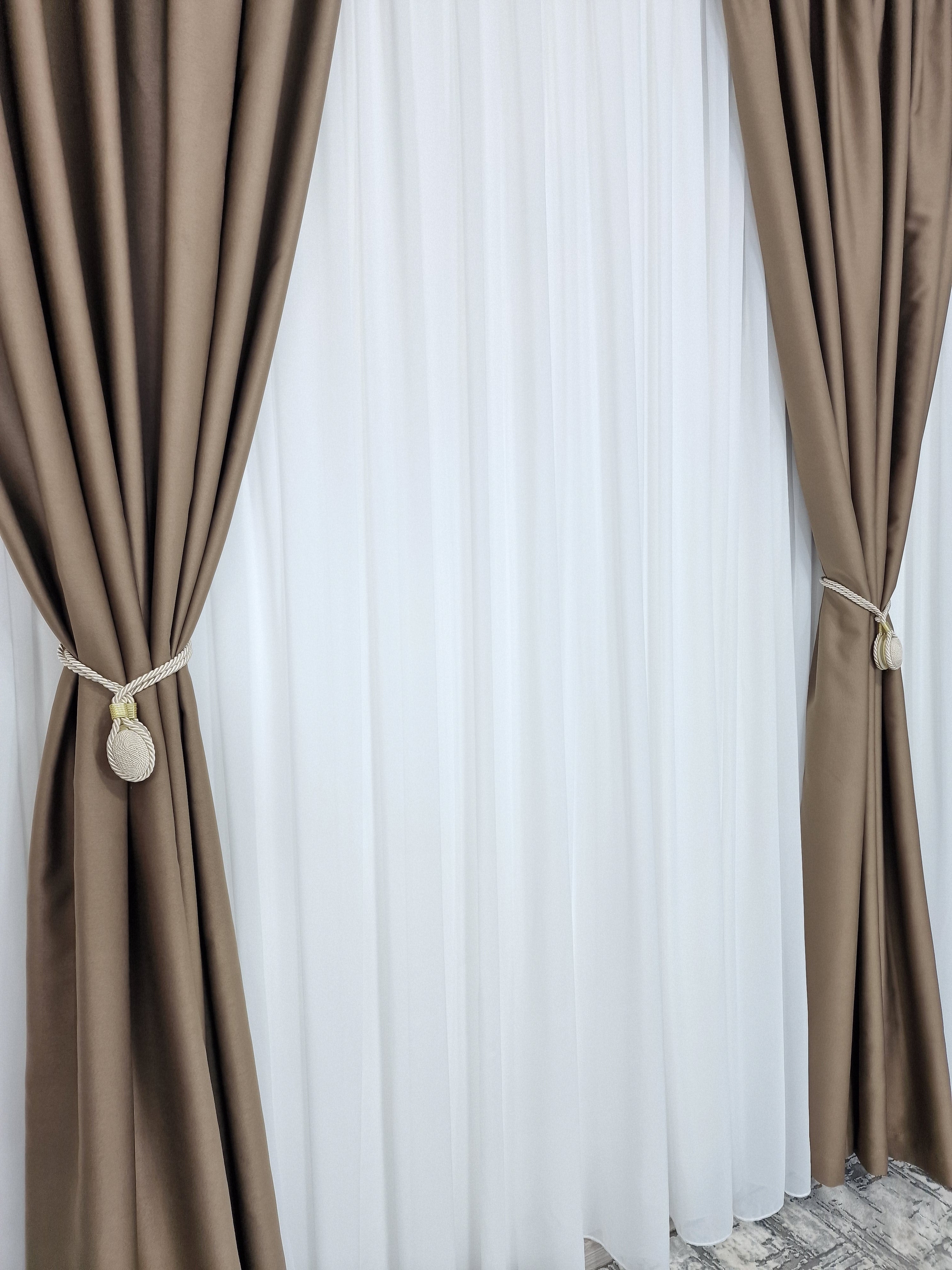 Ambianță Primitoare: Culoarea cafea cu lapte creează o atmosferă caldă și primitoare în orice încăpere. Această draperie adaugă o notă de confort și rafinament.