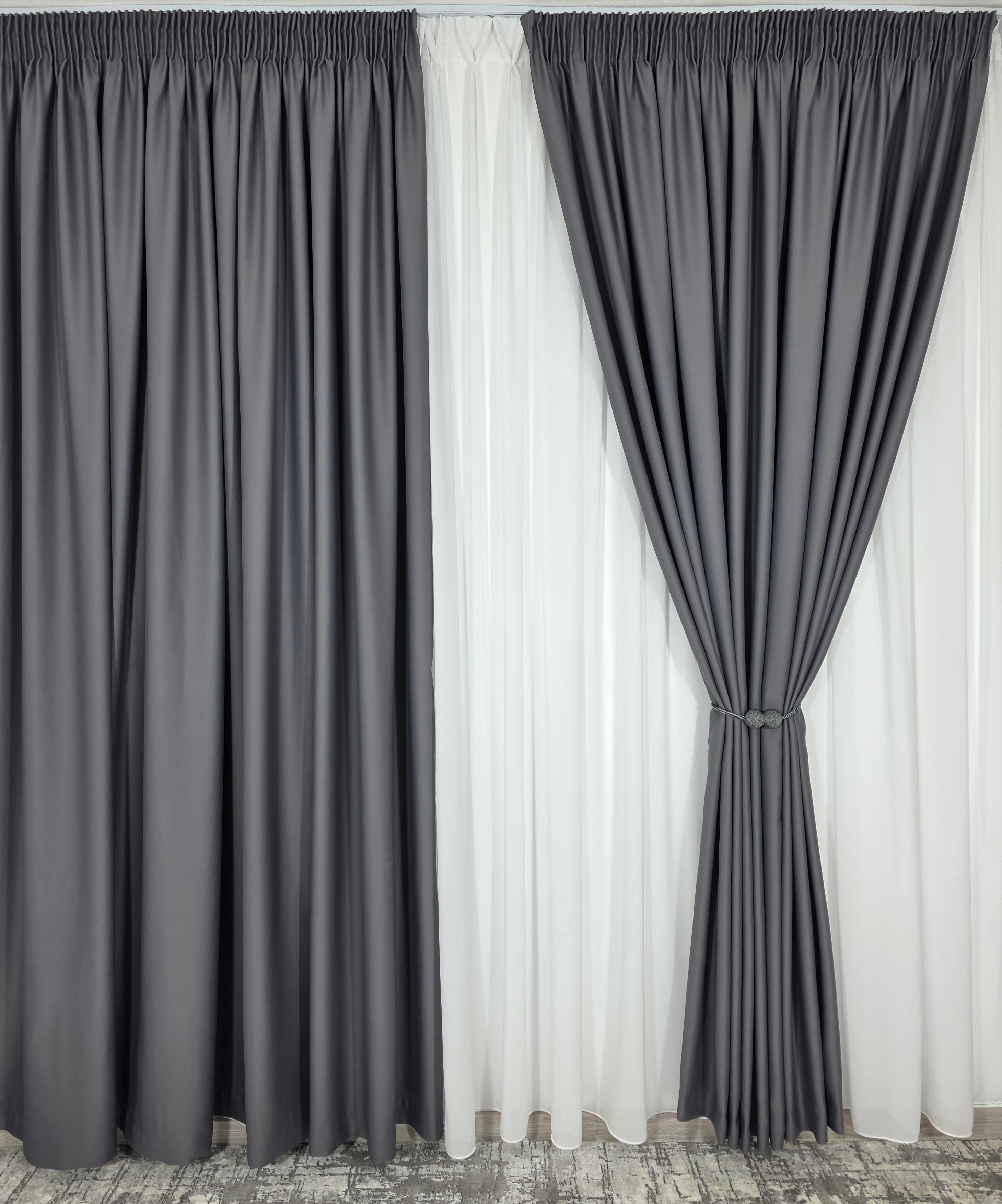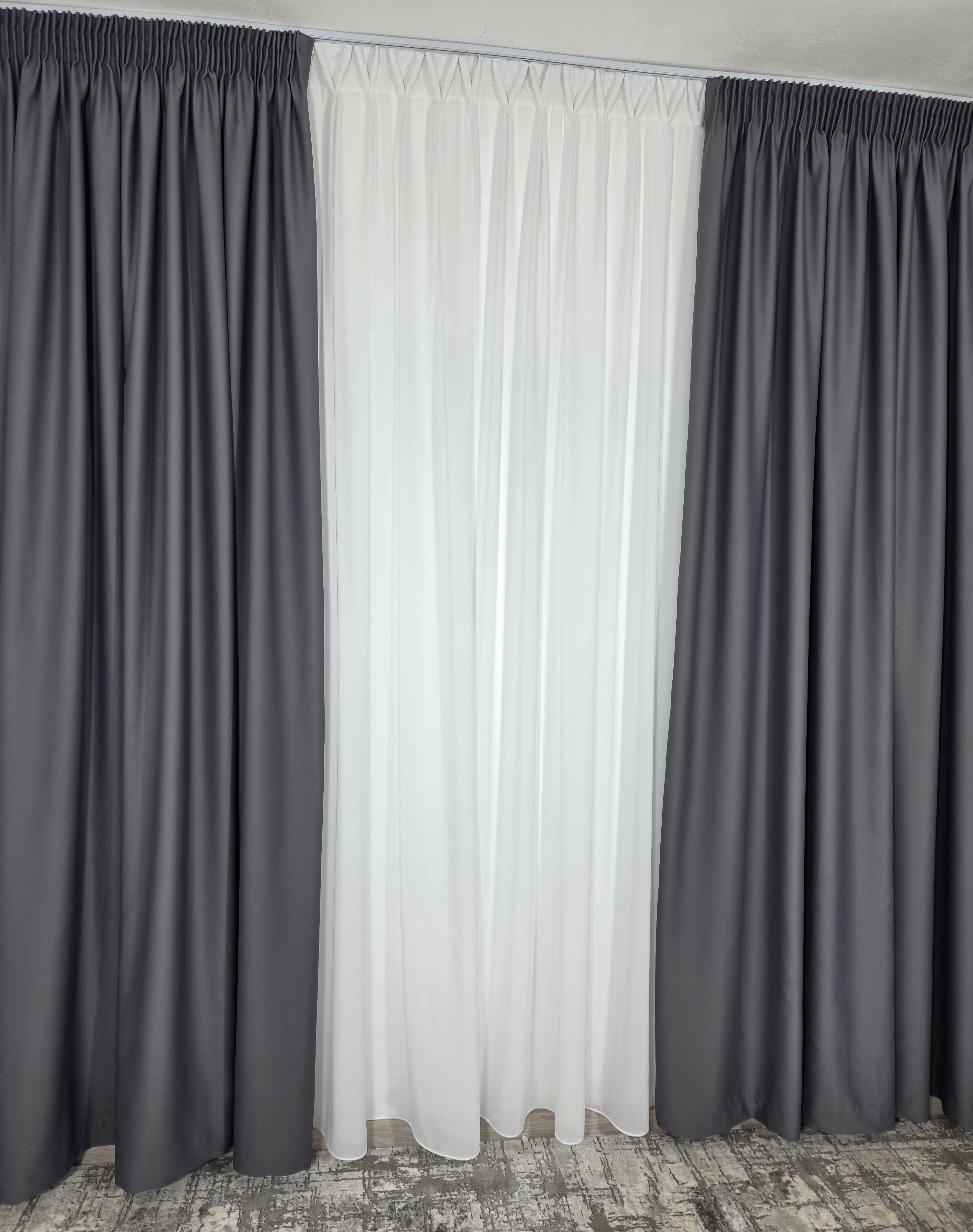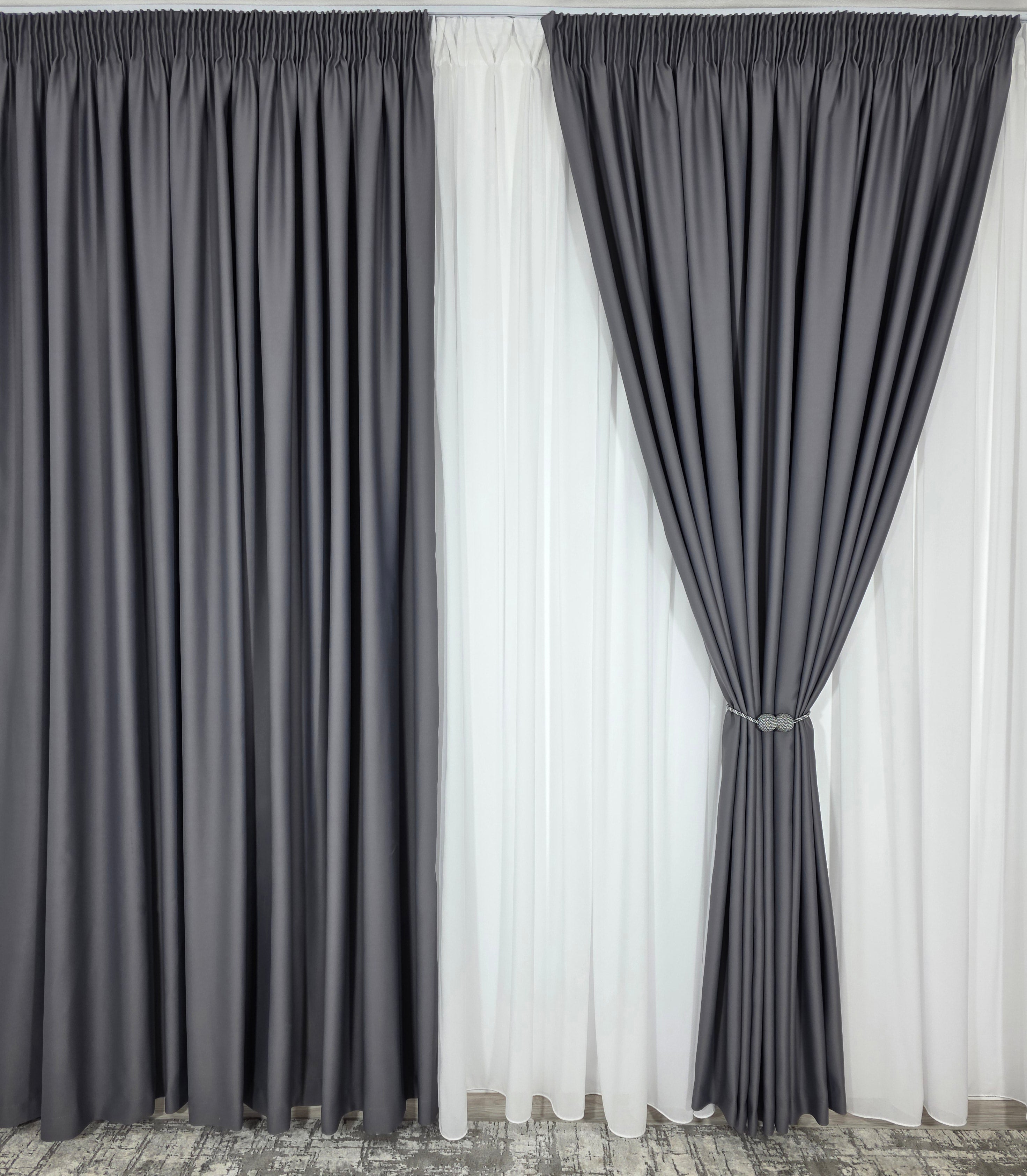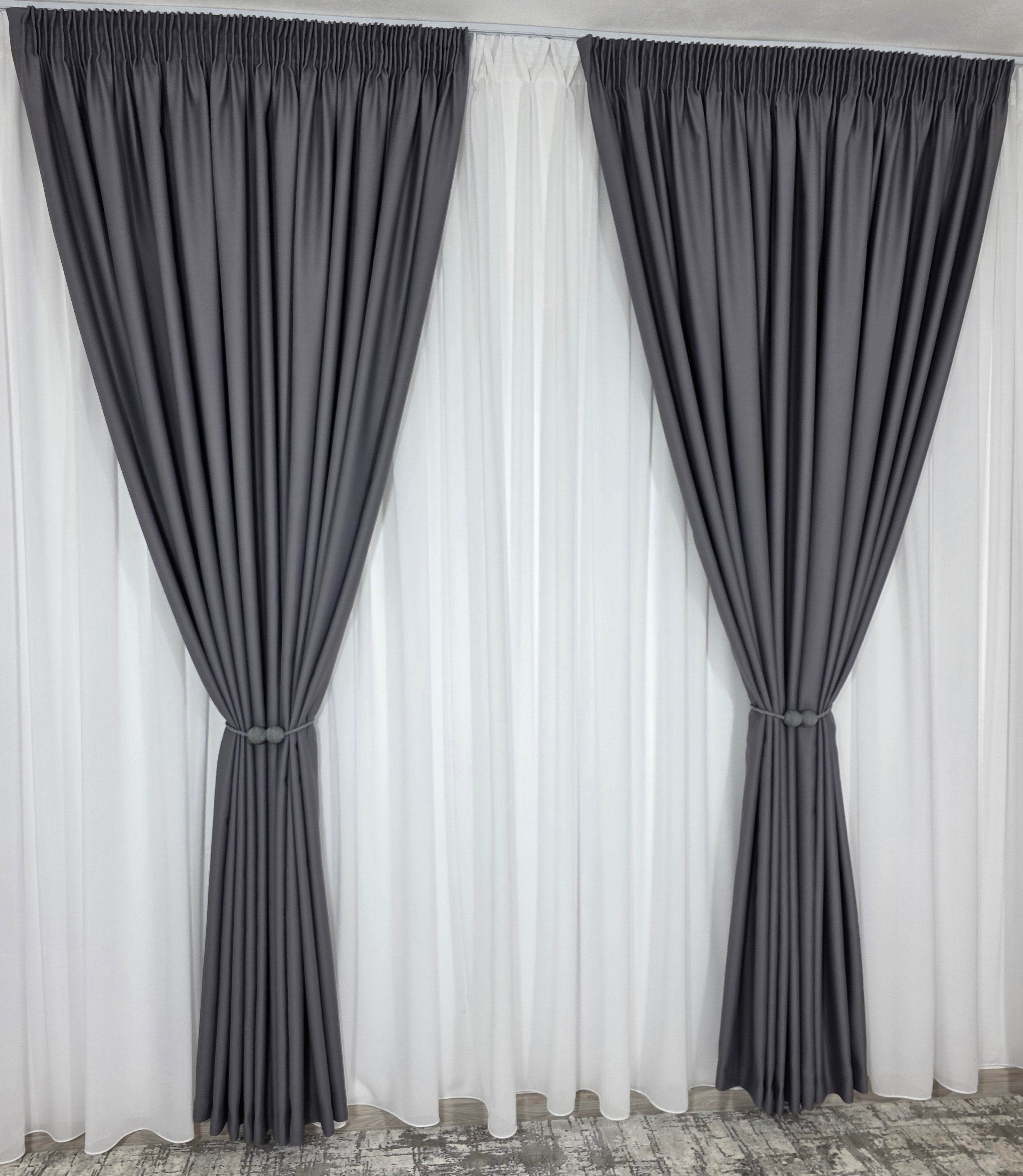 Negrul: Draperiile gri se asorteaza foarte bine cu negru, creand un contrast puternic si un aspect elegant.