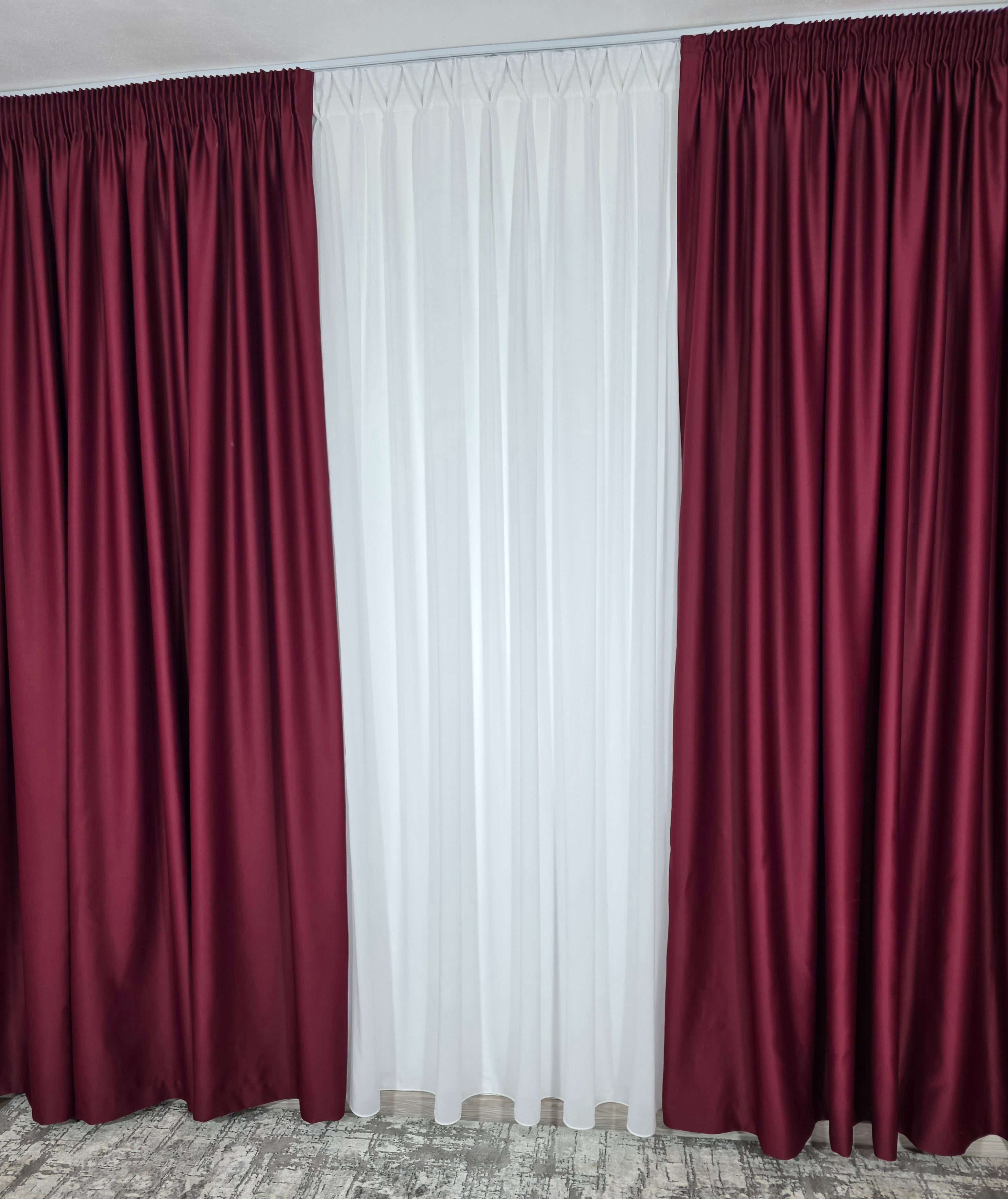 Transformă-ți camera într-un sanctuar întunecat și privat cu ajutorul acestei draperii speciale! O draperie unică, de un bordo închis, care blochează complet lumina, creând o atmosferă de intimitate și relaxare. Indiferent dacă este zi sau noapte, această draperie te protejează de razele solare și lumina puternică, asigurând un somn liniștit și odihnitor.