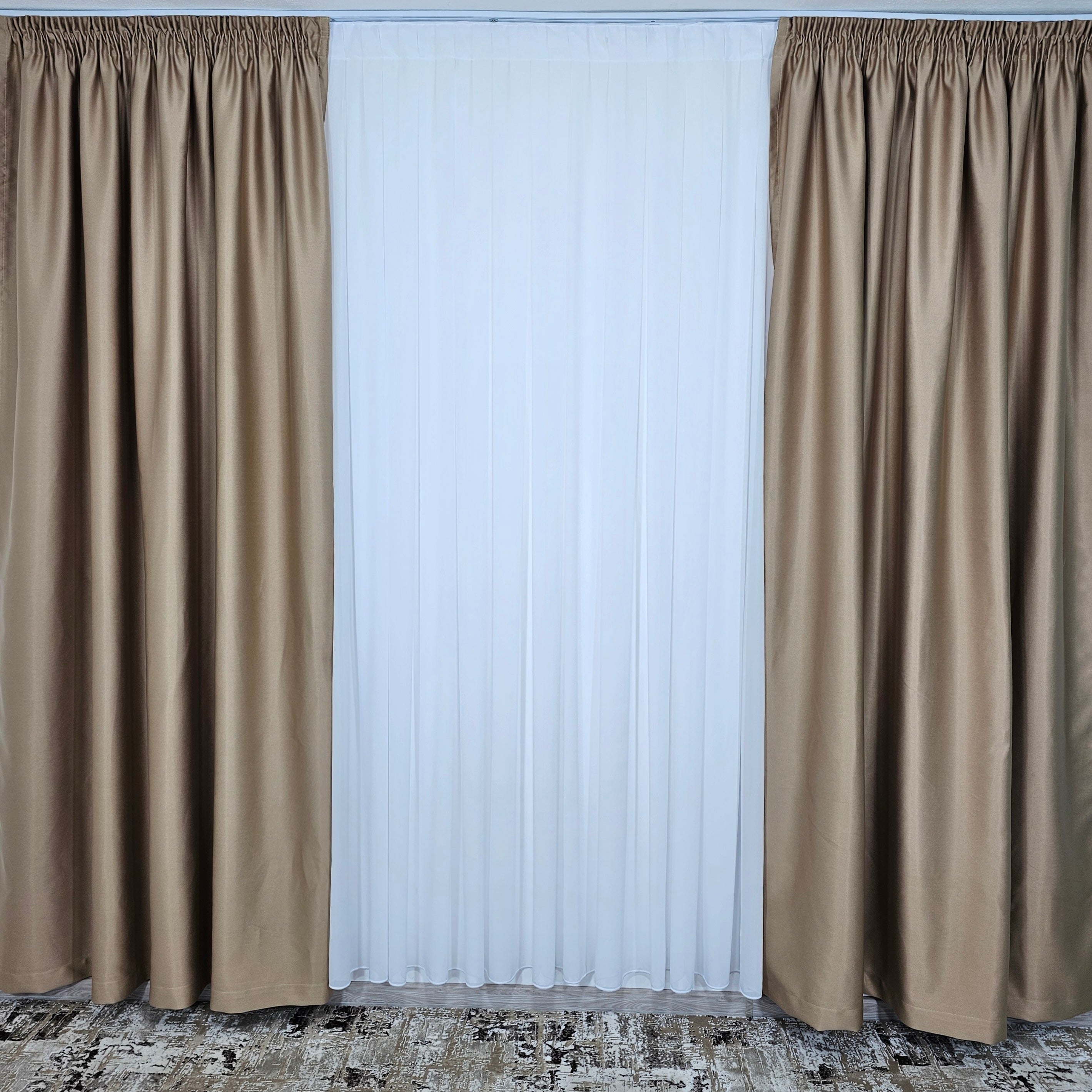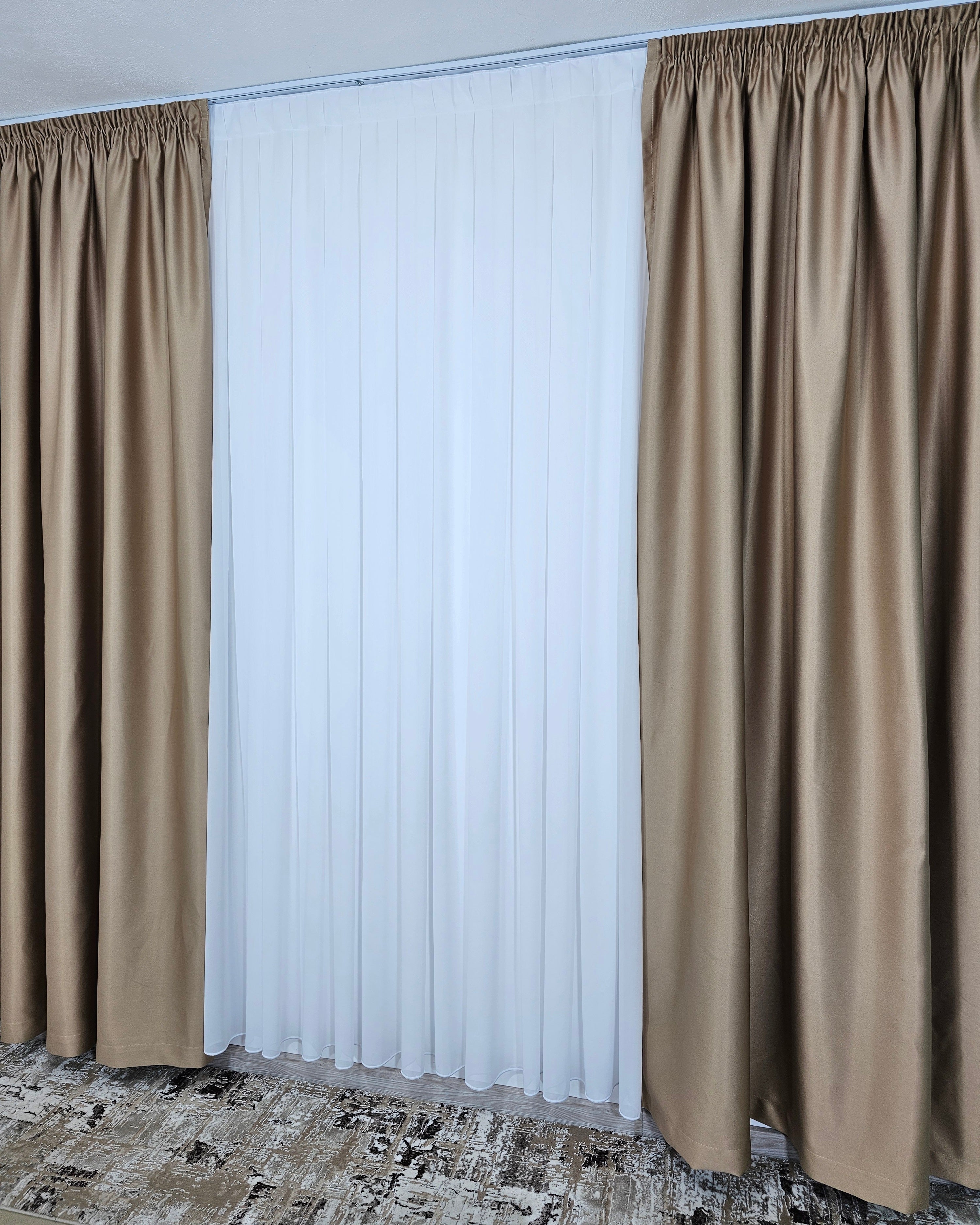 O draperie ce combină practicitatea blackout-ului cu eleganța tonului crem închis, transformând orice cameră într-un spațiu sofisticat și confortabil.