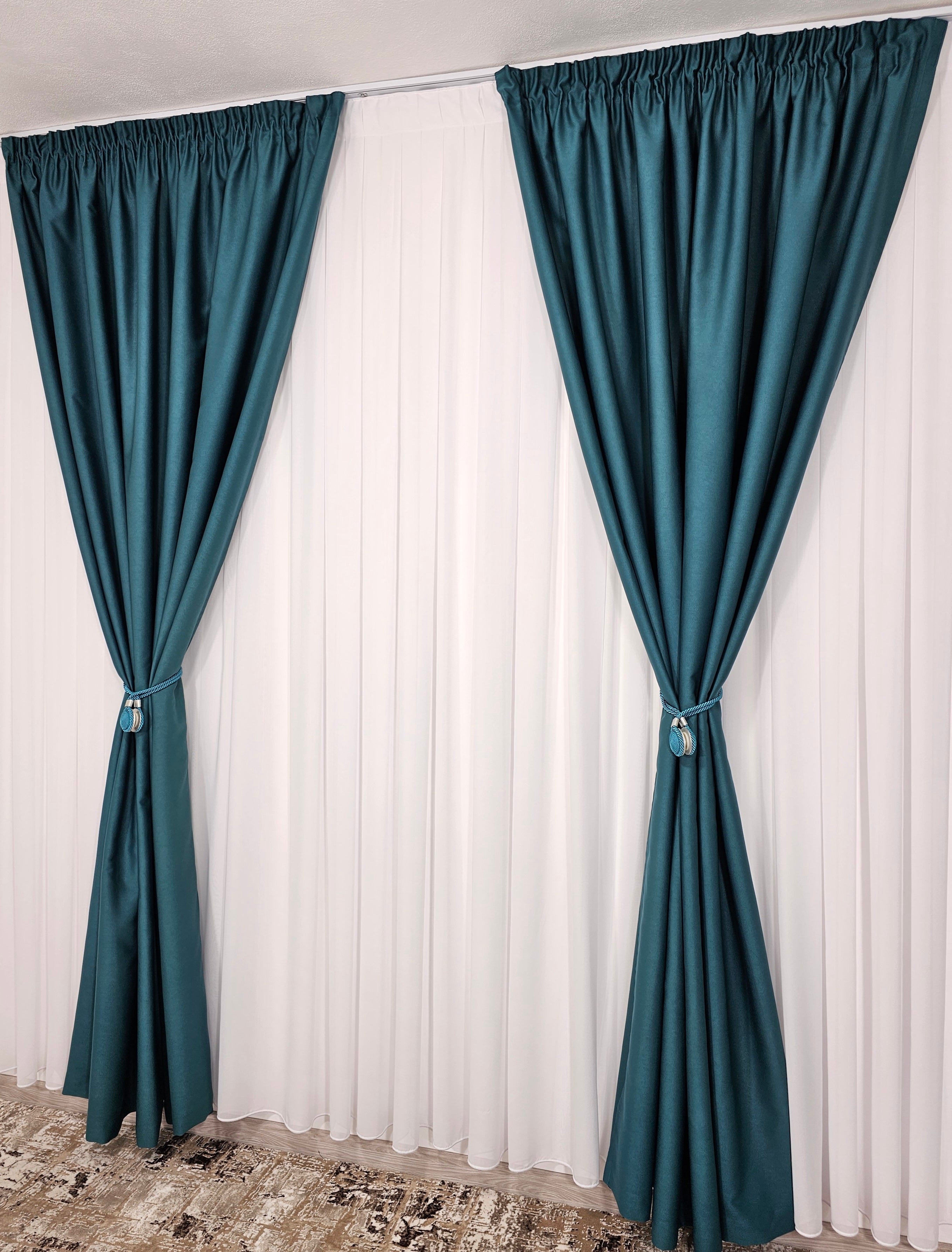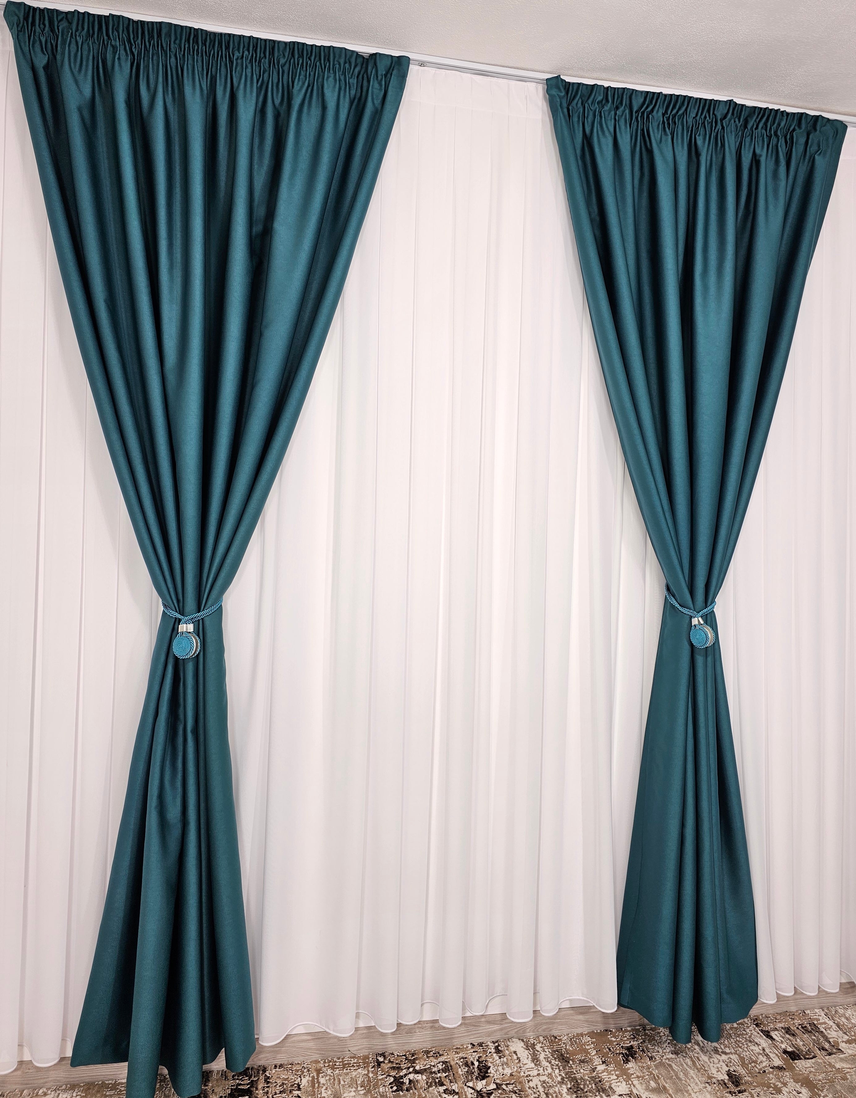 Draperie realizată din poliester gros, cu textură plină și ținută elegantă, într-o nuanță vibrantă de turcoaz – perfectă pentru interioare care vor să aducă prospețime și vitalitate în decor.