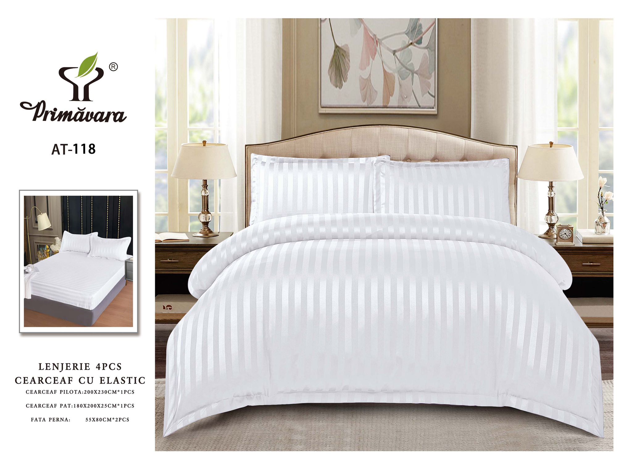 Lenjerie alba pat dublu cearceaf cu elastic, 4 piese, AT-118