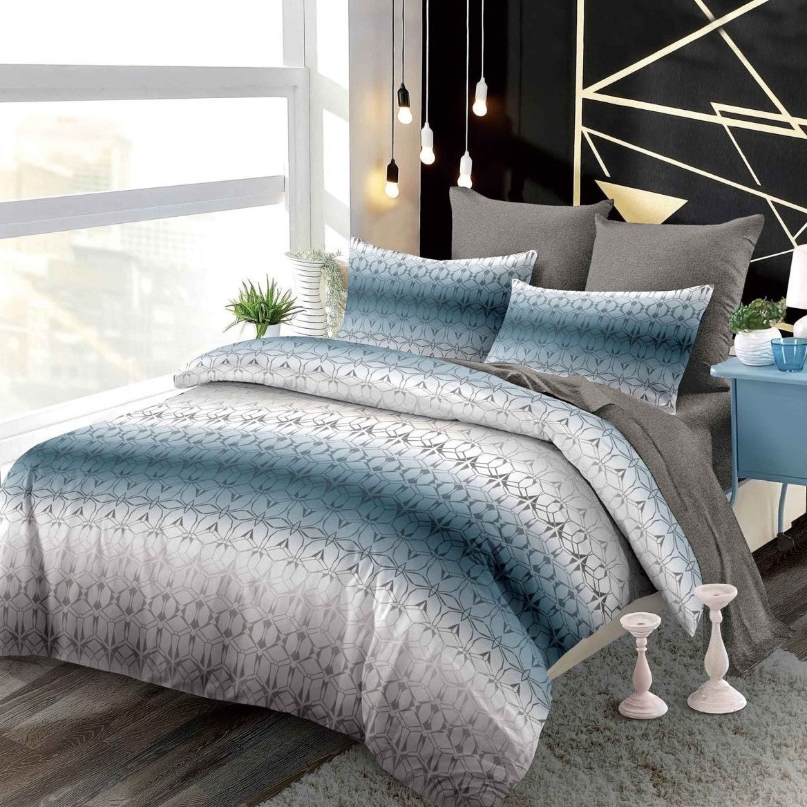 Lenjerie finet, degrade albastru model abstract, cearceaf cu elastic 160/180x200, Cod: B6028