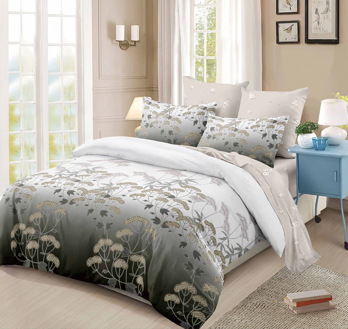 Lenjerie finet, degrade gri cu flori, cerceaf cu elastic 160/180x200, Cod: B951