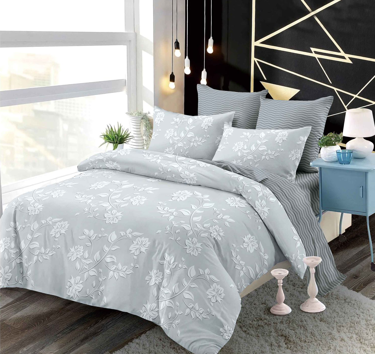 Lenjerie finet, gri cu flori, cerceaf cu elastic 160/180x200, Cod: B6012