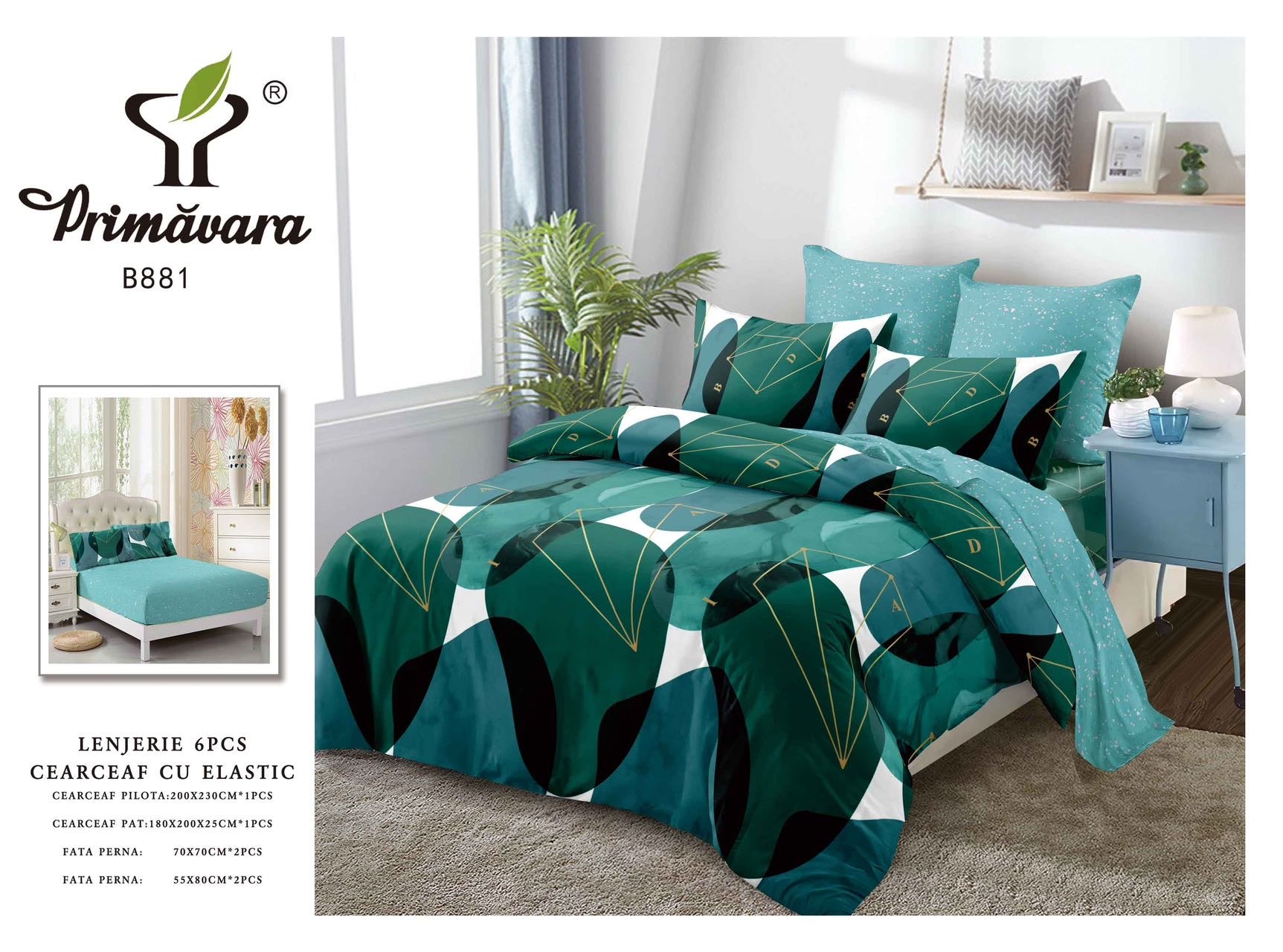 • Cearceaf pilotă (200x230 cm): Protejează pilota și conferă un aspect unitar și modern așternutului.
