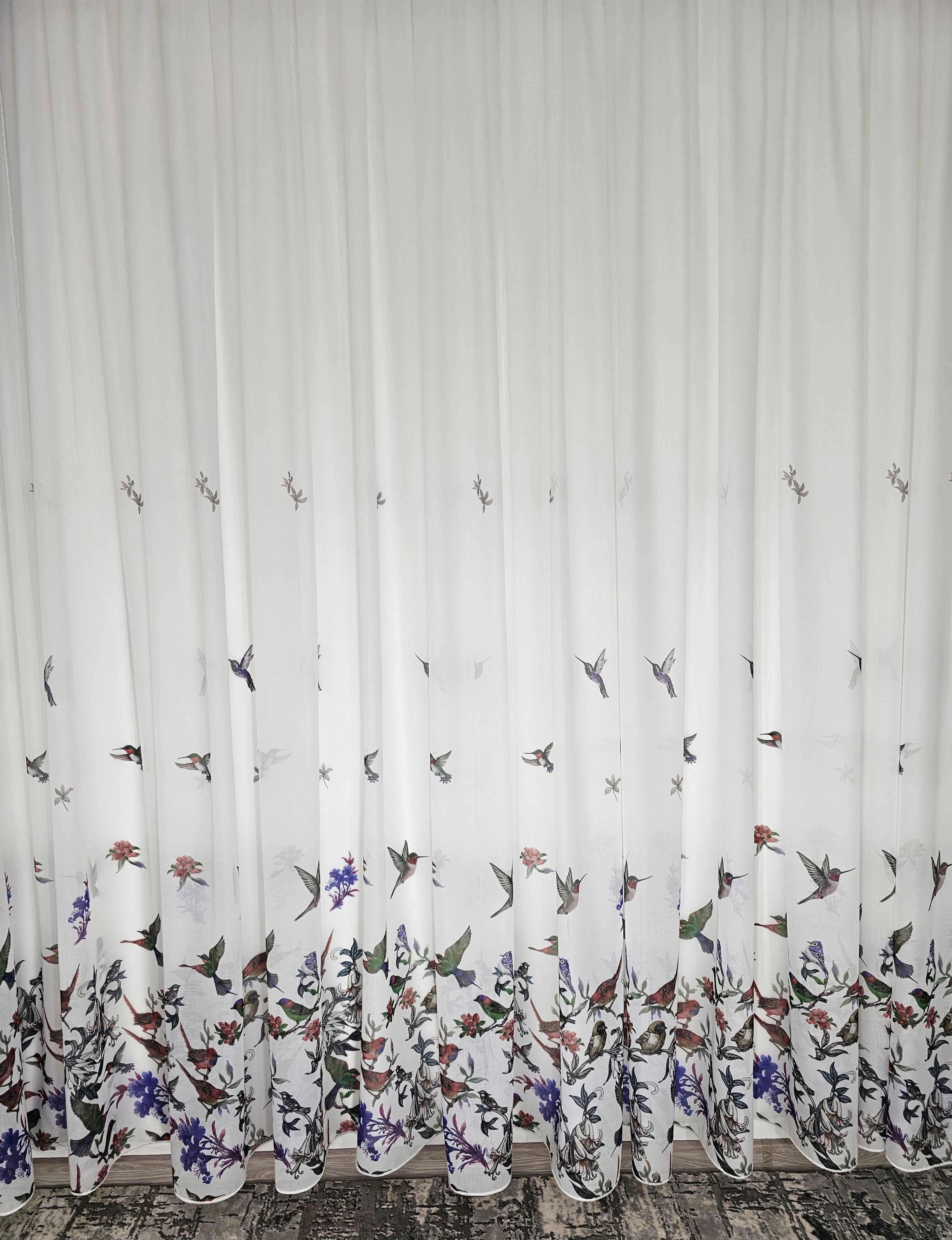 Perdeaua Păsări aduce un aer elegant și natural în decorul casei. Confecționată din material plin ca textură, cu fundal alb și accente bordo, decorată cu model delicat de păsări, creează un efect vizual armonios și rafinat, ideal pentru interioare calde și primitoare.