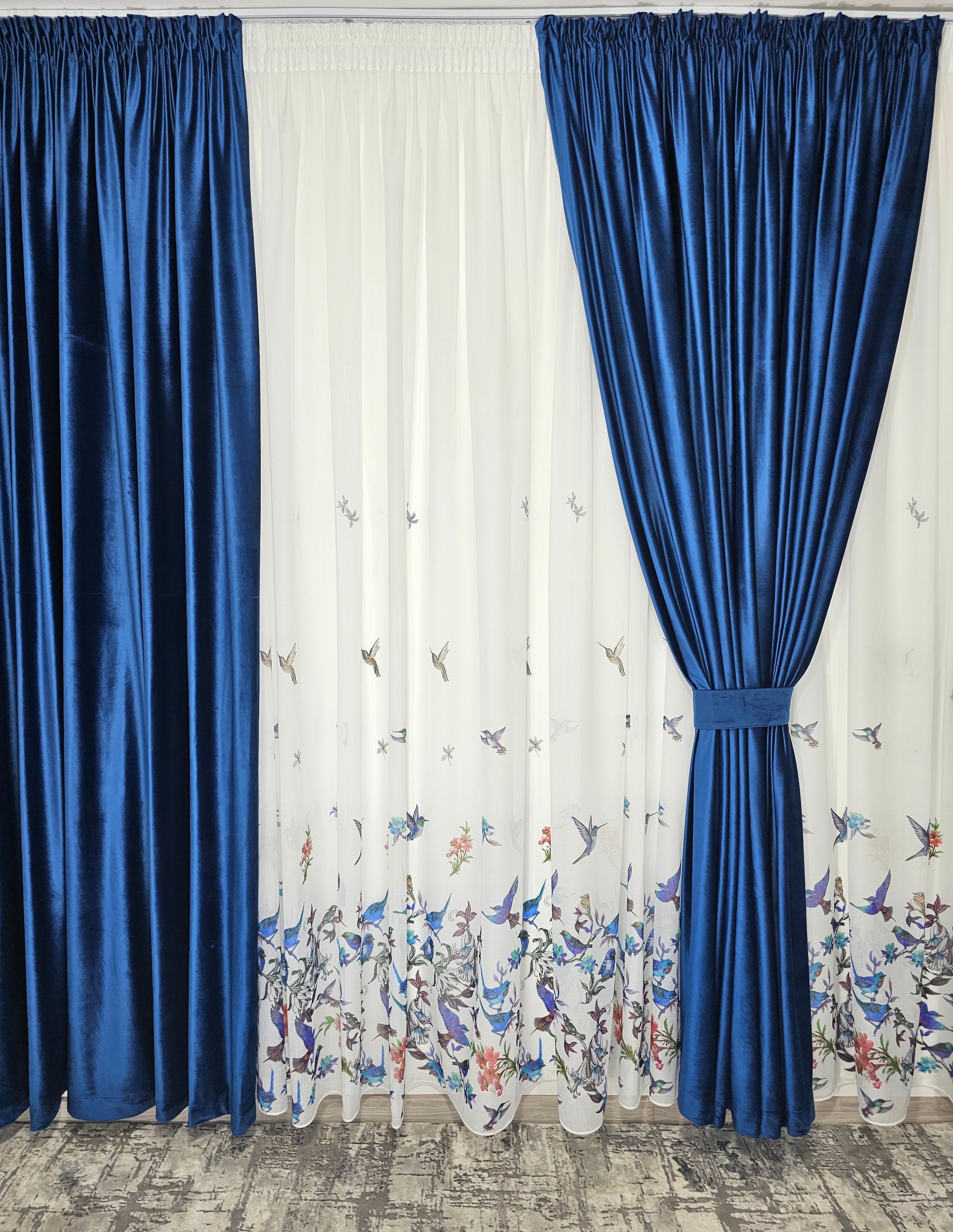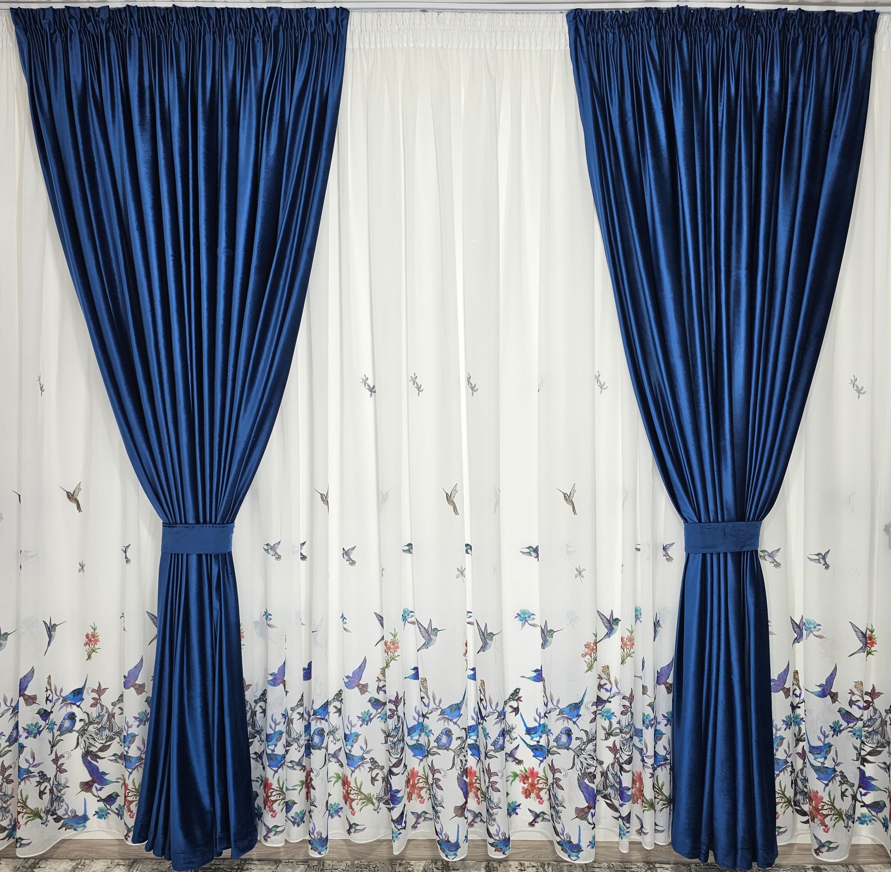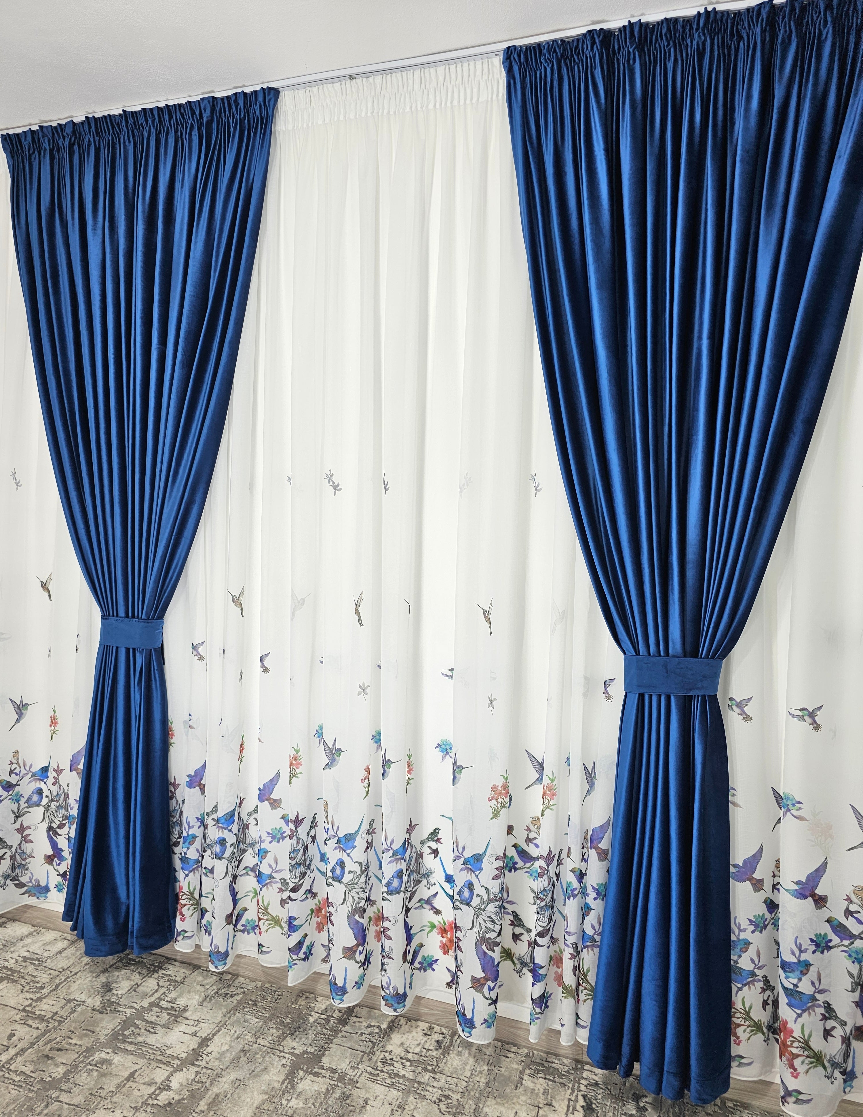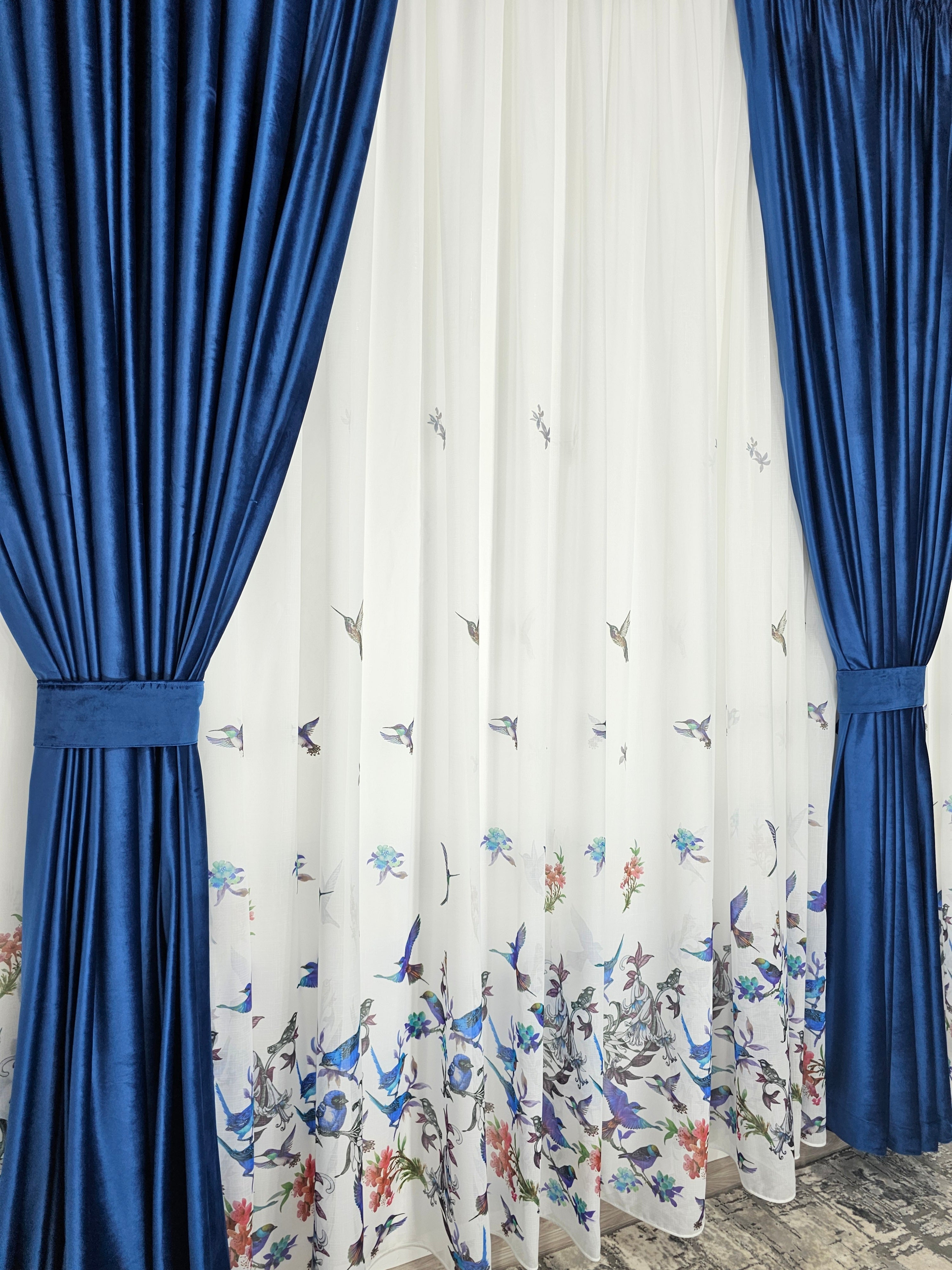 Perdeaua albă cu mov, model Păsărele, transformă ferestrele într-un element decorativ deosebit, aducând frumusețe, stil și energie pozitivă casei tale.