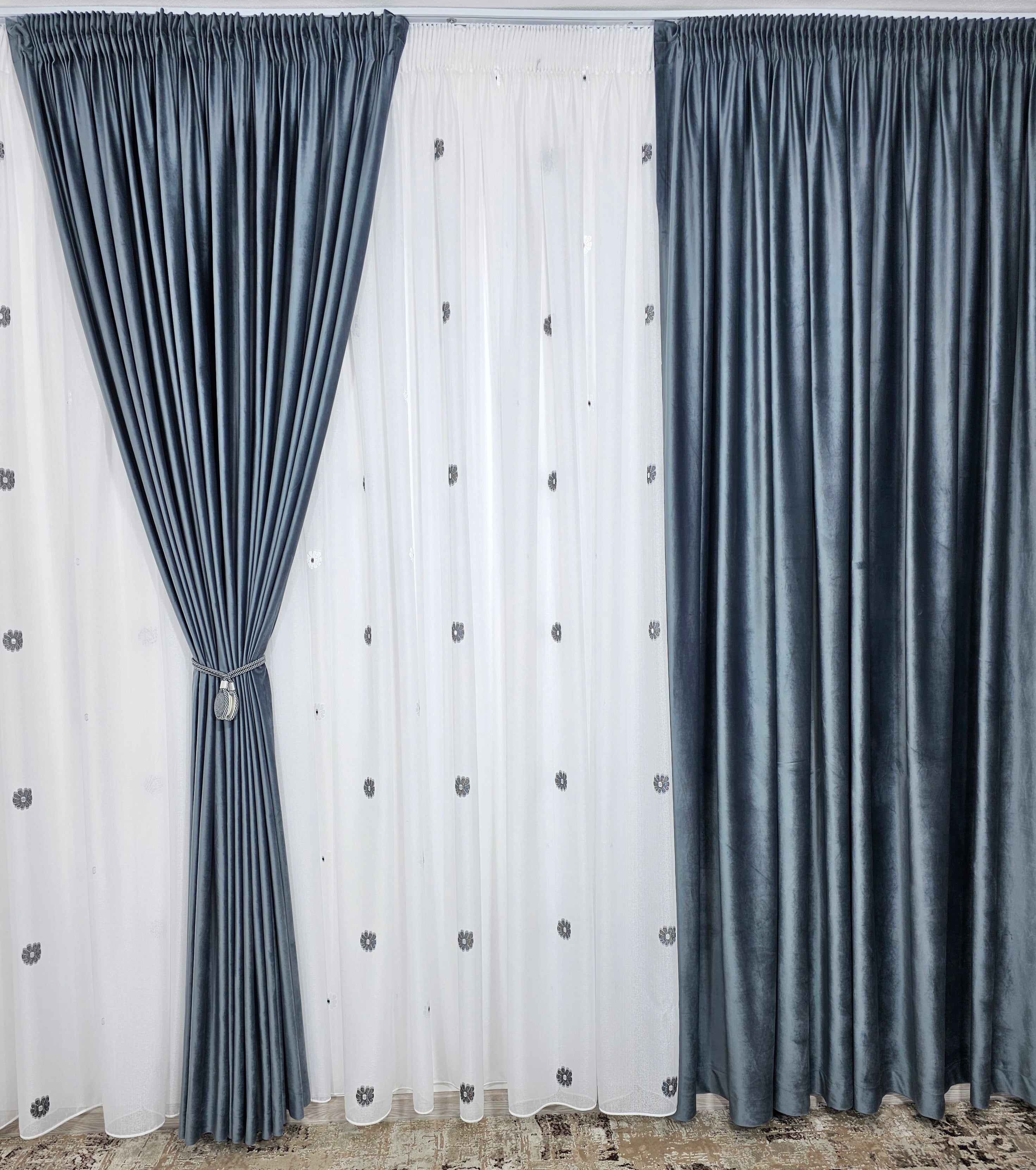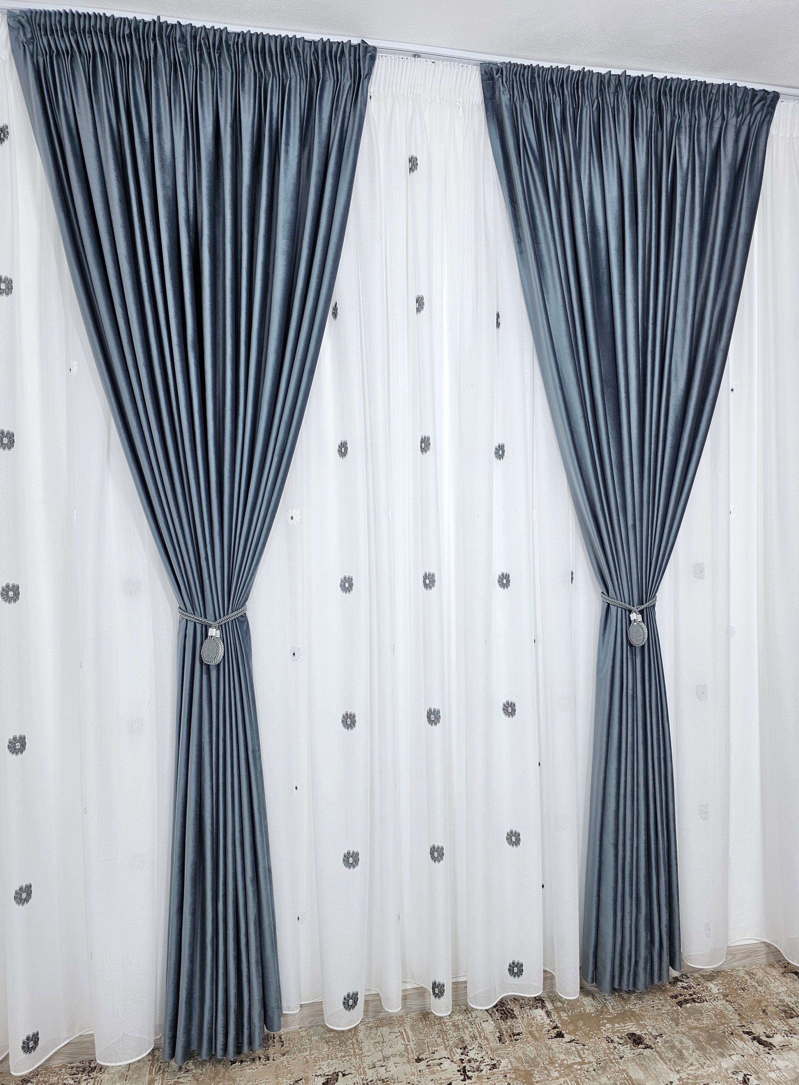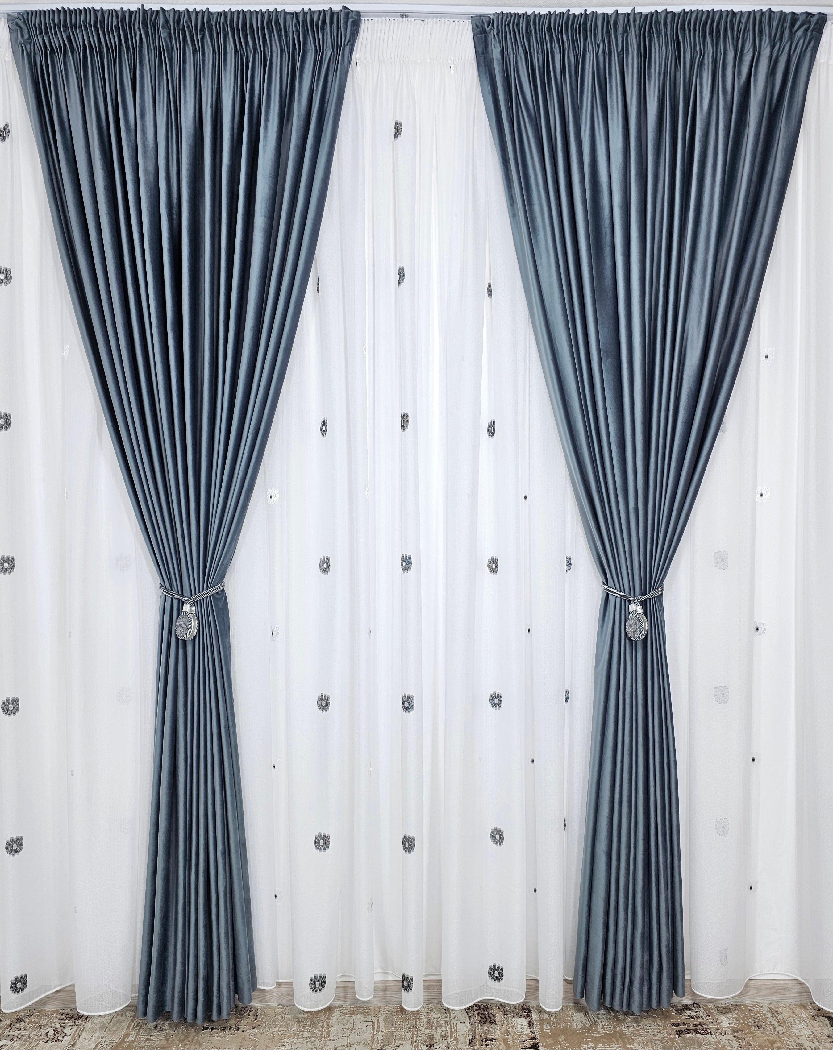 Perdeaua Dora aduce rafinament și delicatețe în decorul casei. Confecționată din material plin ca textură tip in cristal, albă și decorată cu flori alb-gri, oferă un efect elegant și discret, ideal pentru interioare moderne și luminoase.