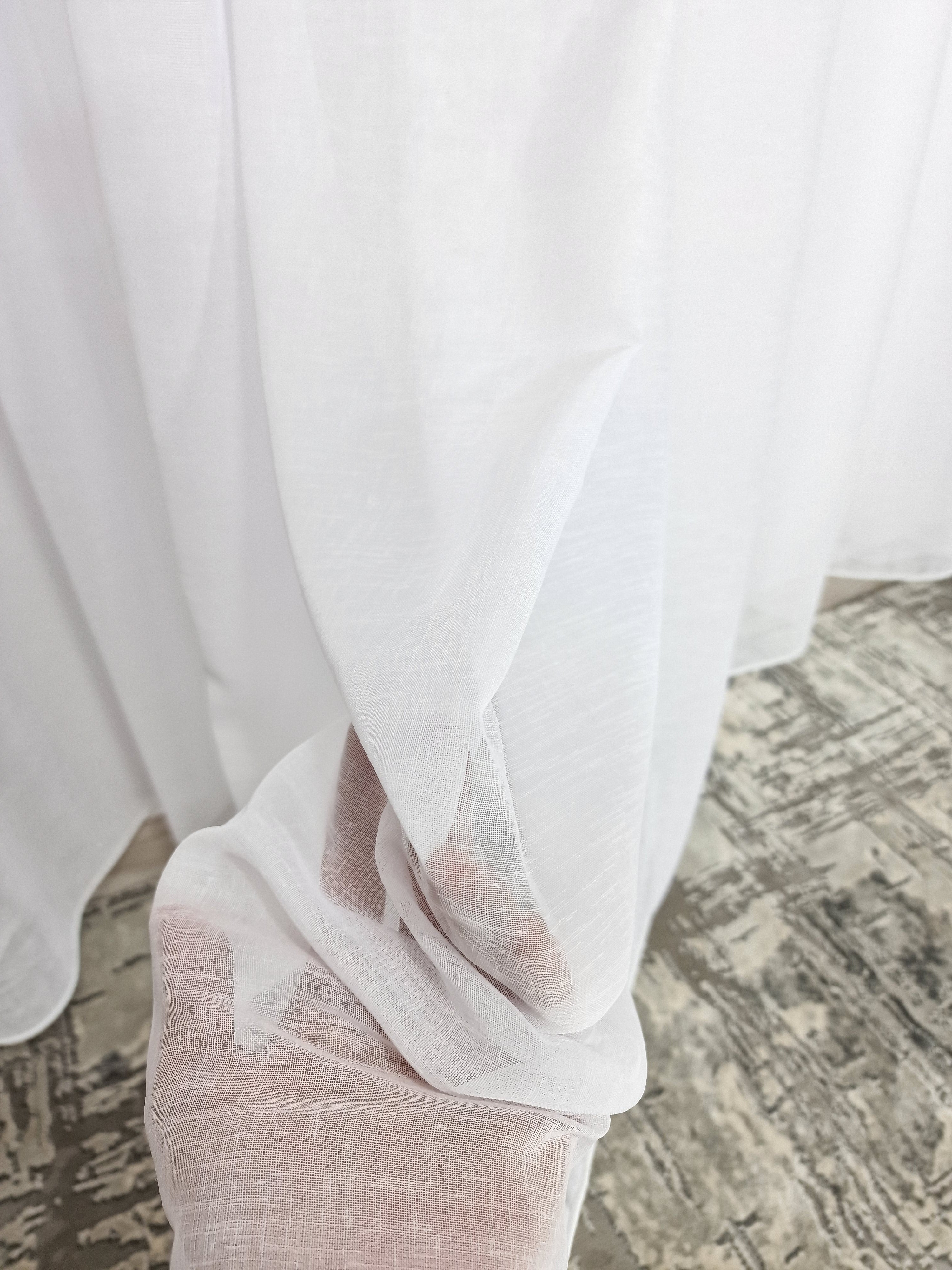 Această perdea albă din in rustic îmbină naturalețea vizuală cu practicitatea materialului premium, creând un ambient cald, modern și elegant.