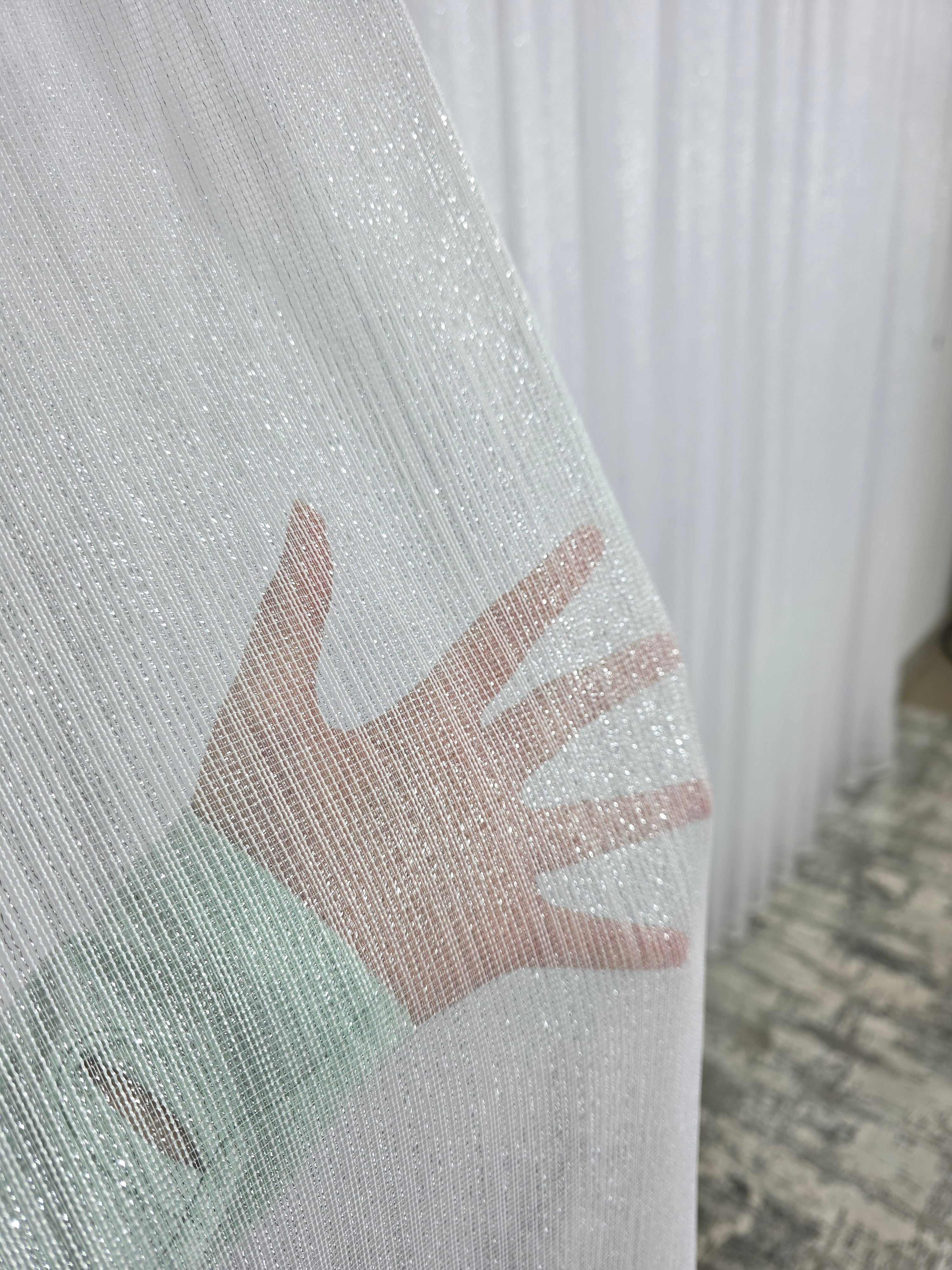 Alege Perdeaua Albă Bergamo cu Sclipici Argintiu pentru a aduce ferestrelor tale o notă de lux discret, luminozitate și rafinament contemporan.