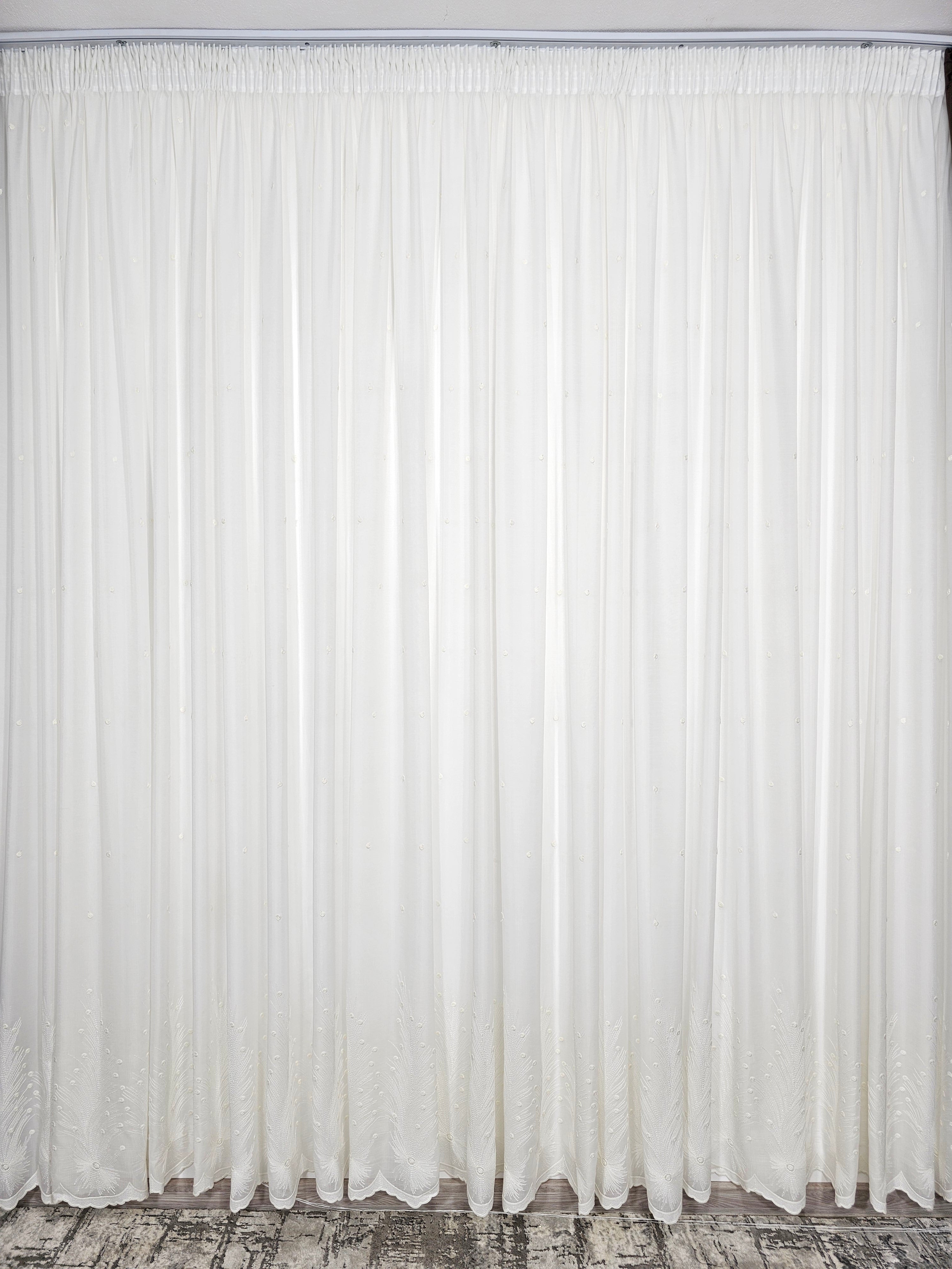 Perdeaua Tina aduce eleganță și rafinament discret în decorul casei. Realizată din material plin ca textură tip in, în nuanță crem și decorată cu flori crem delicate, oferă un efect natural și armonios, ideal pentru interioare primitoare și luminoase.