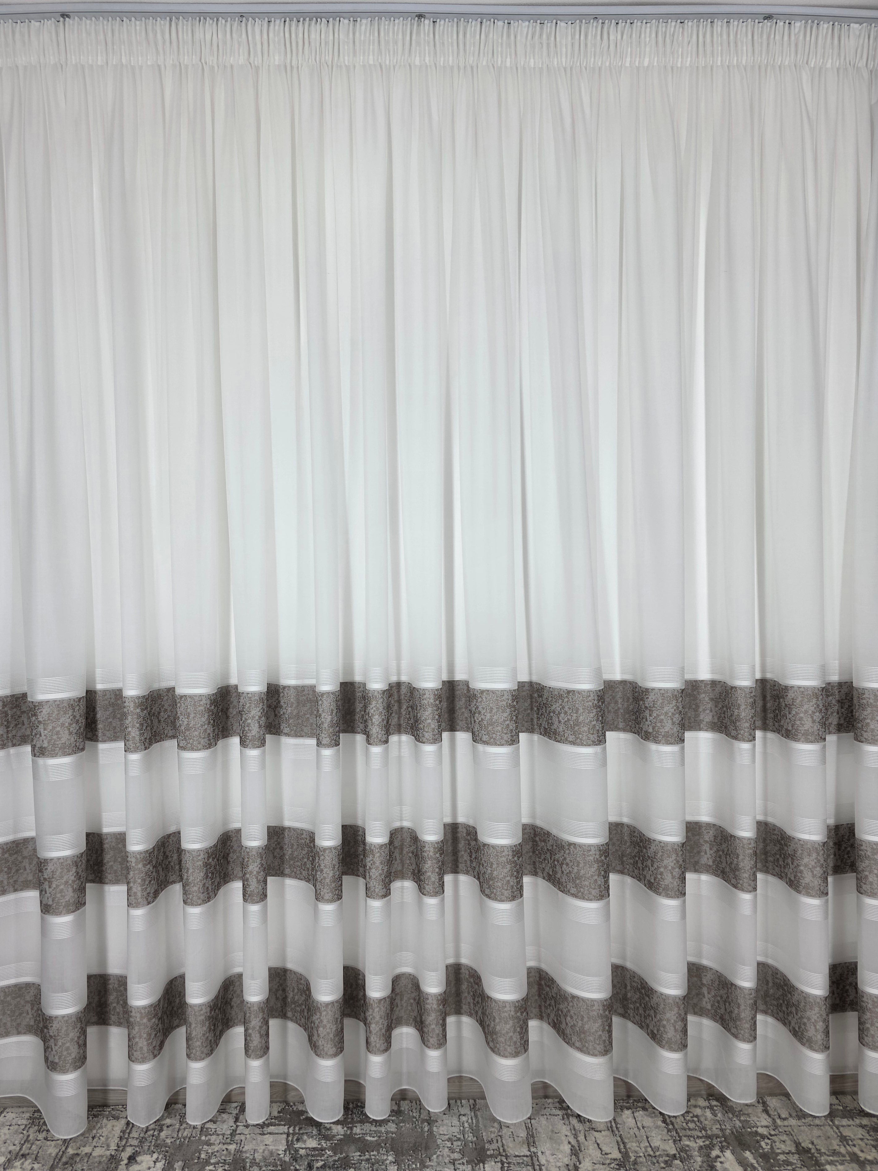 Perdea albă tip in cristal cu benzi verticale capucino