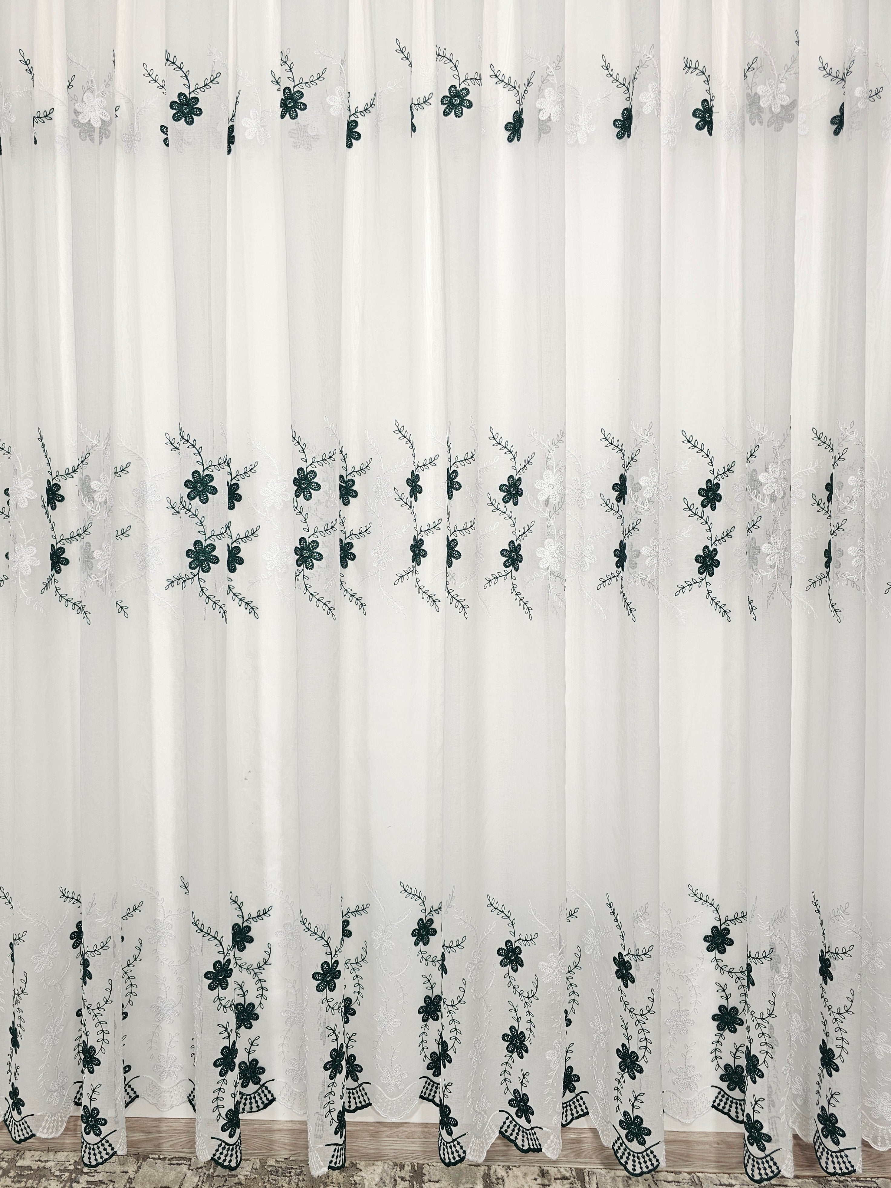 Perdeaua Smaranda aduce un aer natural și proaspăt în decorul casei. Confecționată din material plin ca textură tip in, decorată cu flori alb-verde delicate, oferă un efect rafinat și luminos, perfect pentru interioare moderne și primitoare.
