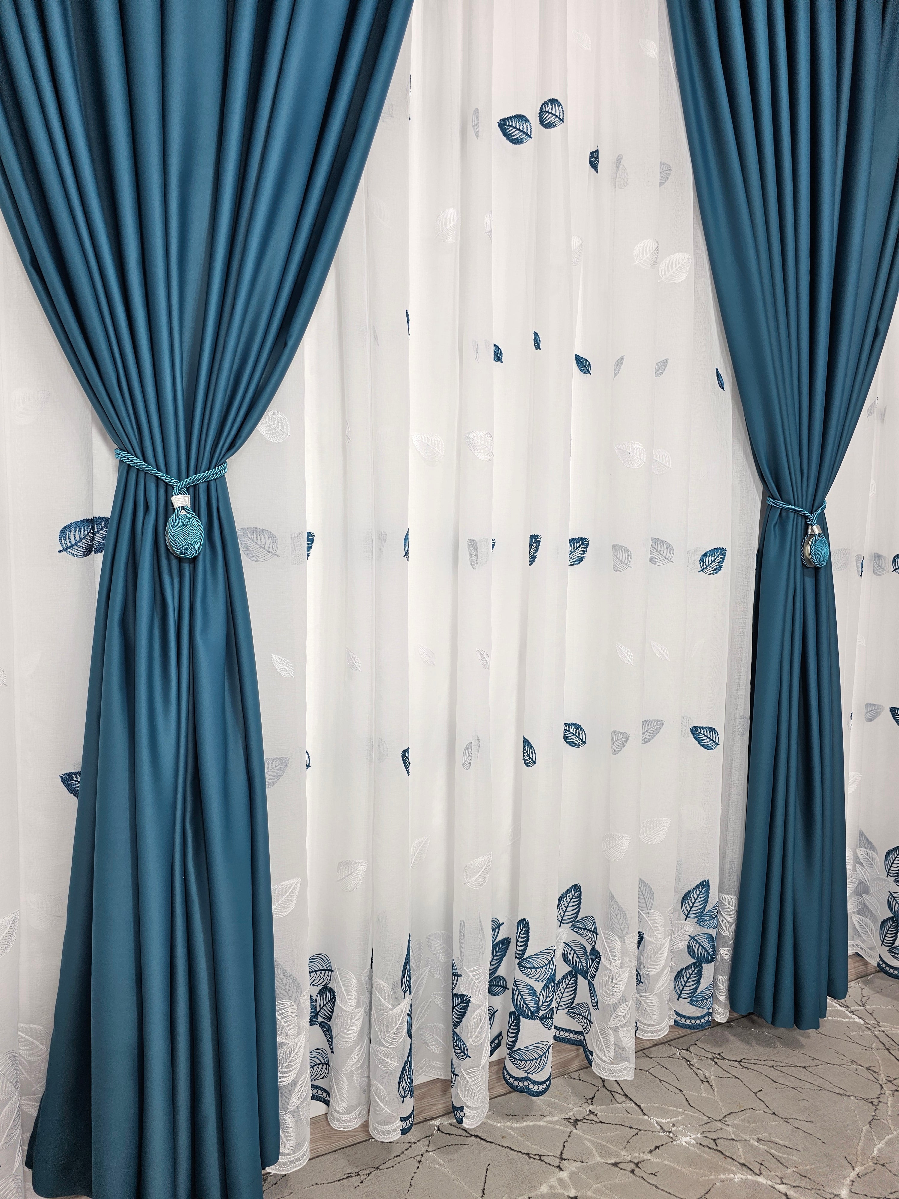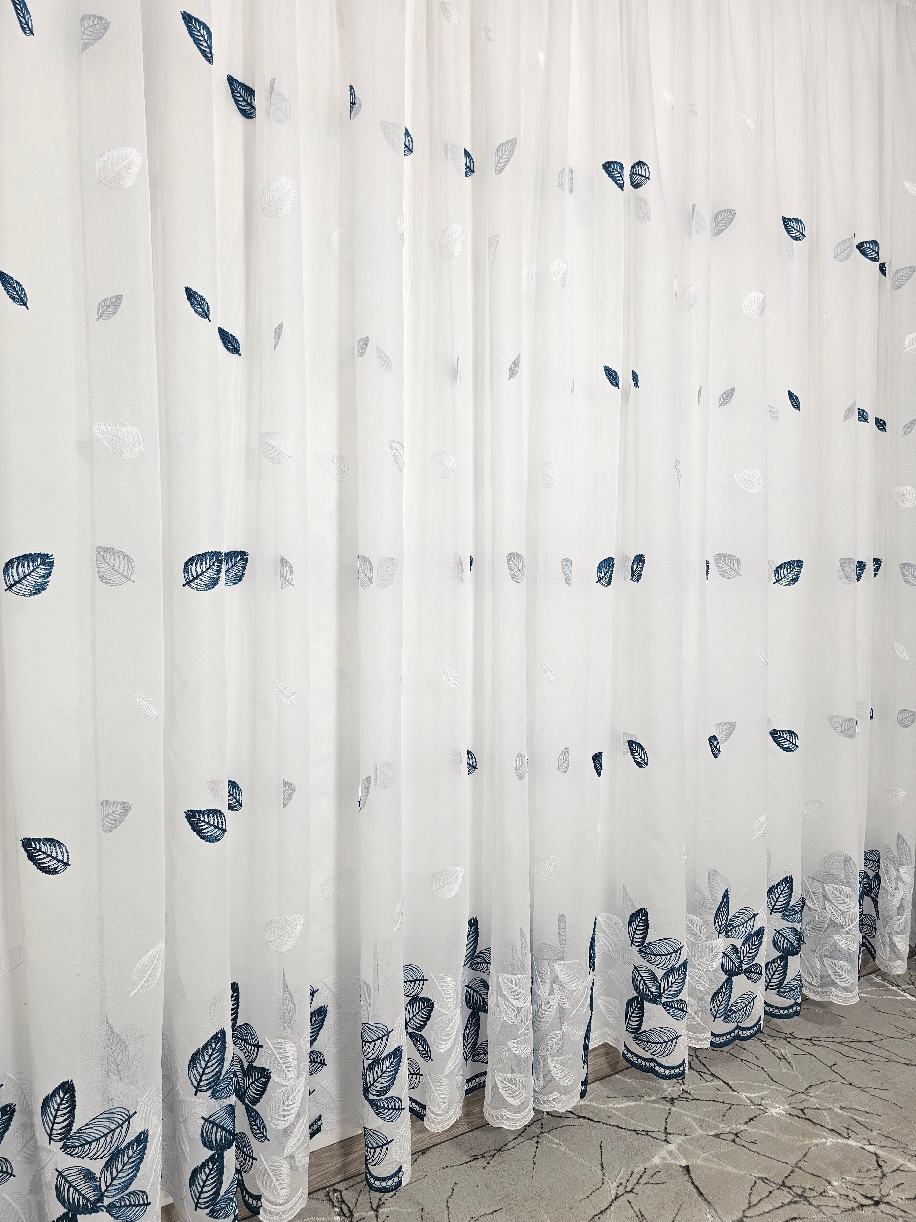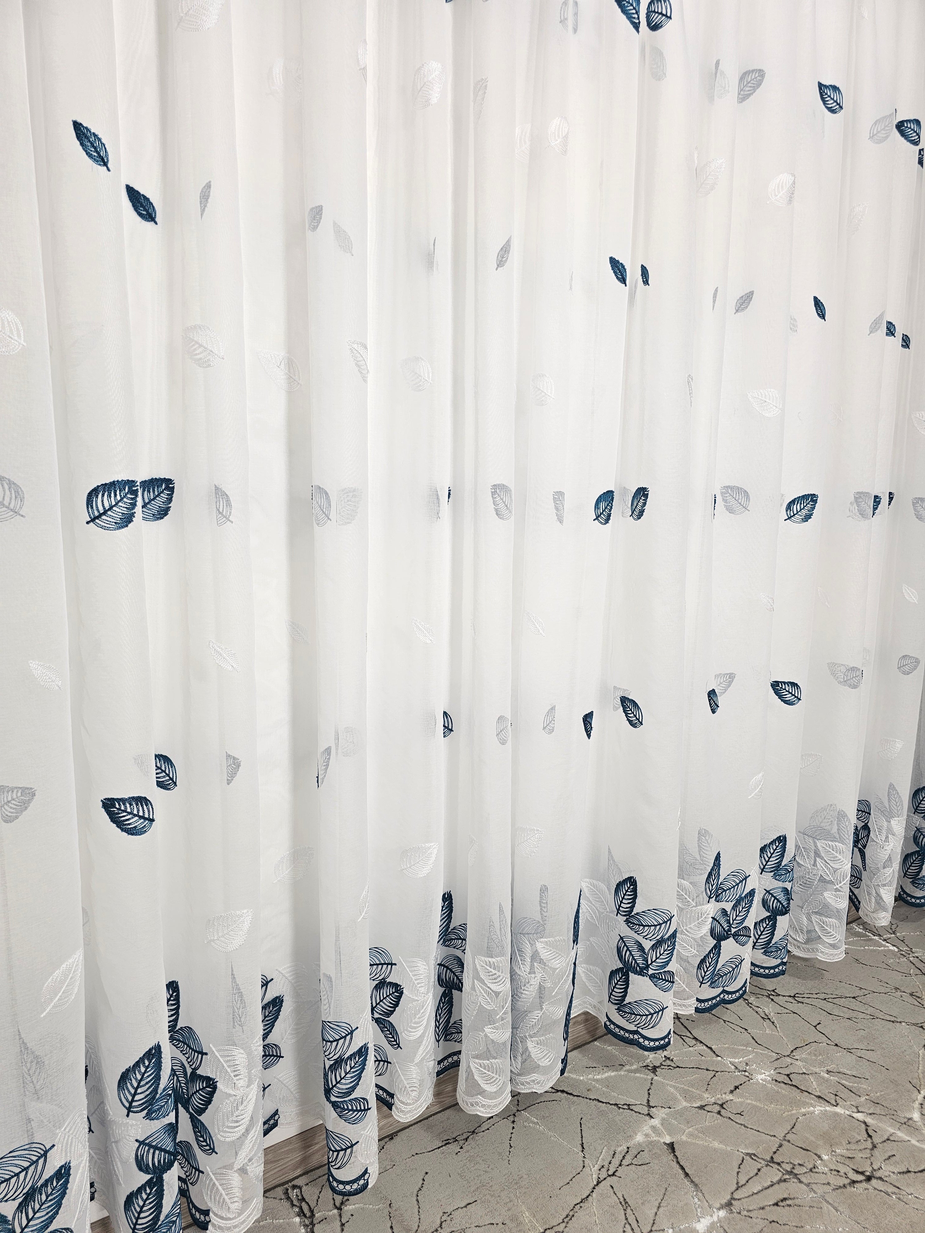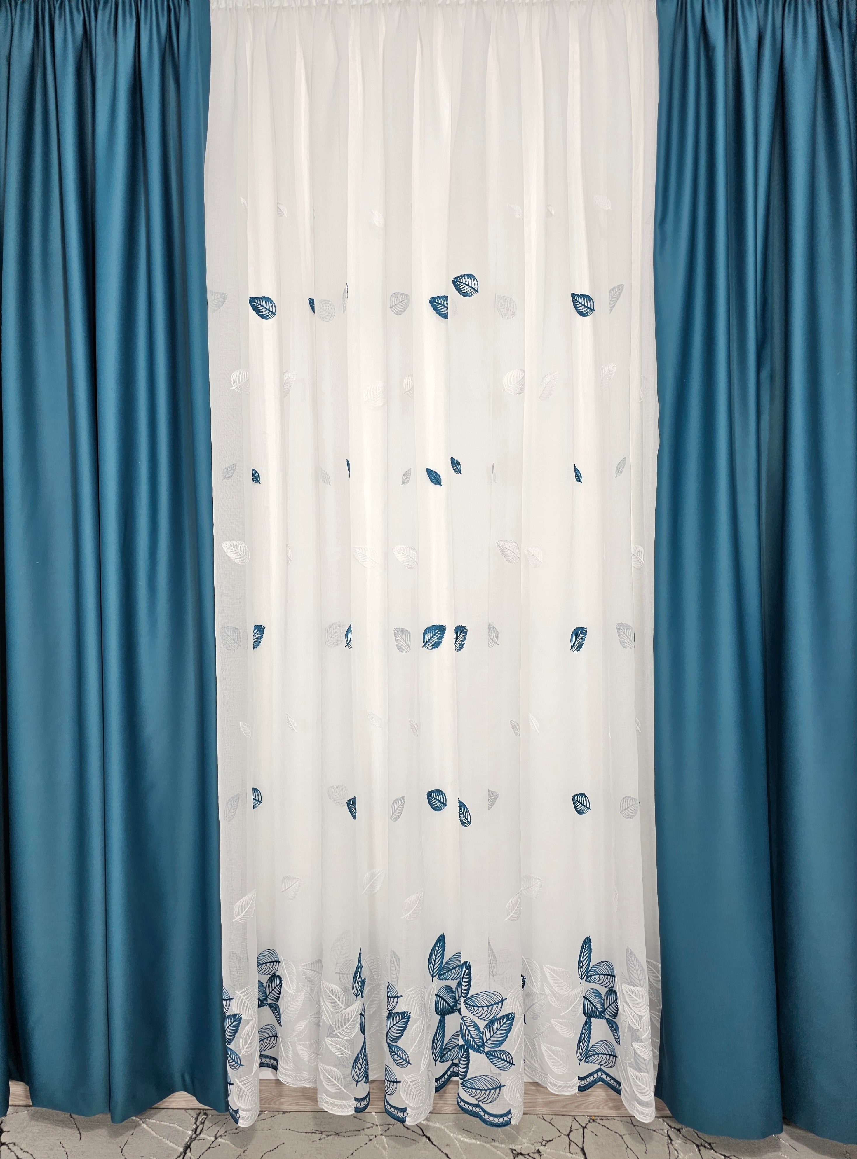 Perdeaua Bodi albă cu frunze turcoaz transformă ferestrele într-un element central de design, aducând energie, stil și rafinament în casa ta.