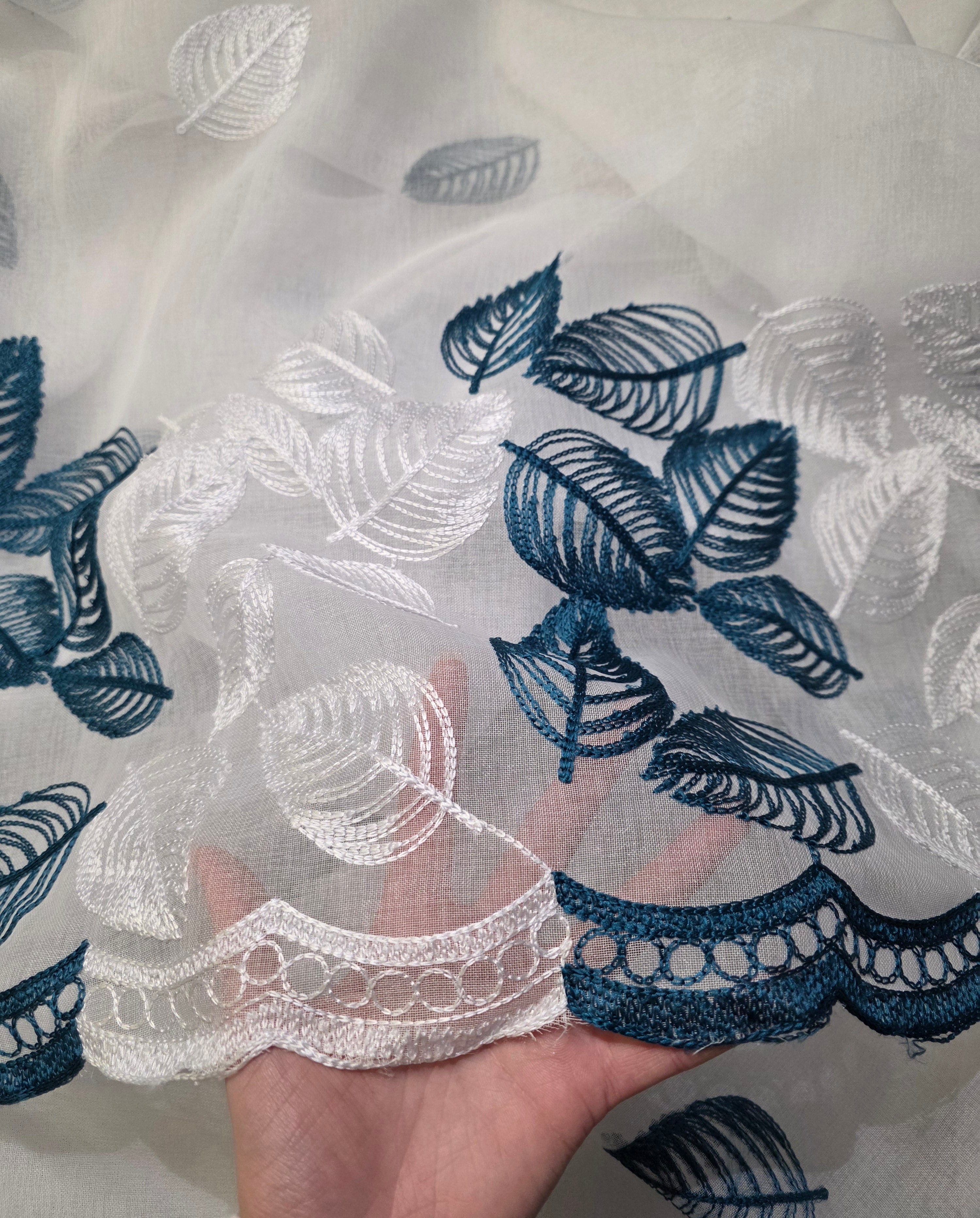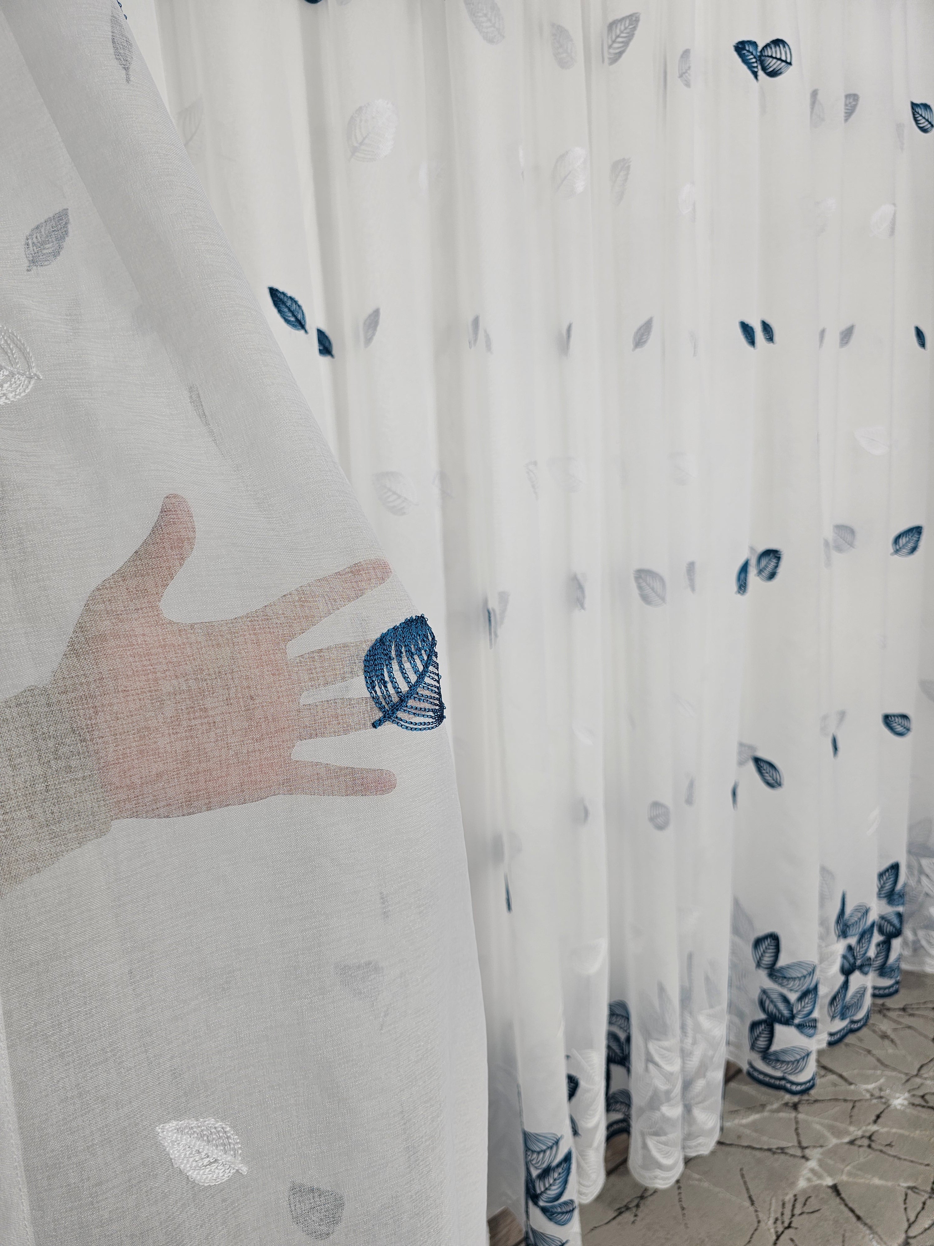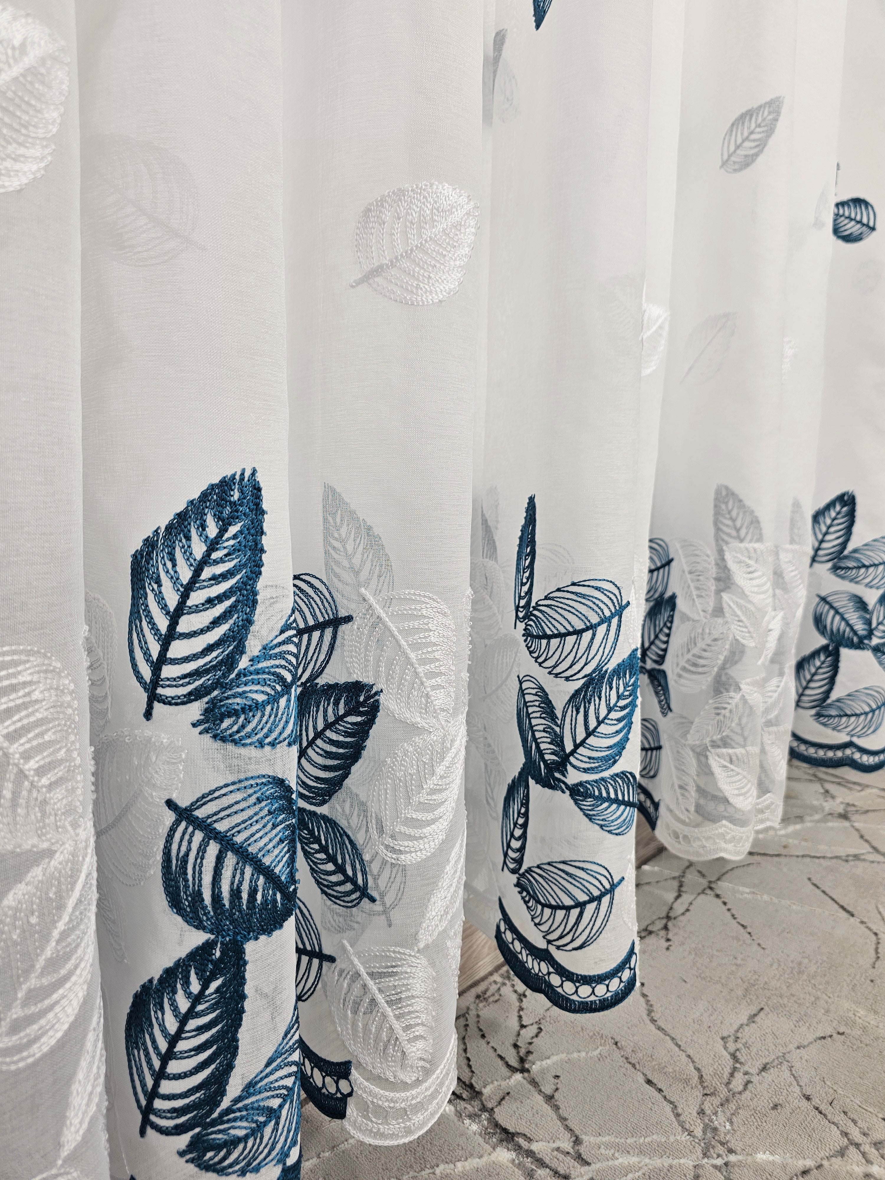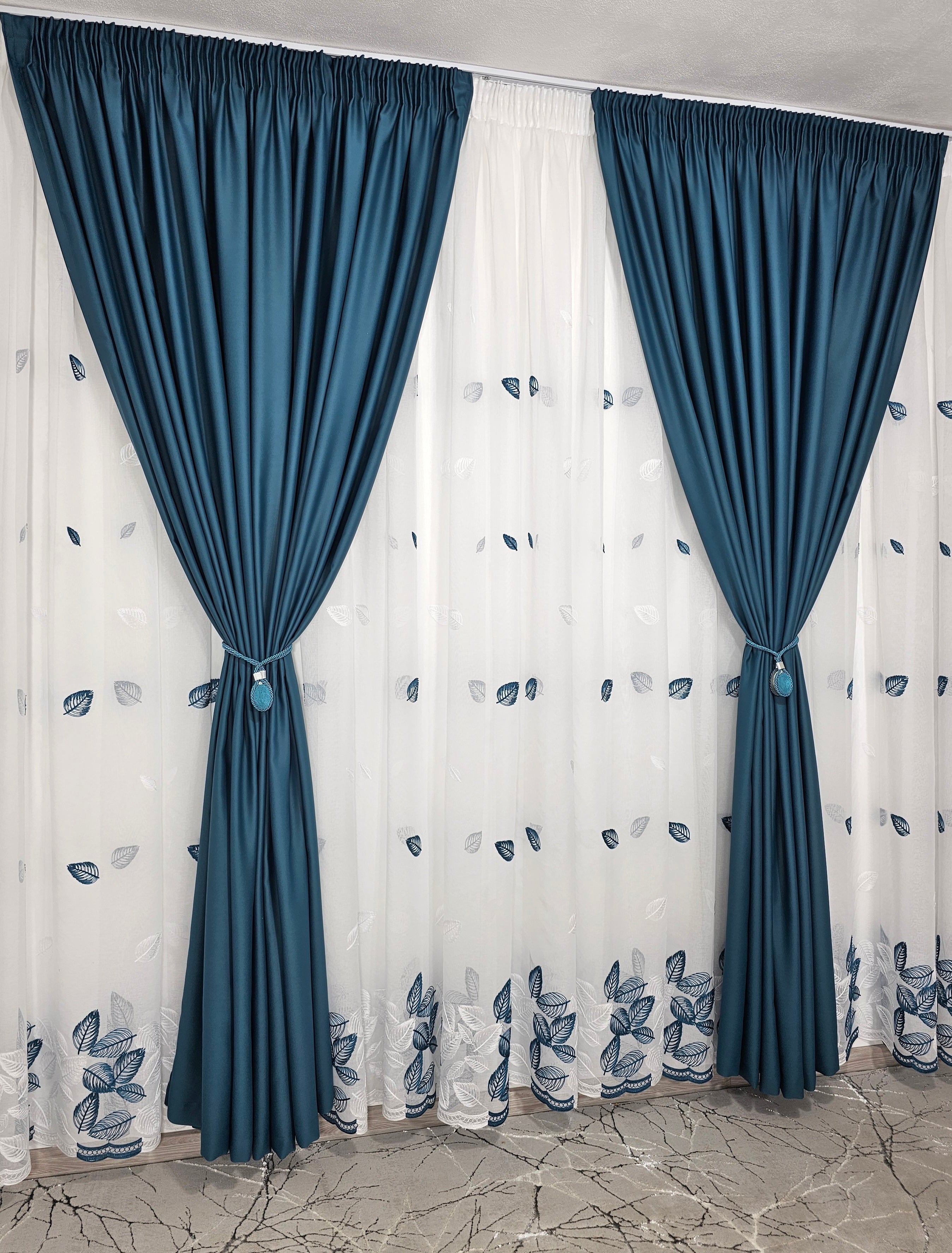 Perdeaua Bodi albă cu frunze turcoaz transformă ferestrele într-un element central de design, aducând energie, stil și rafinament în casa ta.